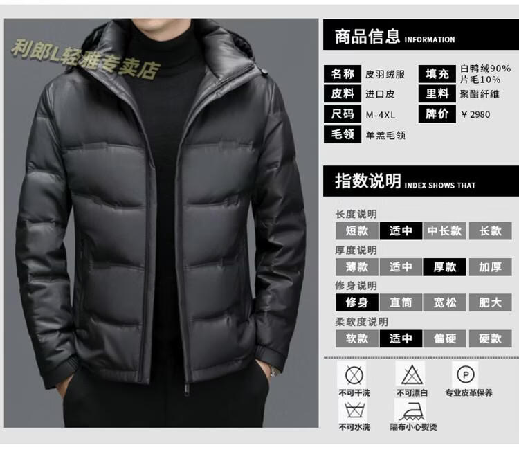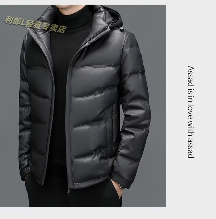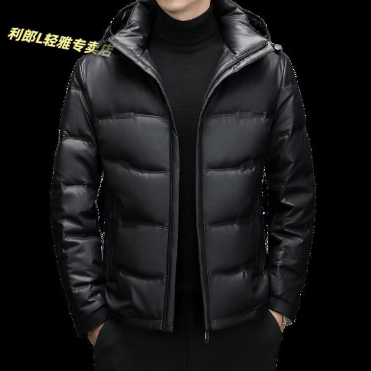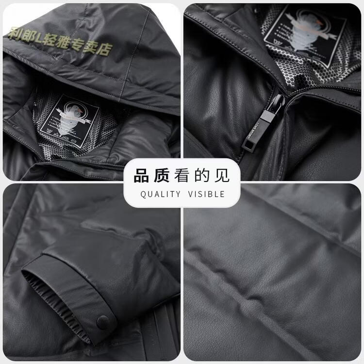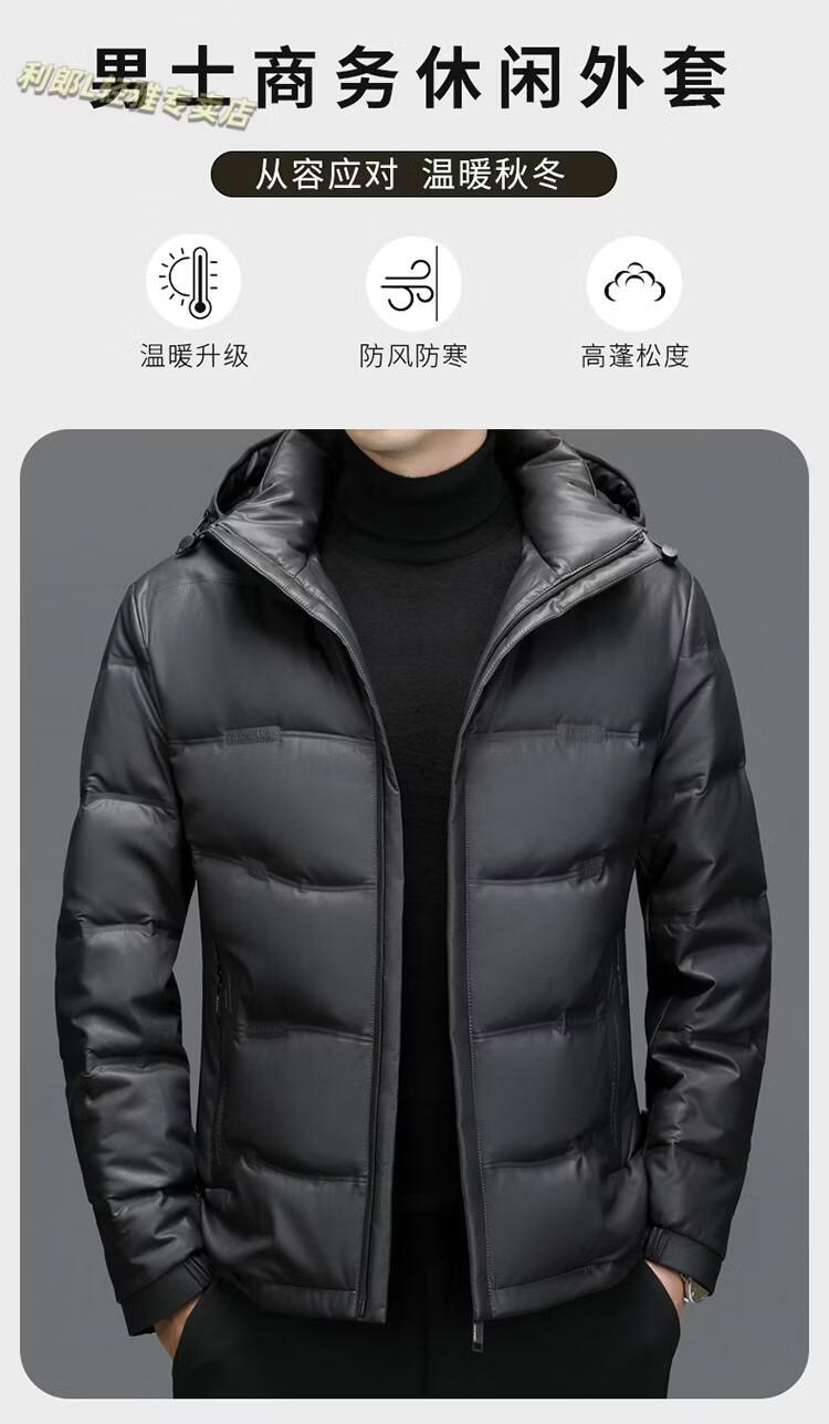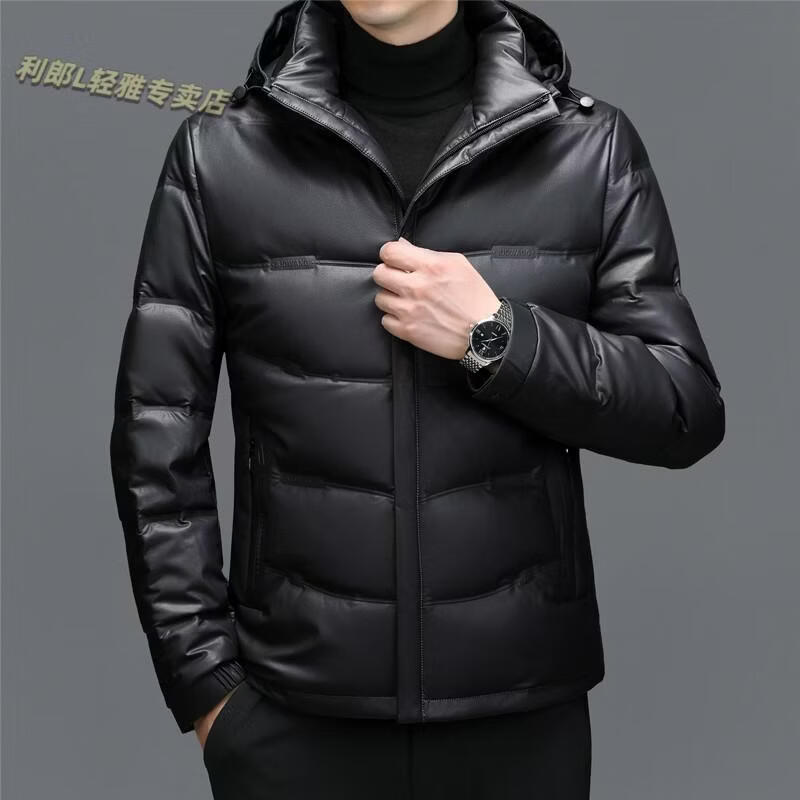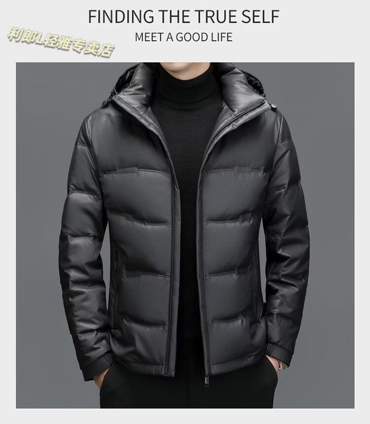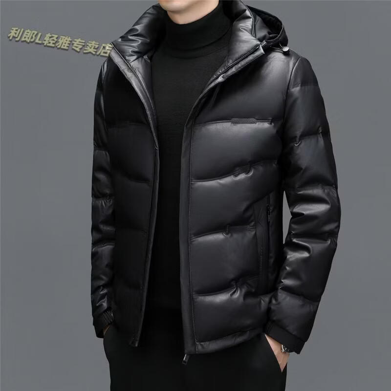 利郎(LILANZ)真皮羽绒服男绵羊皮立领皮夹克爸爸冬装中年皮衣加厚保暖轻薄外套 灰色 M 170