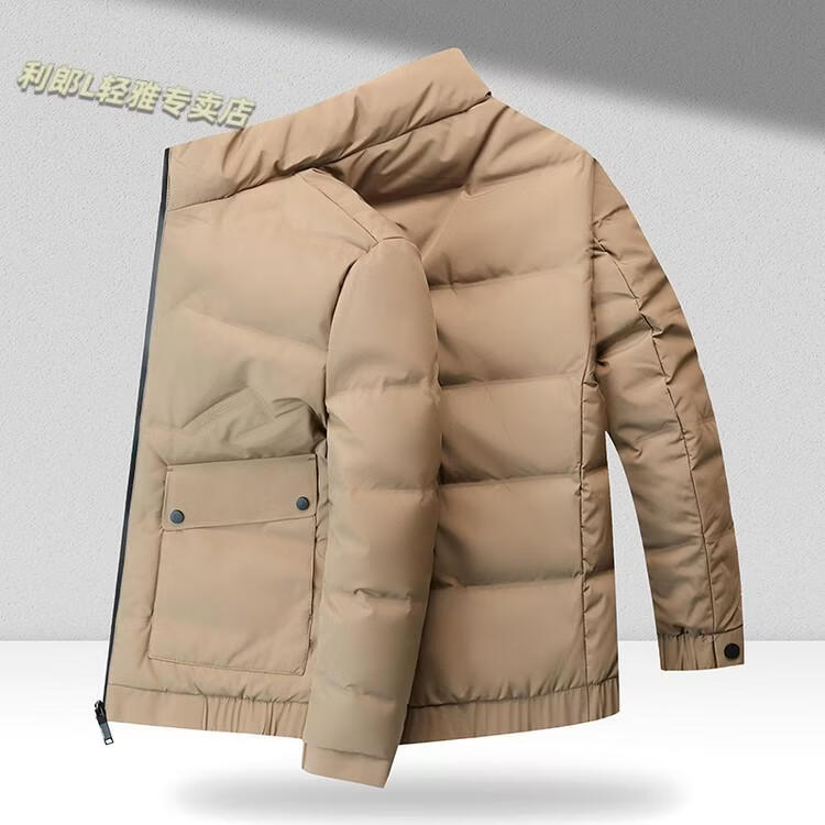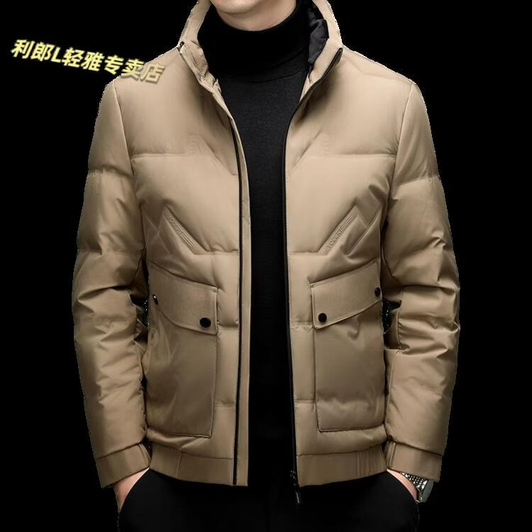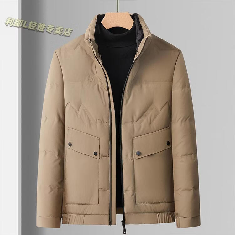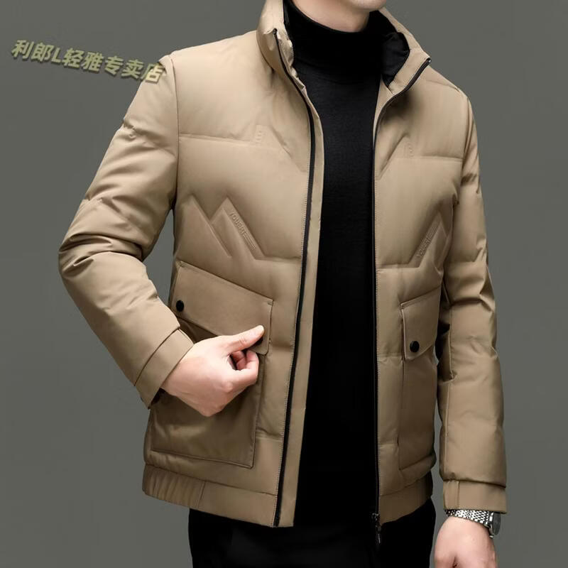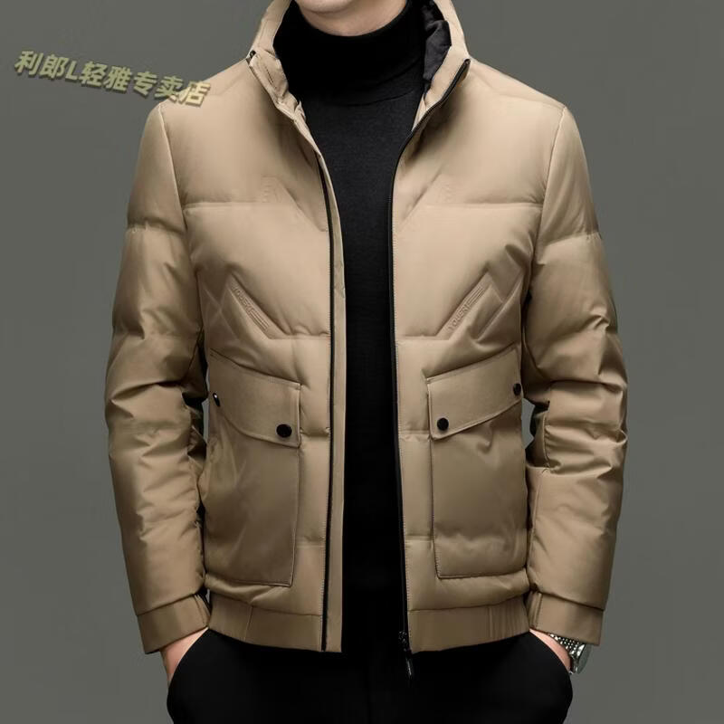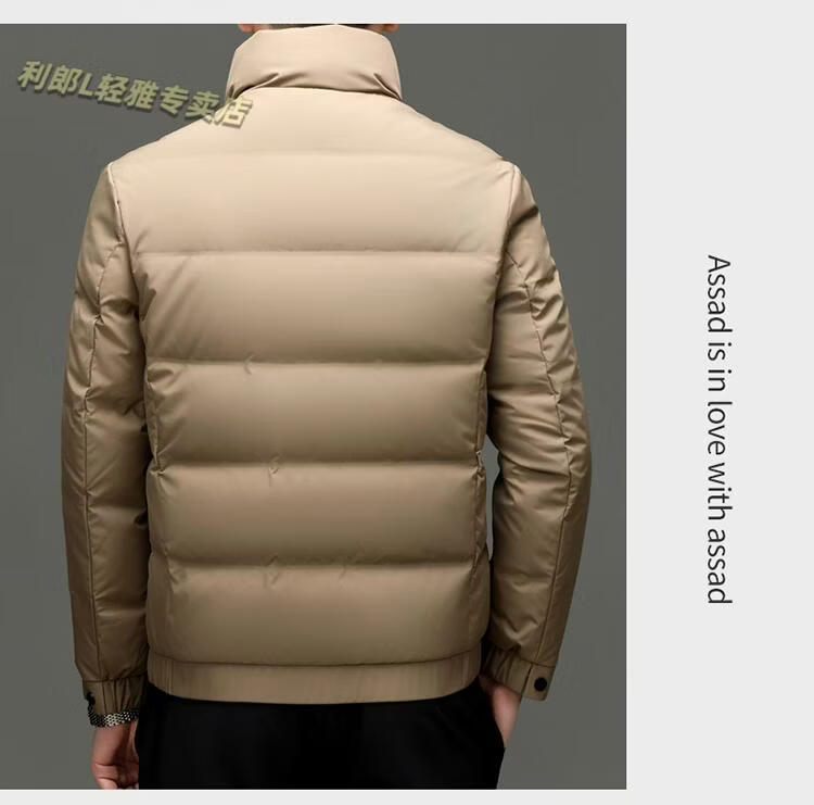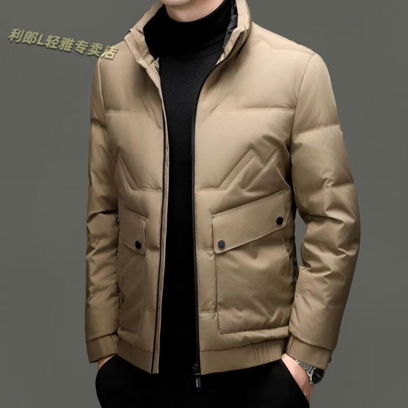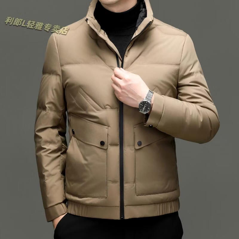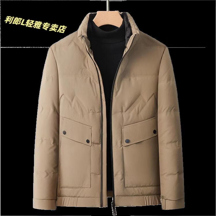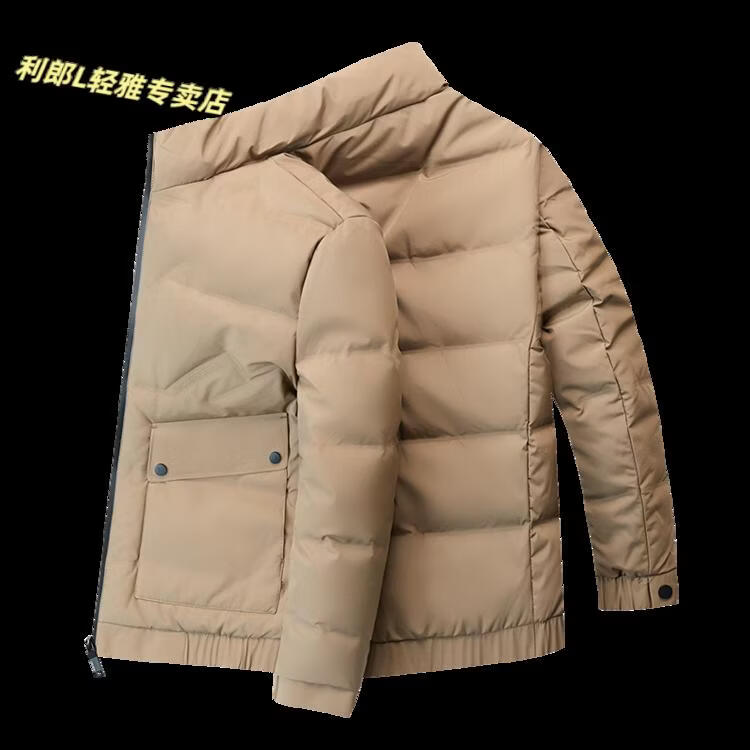 LILANZ Short Stand Collar Down Jacket White Duck Down Lightweight Jacket 2026 Winter New Lapel Men's Casual Dad Wear Khaki L