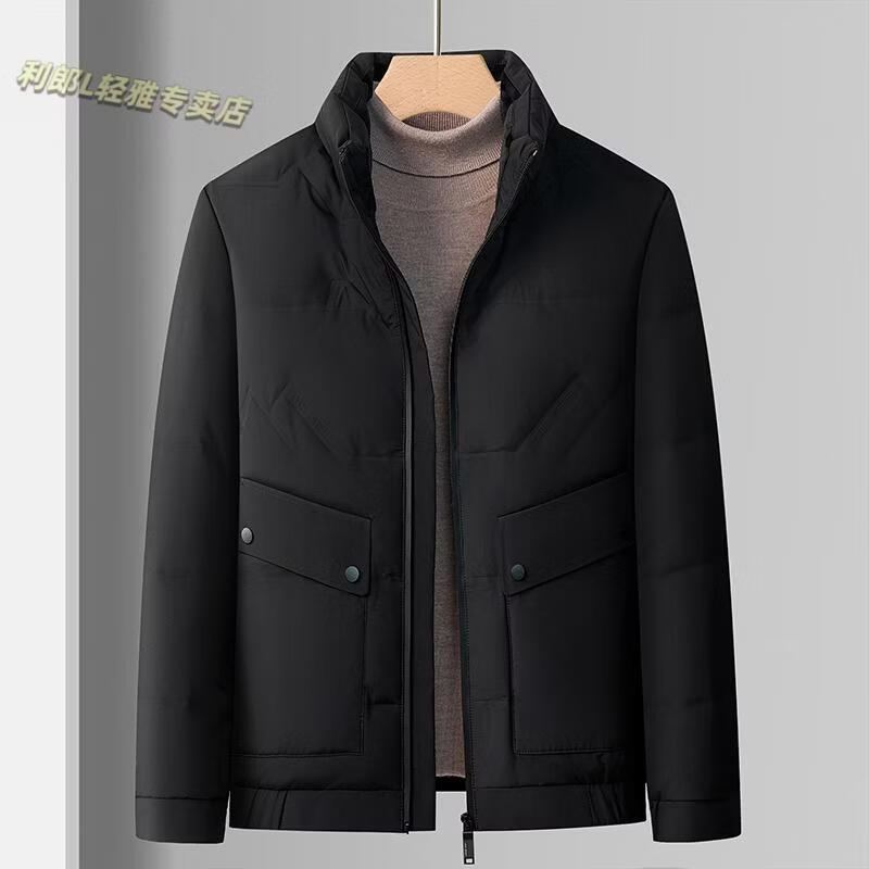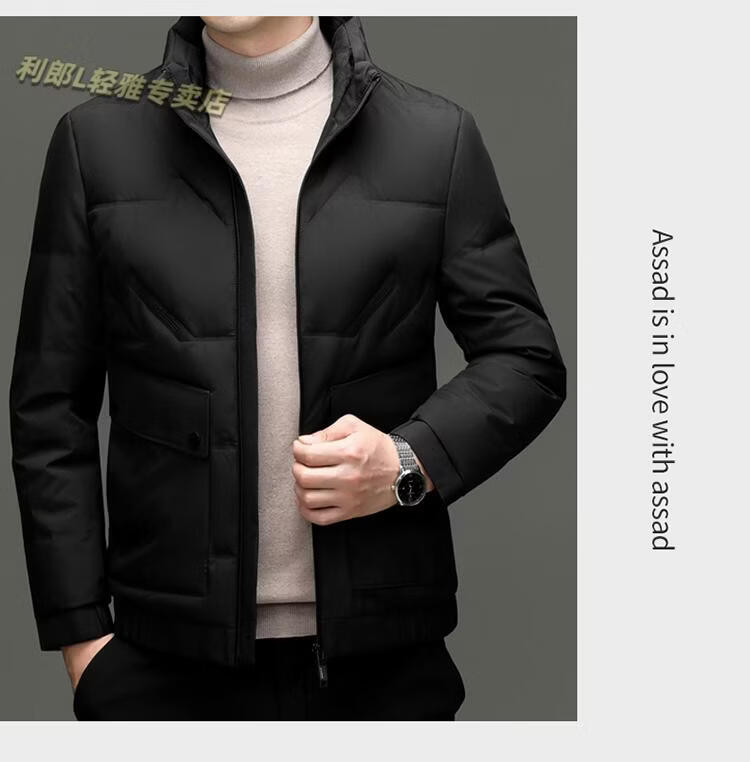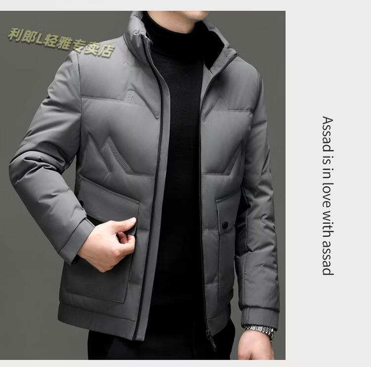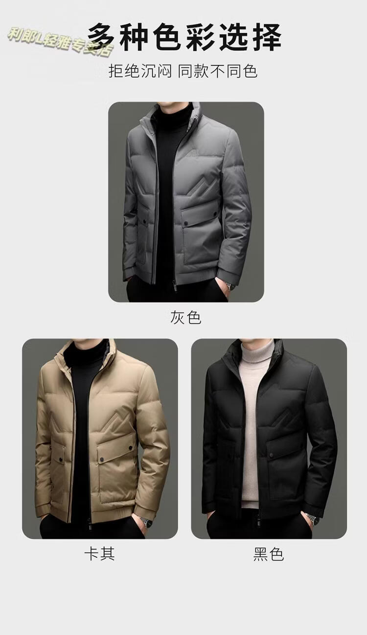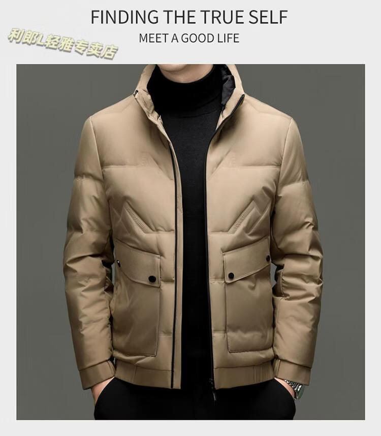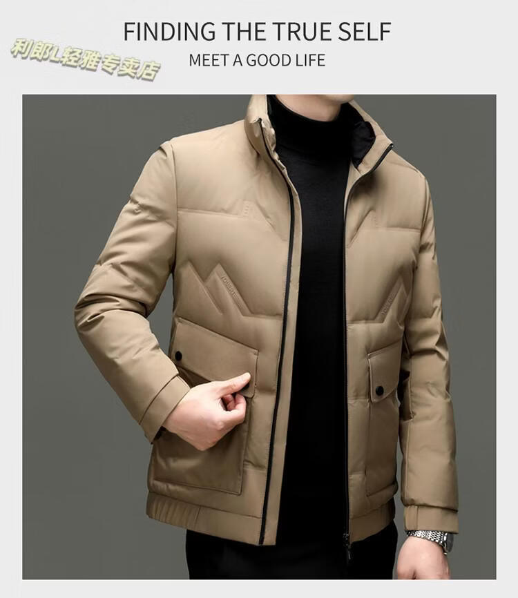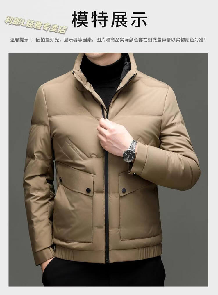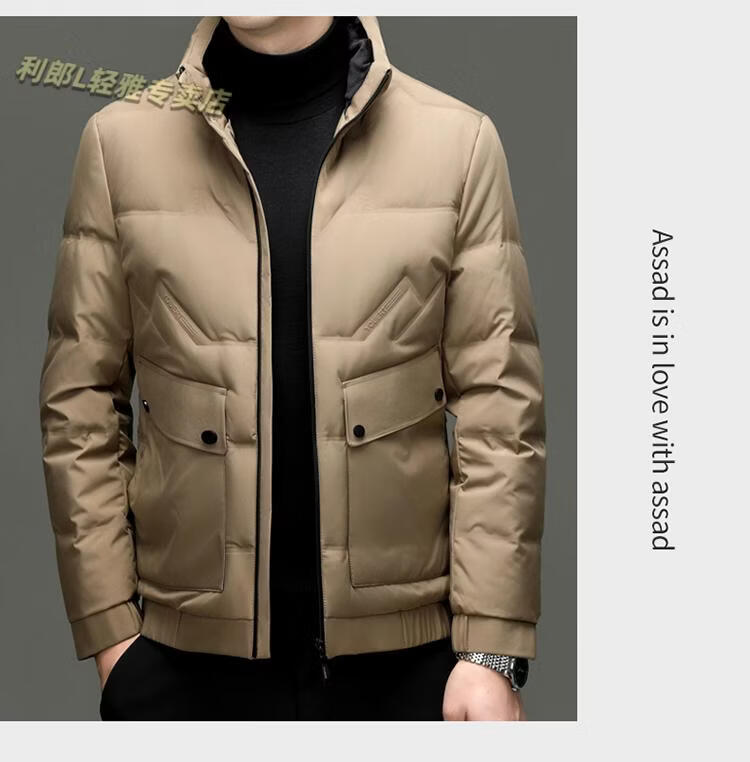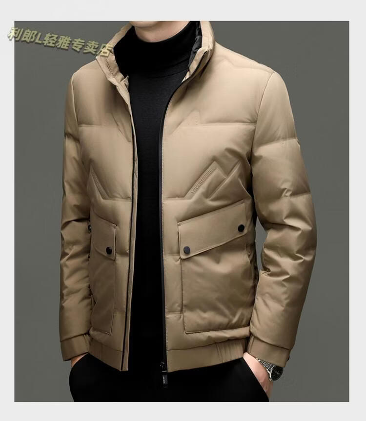 LILANZ Short Stand Collar Down Jacket White Duck Down Lightweight Jacket 2026 Winter New Lapel Men's Casual Dad Wear Khaki L