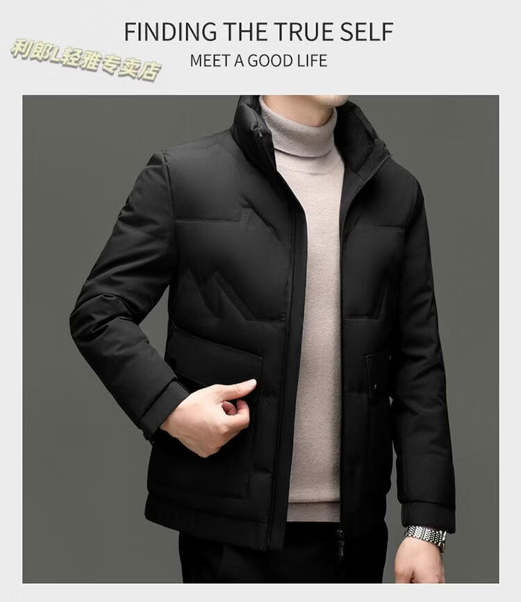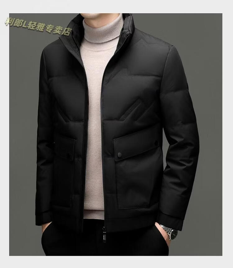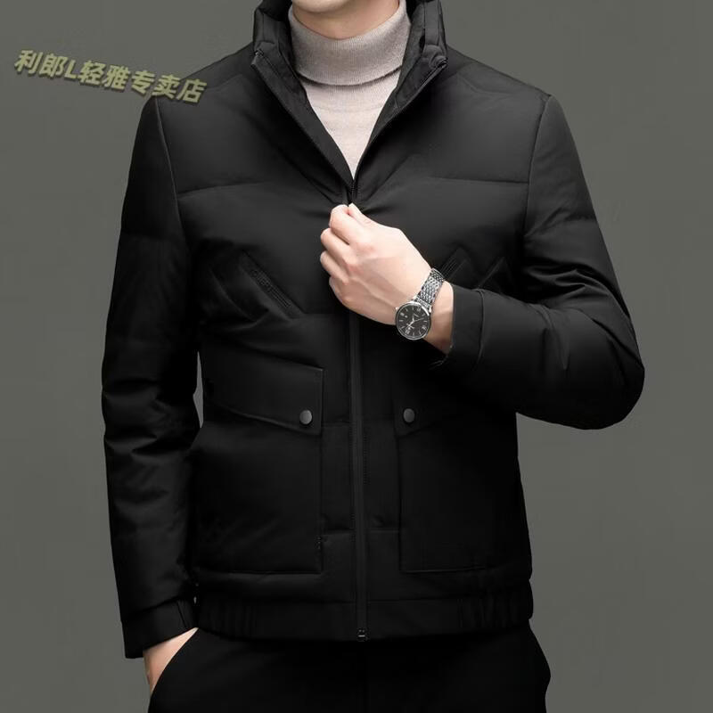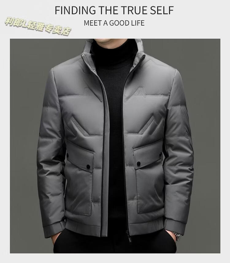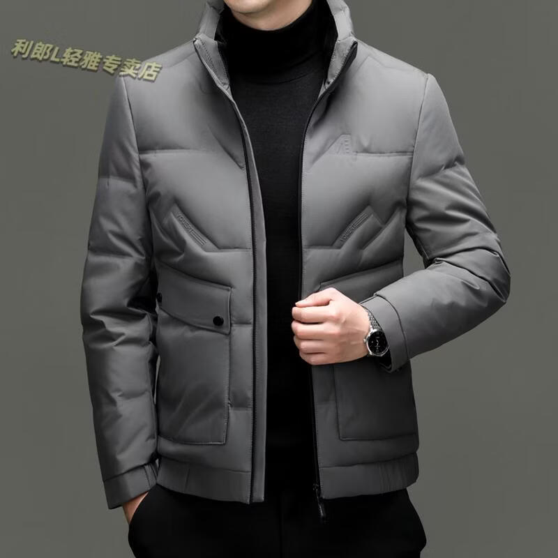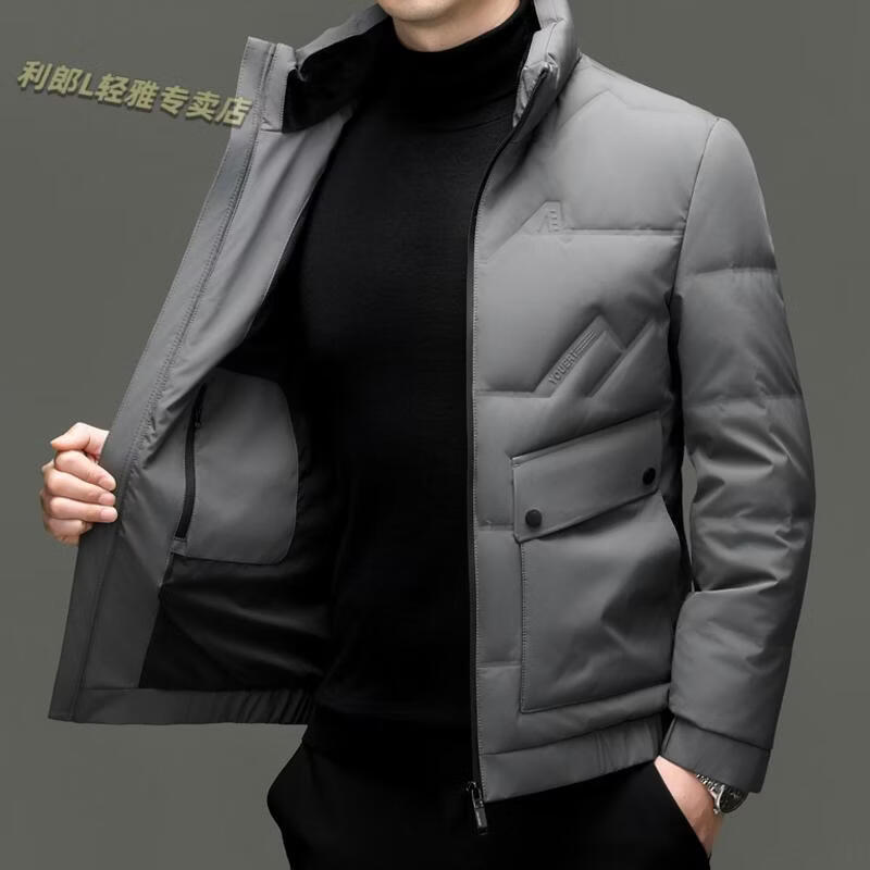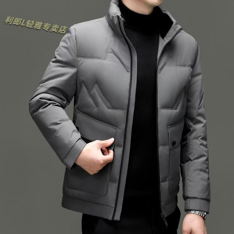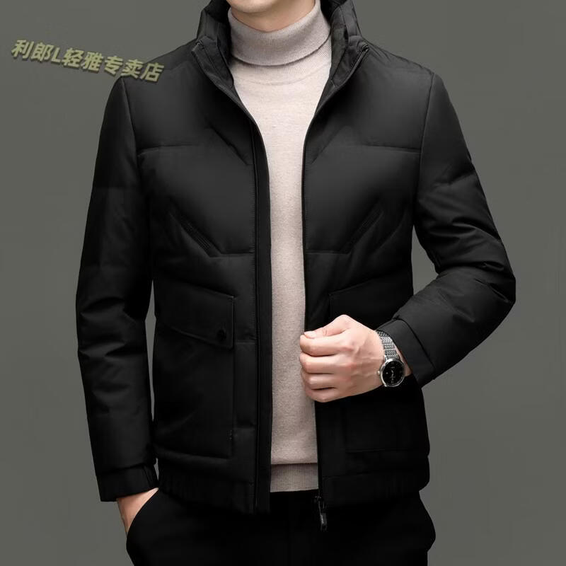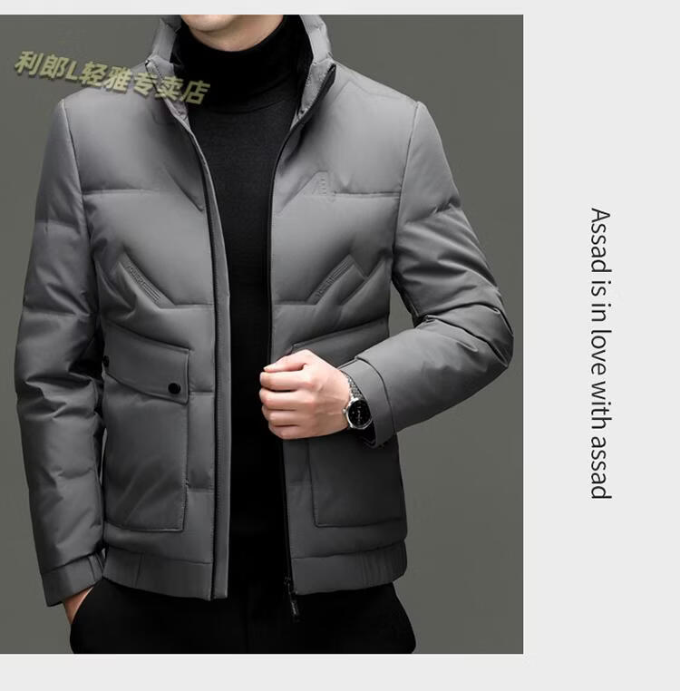 LILANZ Short Stand Collar Down Jacket White Duck Down Lightweight Jacket 2026 Winter New Lapel Men's Casual Dad Wear Khaki L