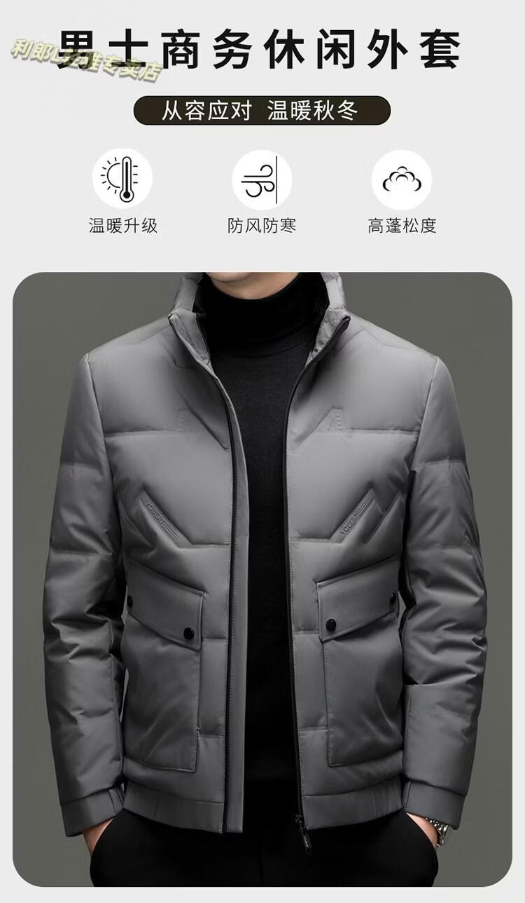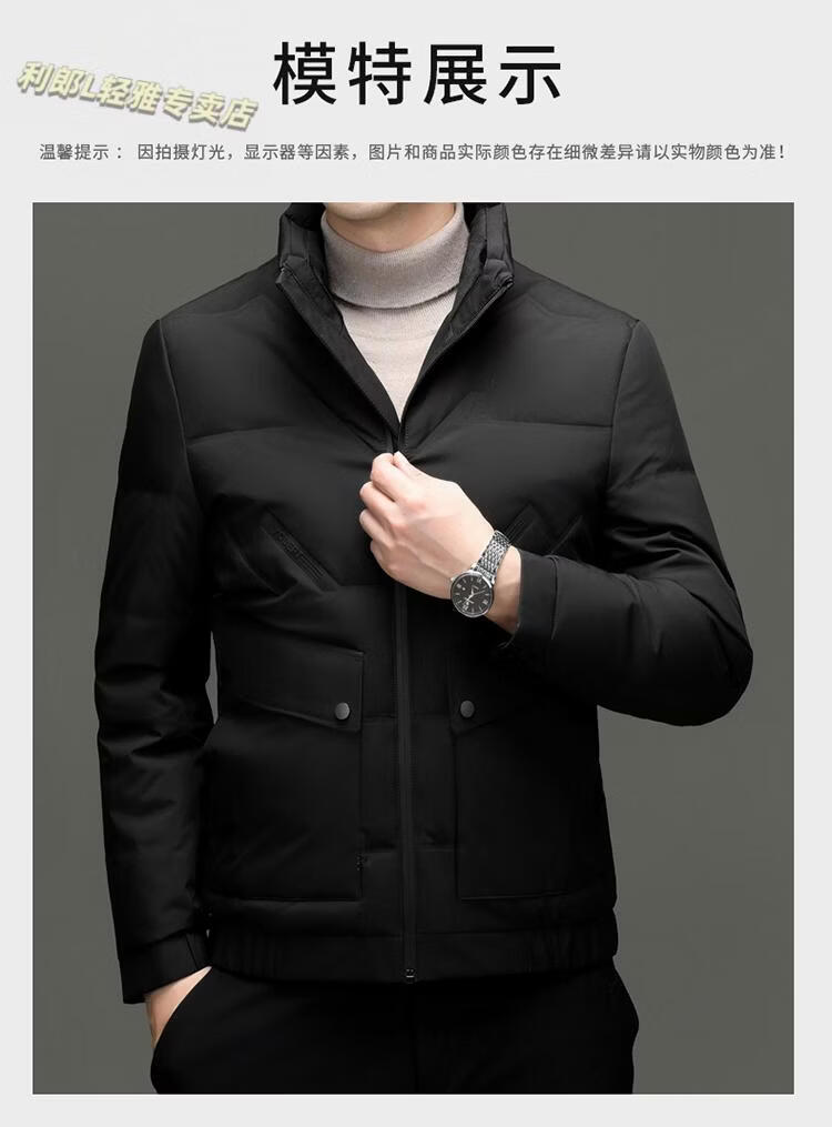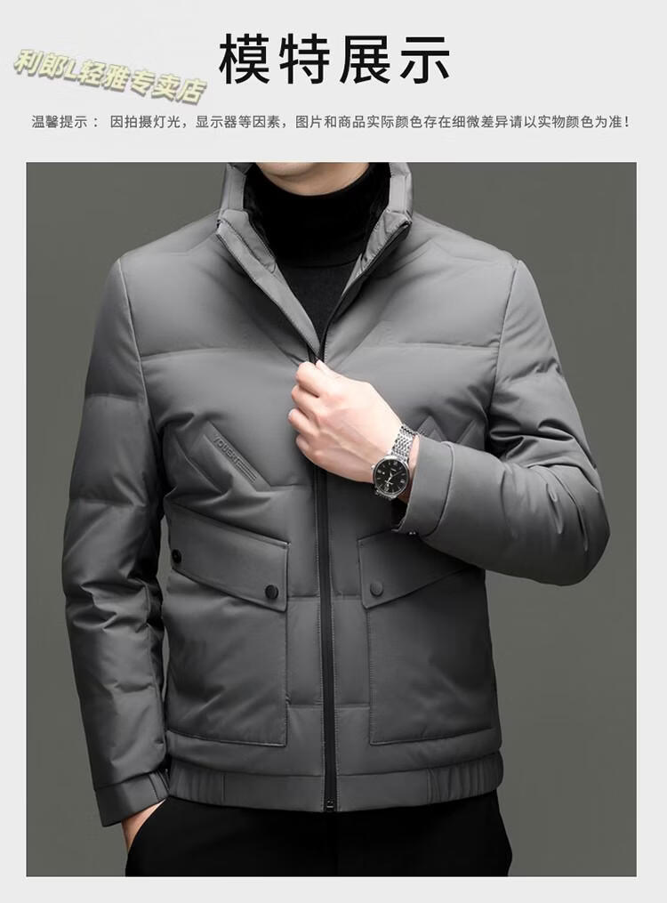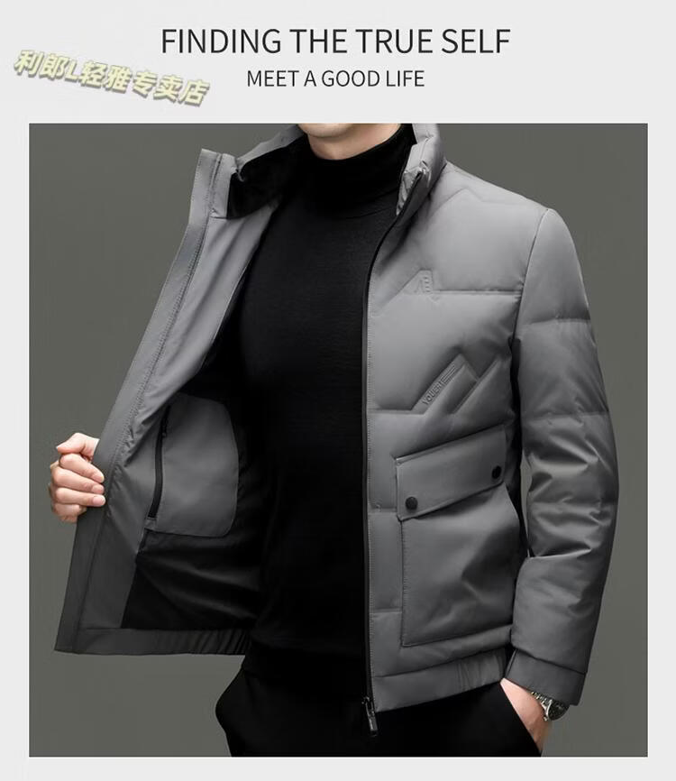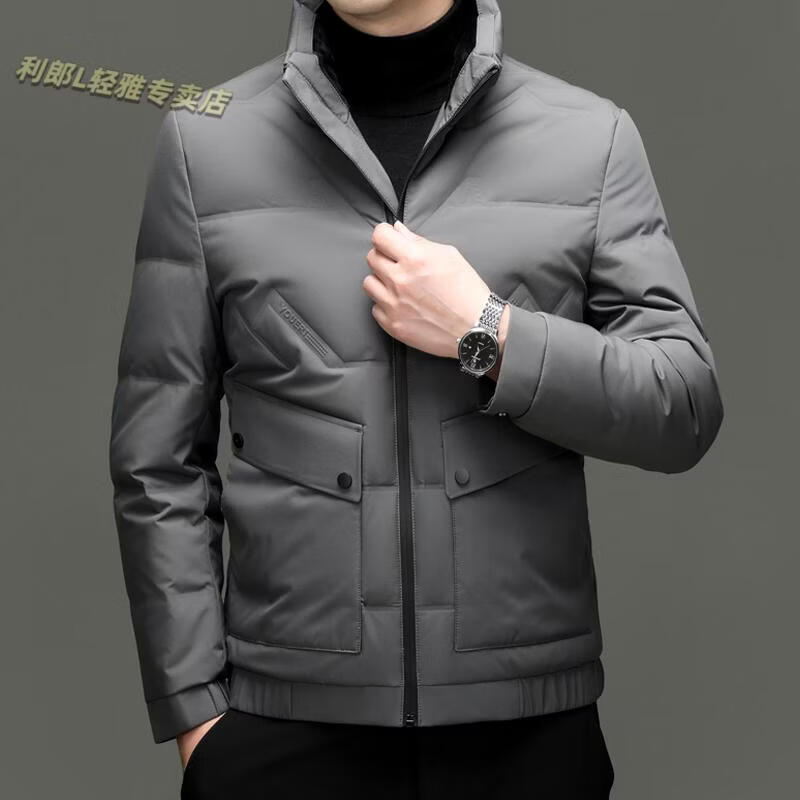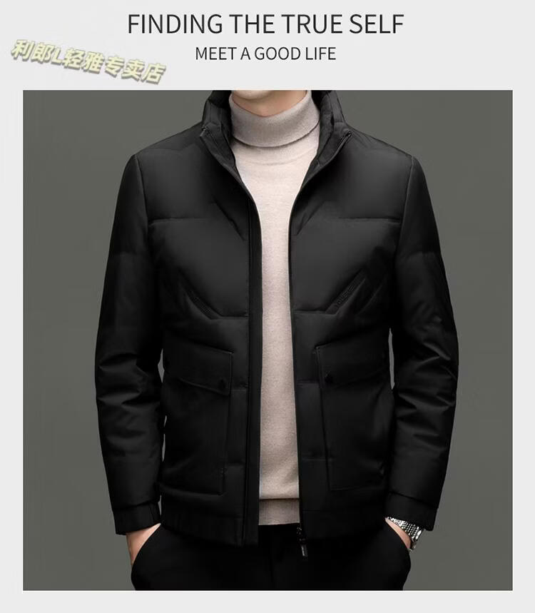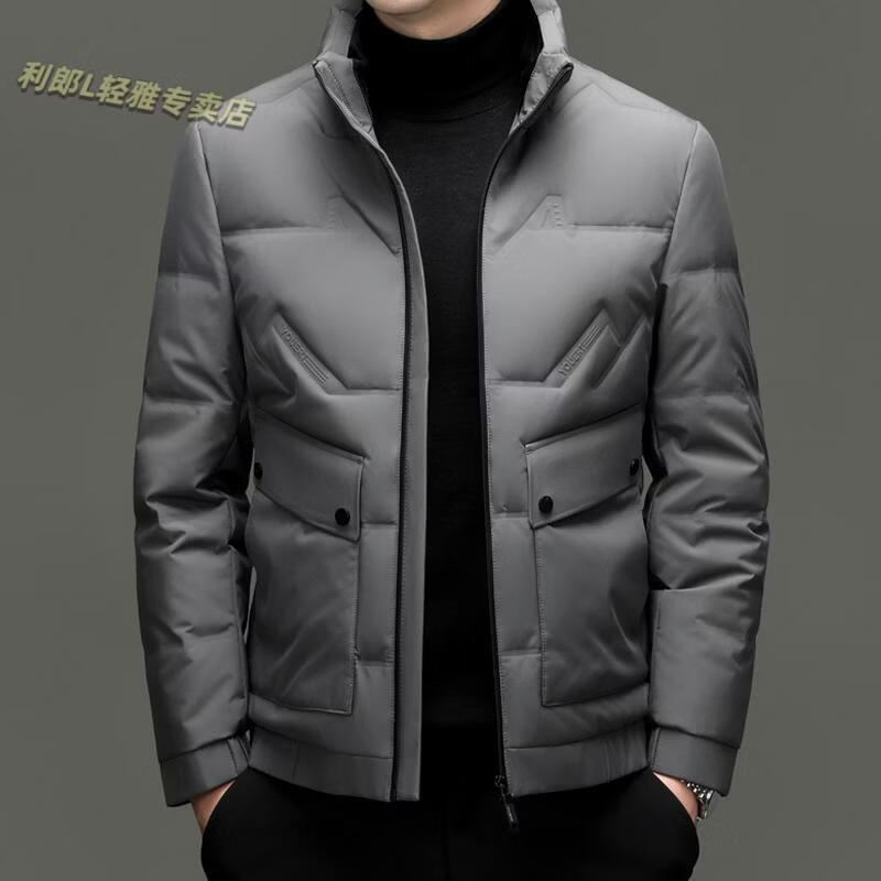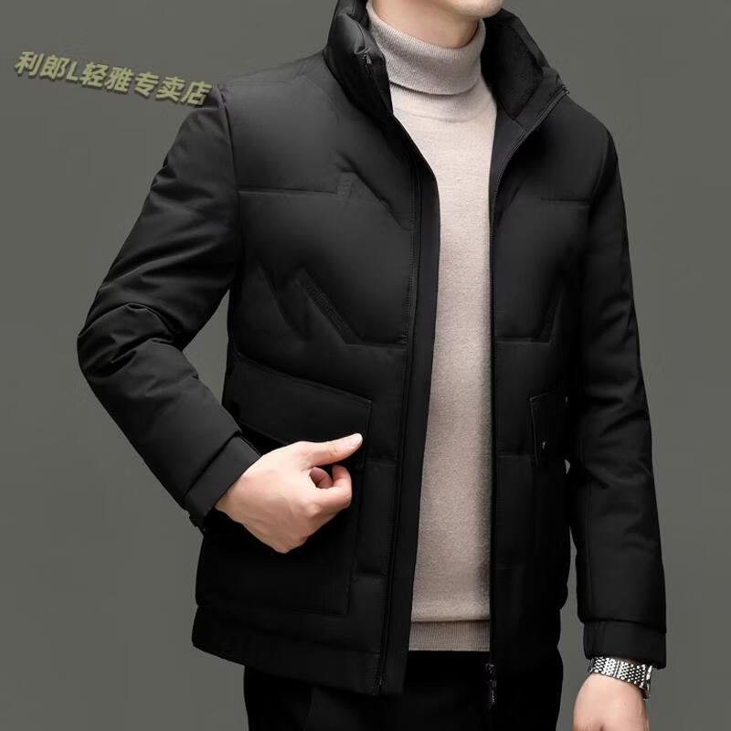 LILANZ Short Stand Collar Down Jacket White Duck Down Lightweight Jacket 2026 Winter New Lapel Men's Casual Dad Wear Khaki L