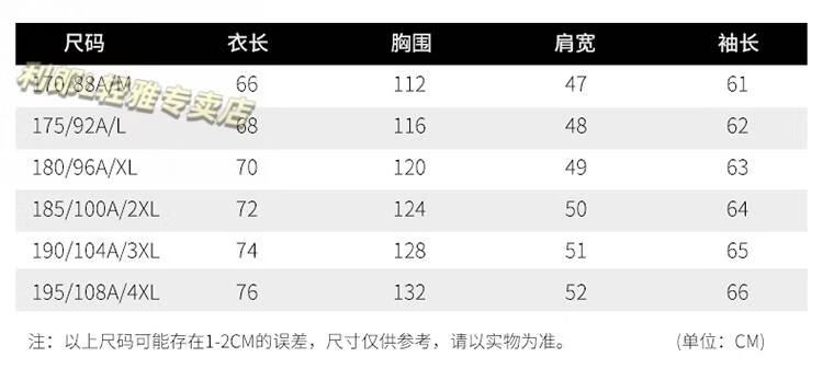 China (cm) 165 / 88-90 170 / 96-98 175 / 108-110 180 / 118-122 185 / 126-130