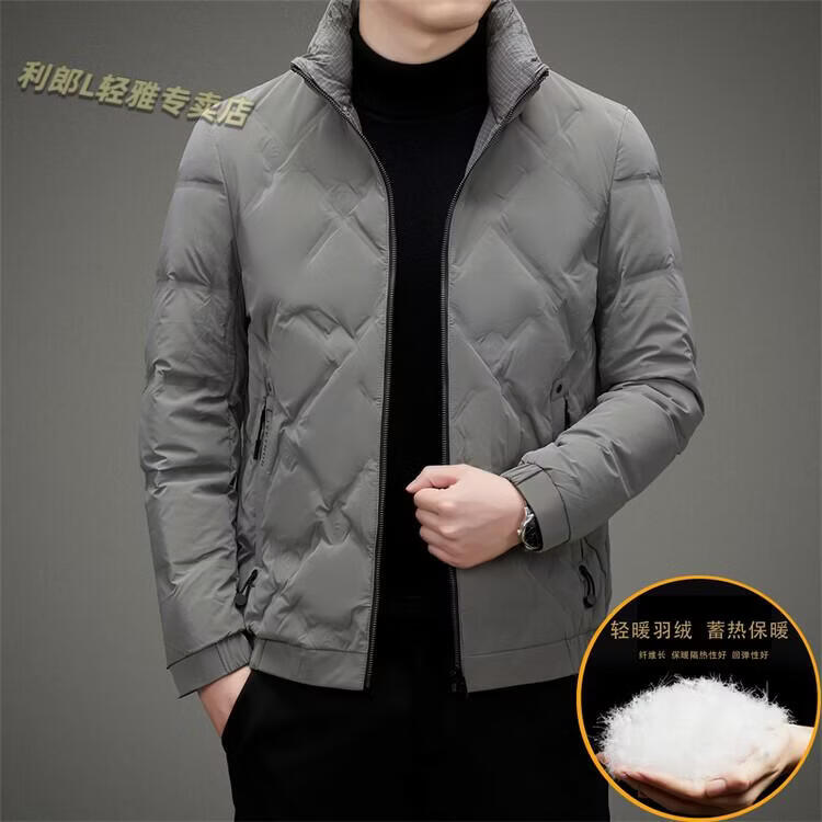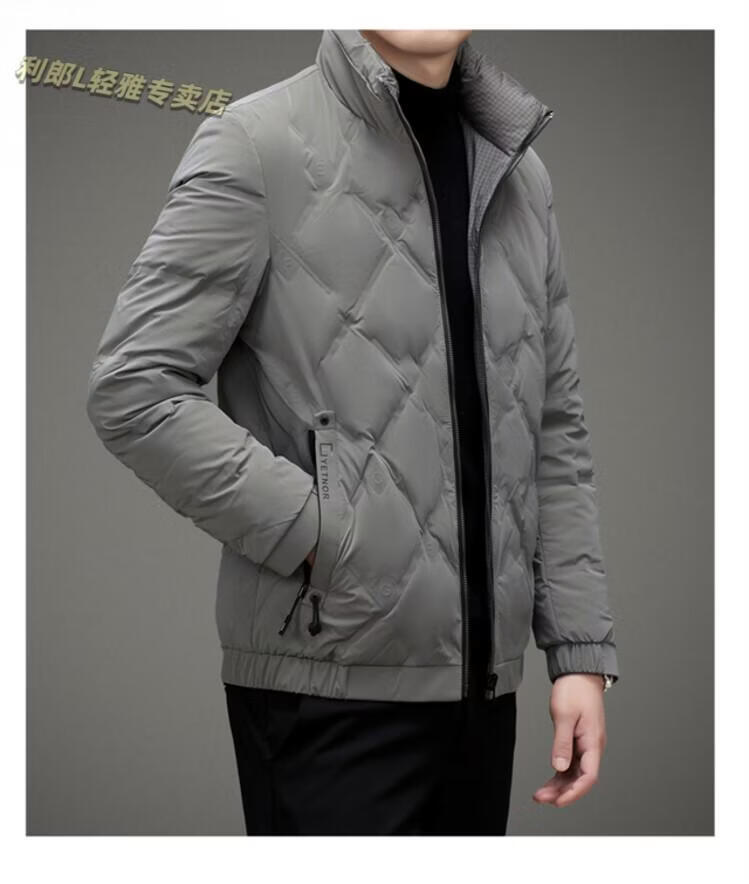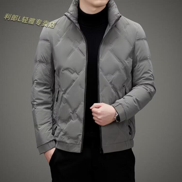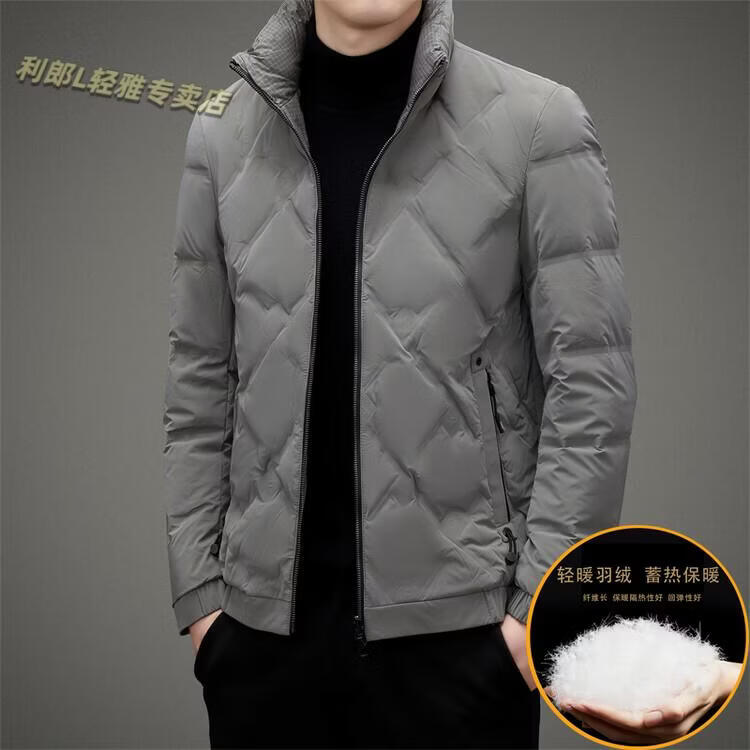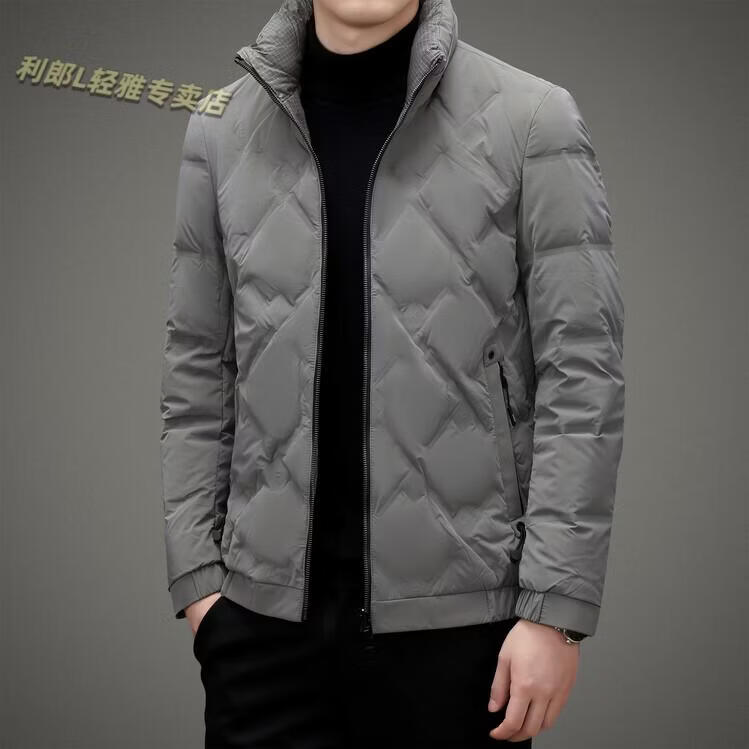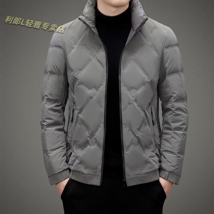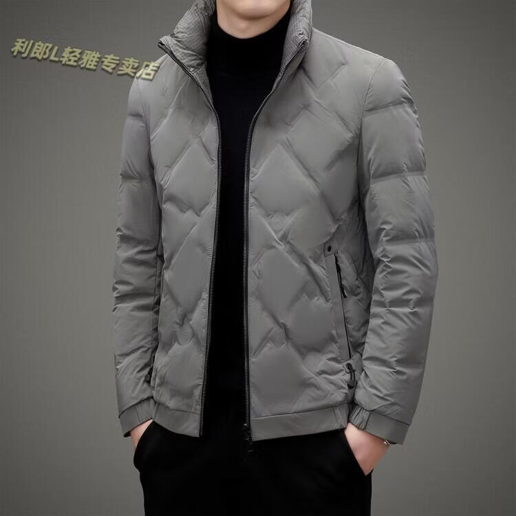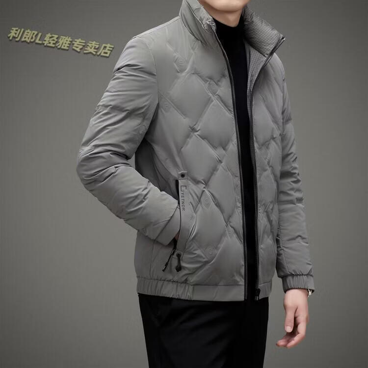 LILANZ Lightweight Down Jacket Men's Short 2026 Winter New Fashion Casual Business Top Stand Collar Thickened Versatile Jacket Light Gray L
