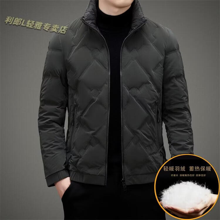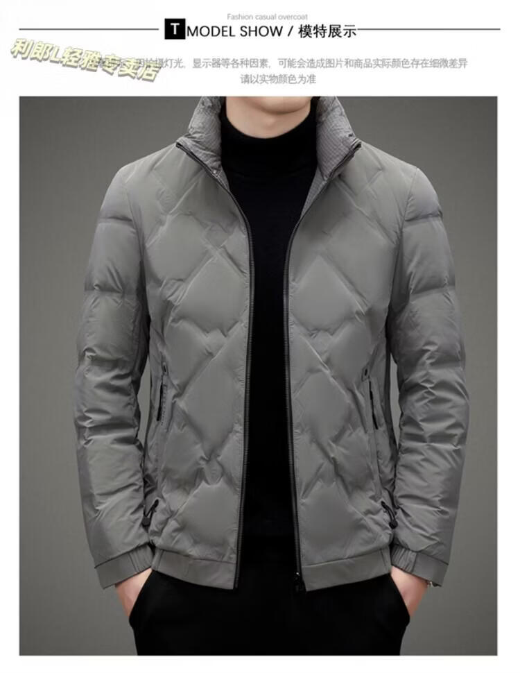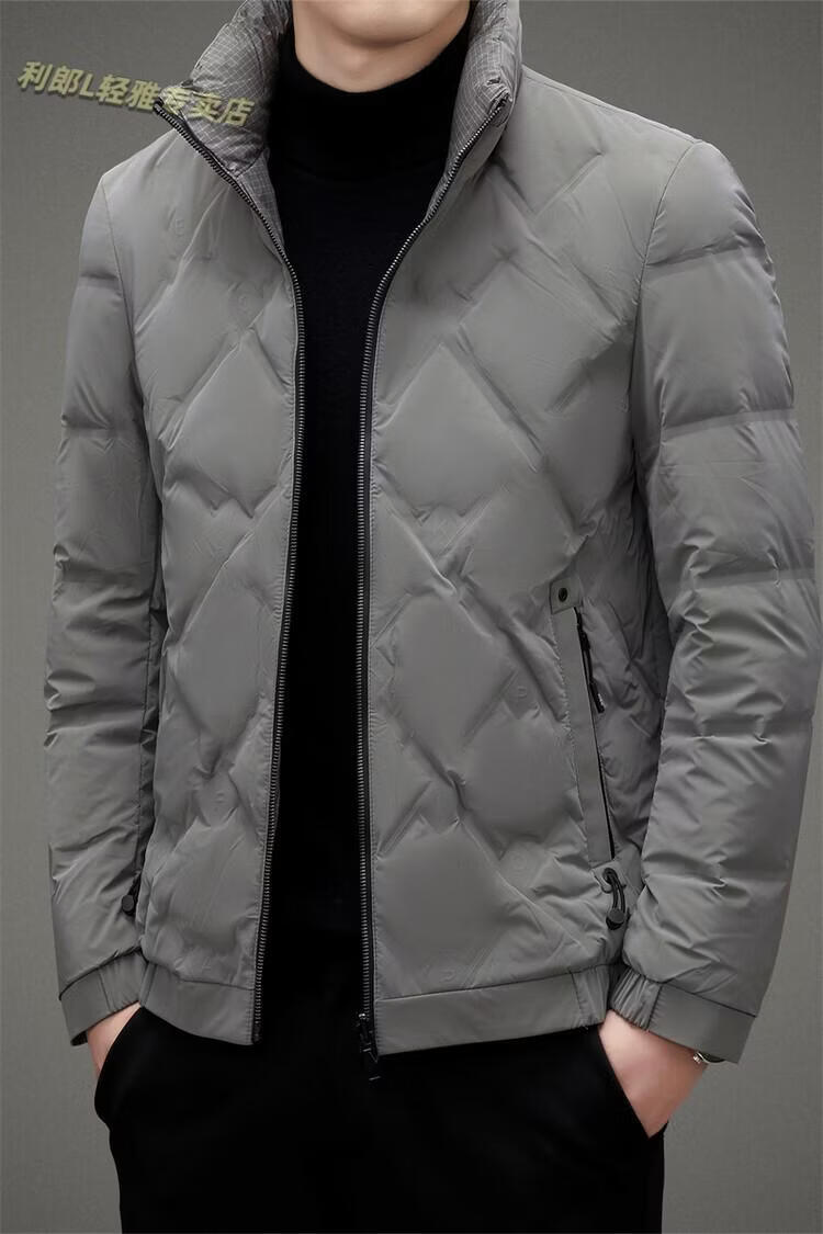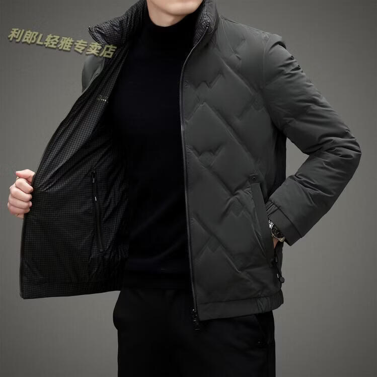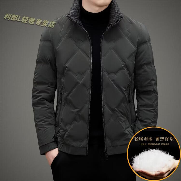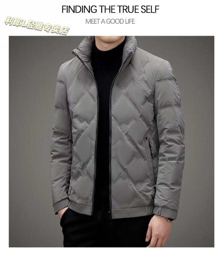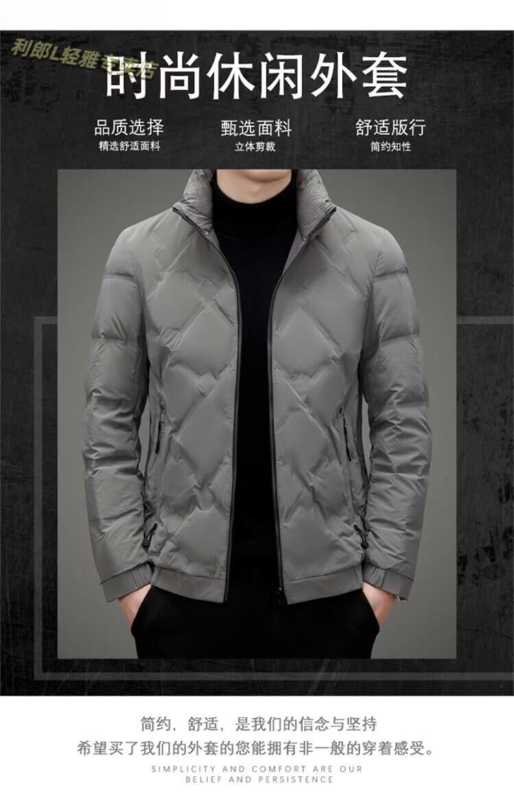 LILANZ Lightweight Down Jacket Men's Short 2026 Winter New Fashion Casual Business Top Stand Collar Thickened Versatile Jacket Light Gray L