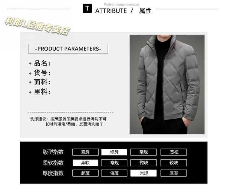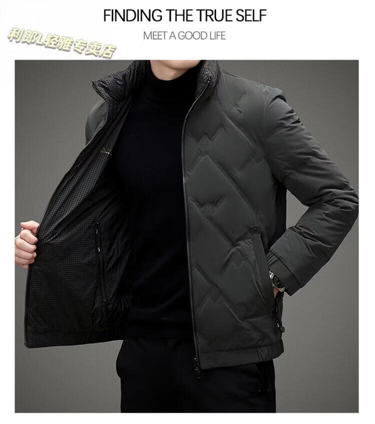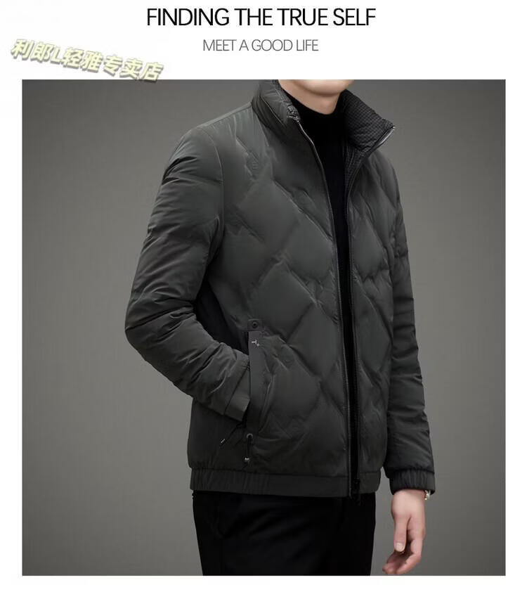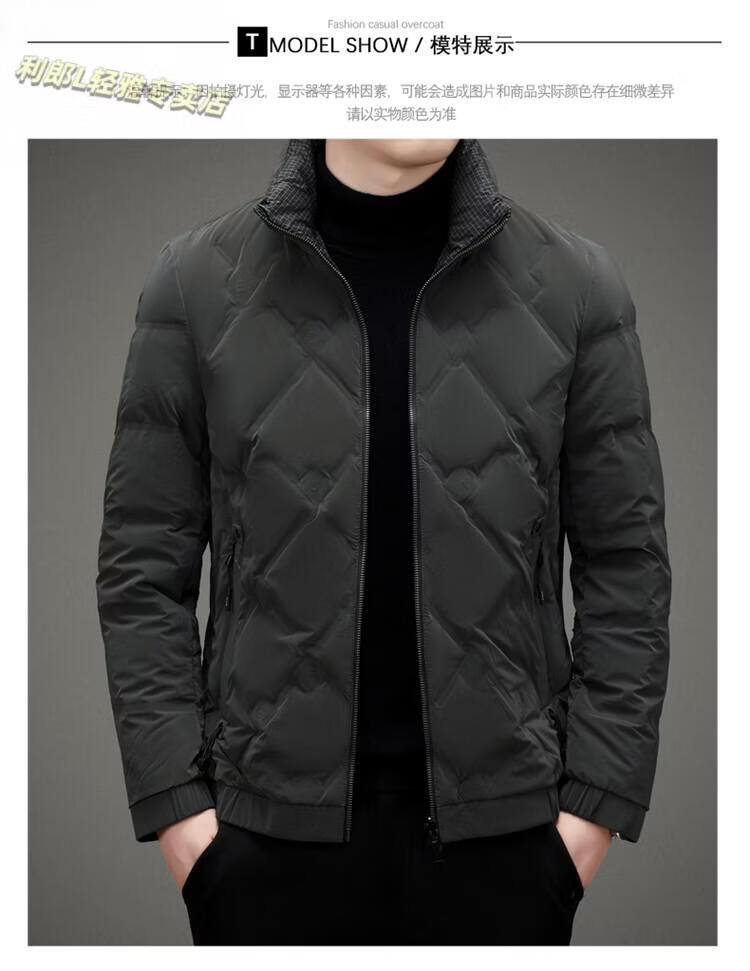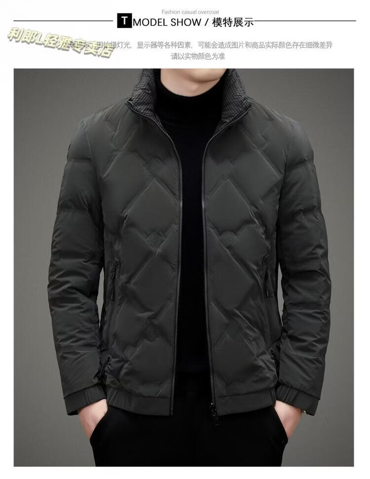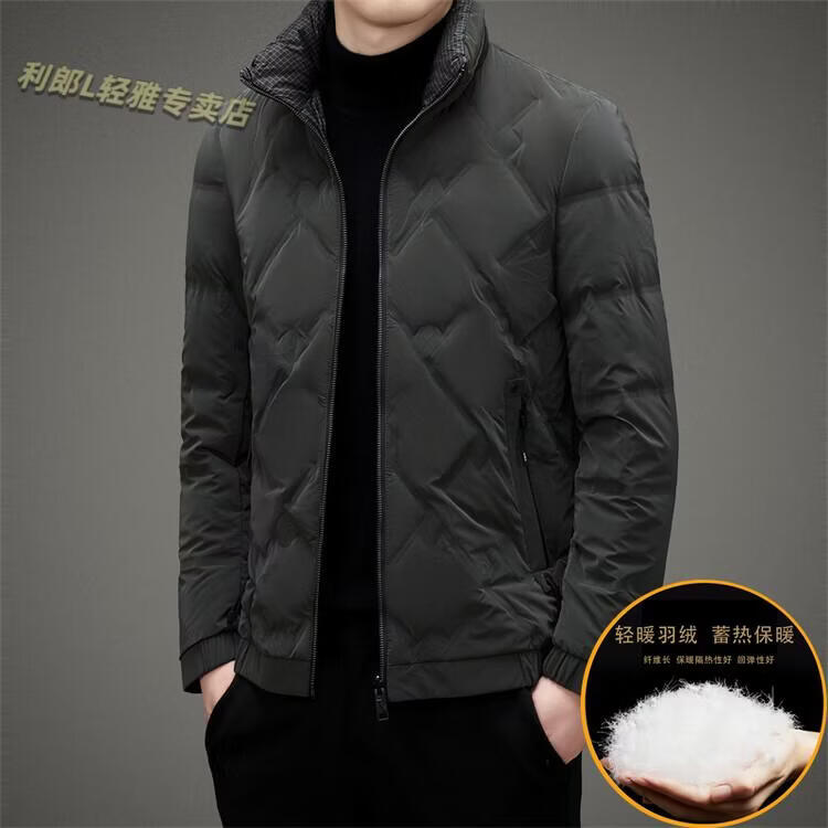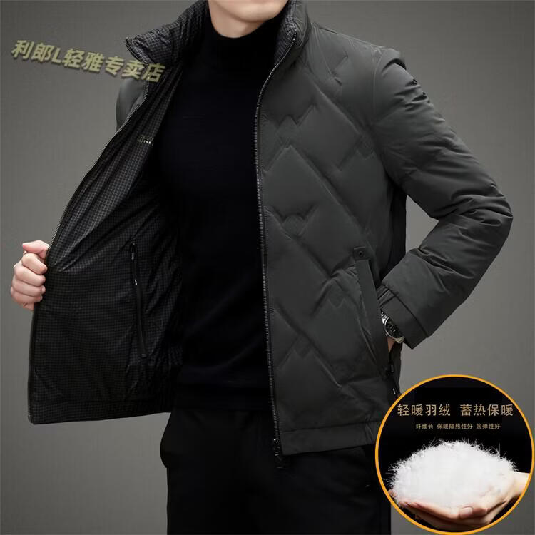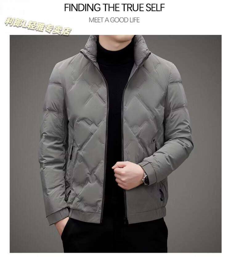 LILANZ Lightweight Down Jacket Men's Short 2026 Winter New Fashion Casual Business Top Stand Collar Thickened Versatile Jacket Light Gray L