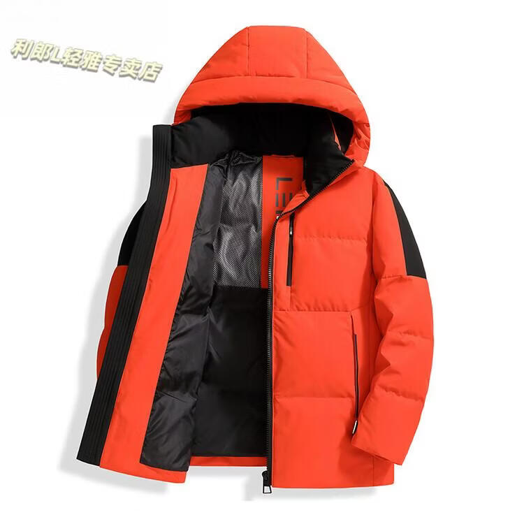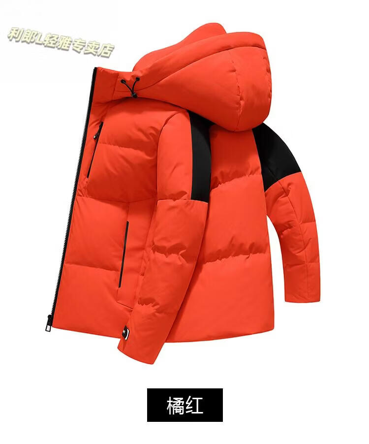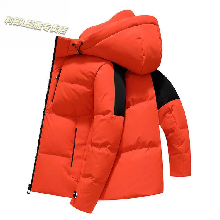 LILANZ new winter down jacket men's short hooded business casual fashion versatile cold-proof and warm down jacket for young and middle-aged people Orange 4XL