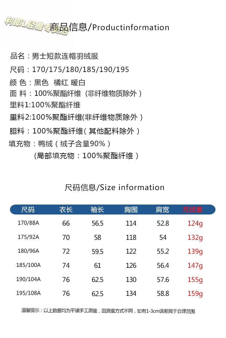 China (cm) 165 / 88-90 170 / 96-98 175 / 108-110 180 / 118-122 185 / 126-130