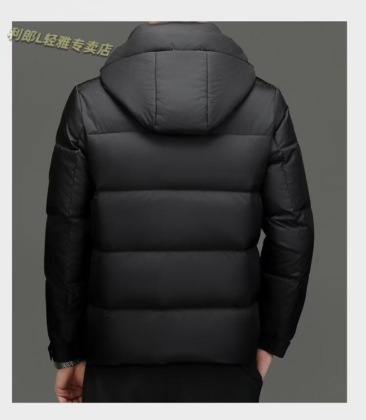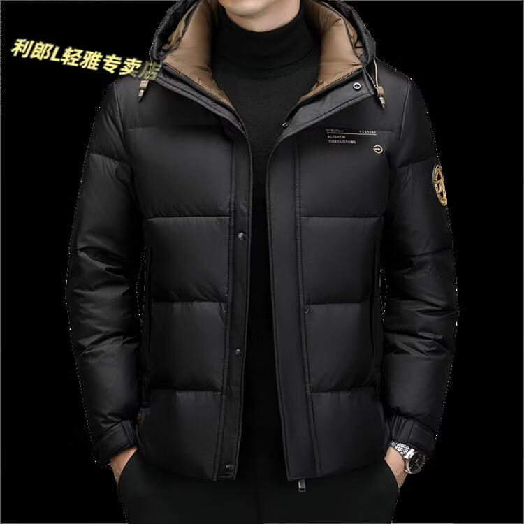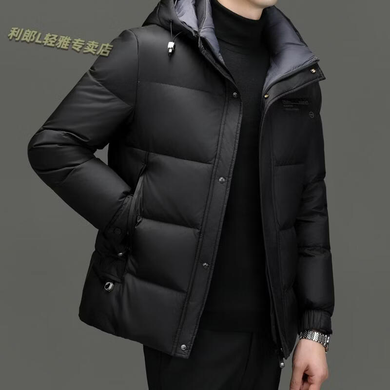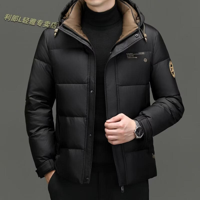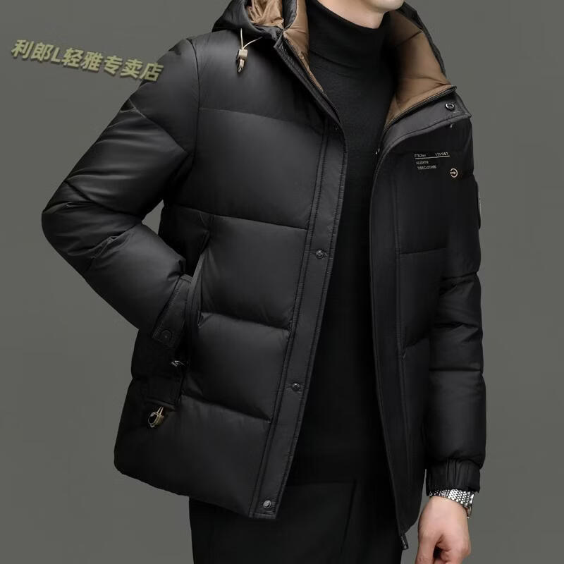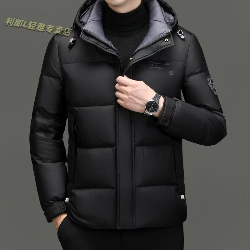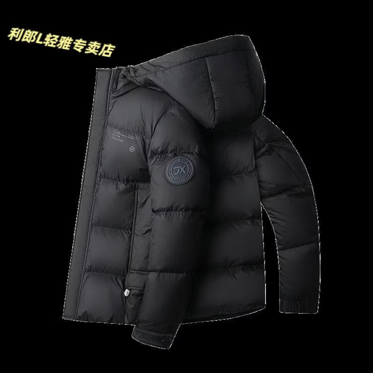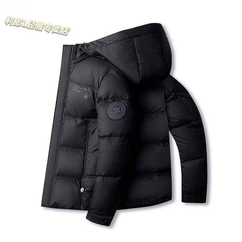 利郎(LILANZ)冬季新款男士羽绒服加厚保暖潮白鸭绒连帽短款休闲冬装羽绒外套男 蓝黑 2XL