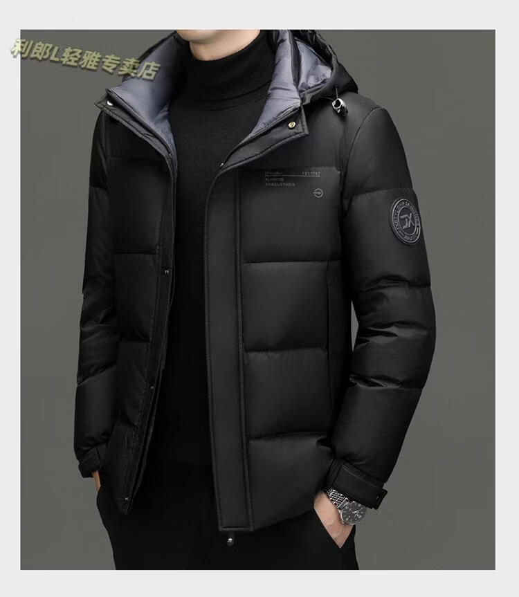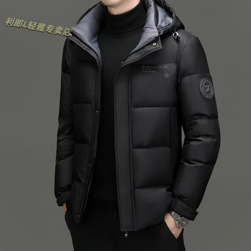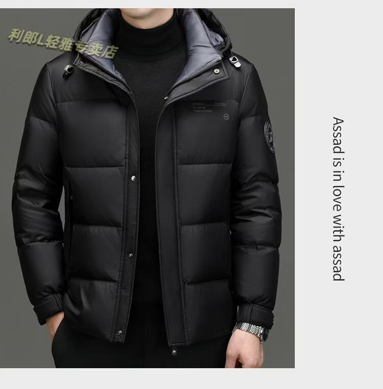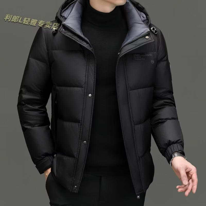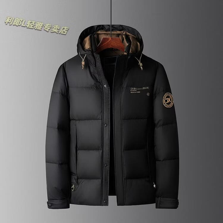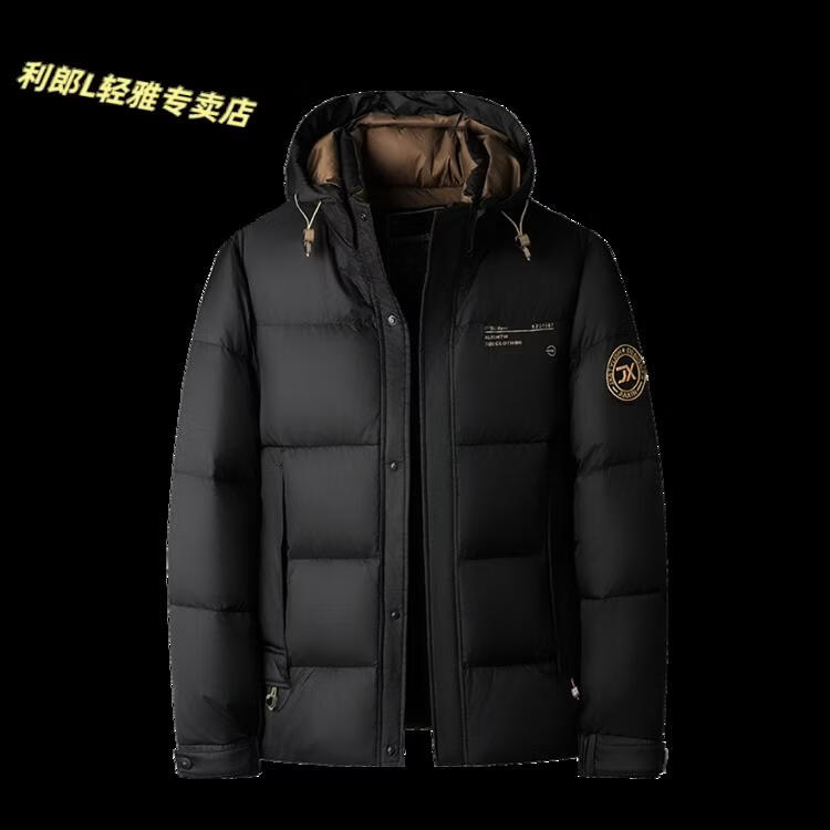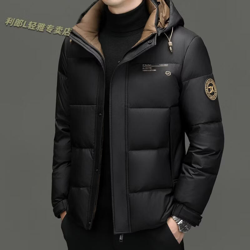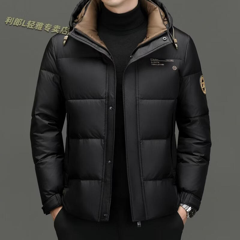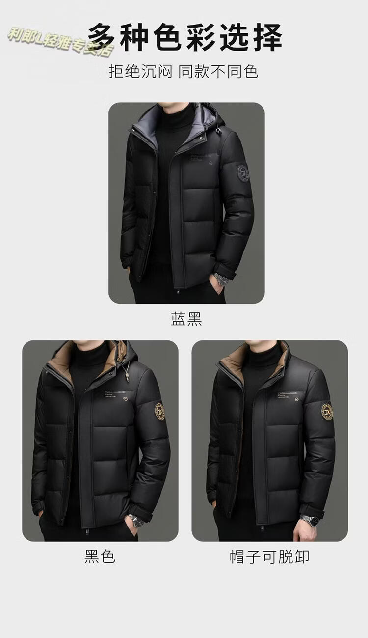 利郎(LILANZ)冬季新款男士羽绒服加厚保暖潮白鸭绒连帽短款休闲冬装羽绒外套男 蓝黑 2XL