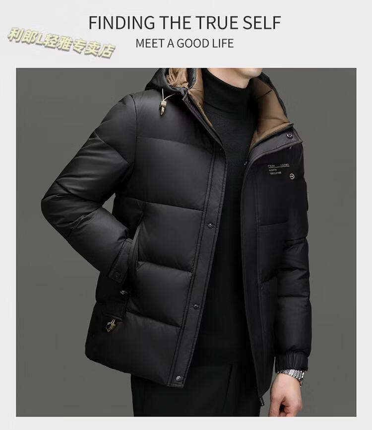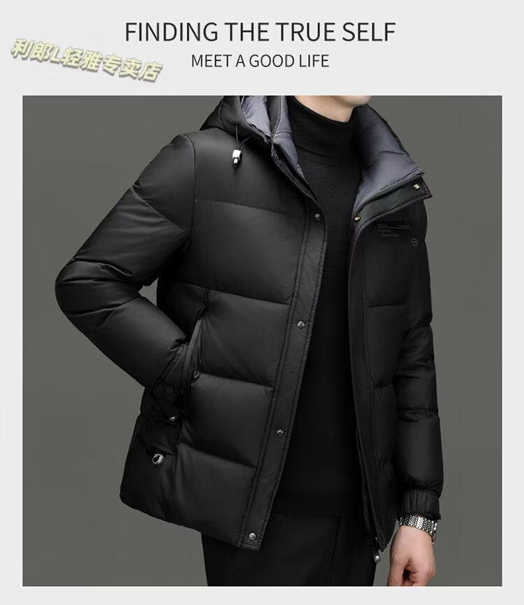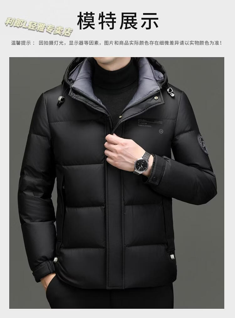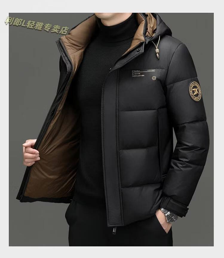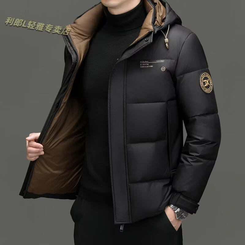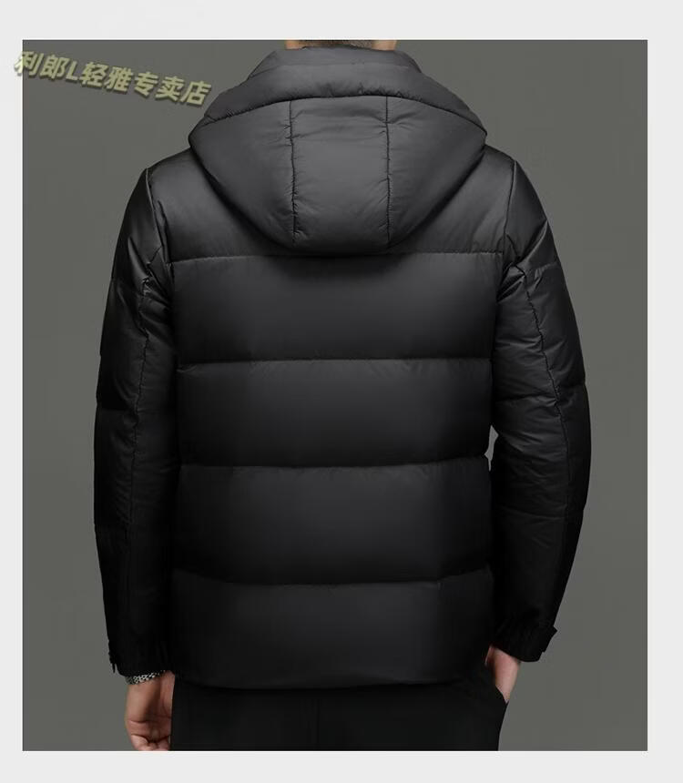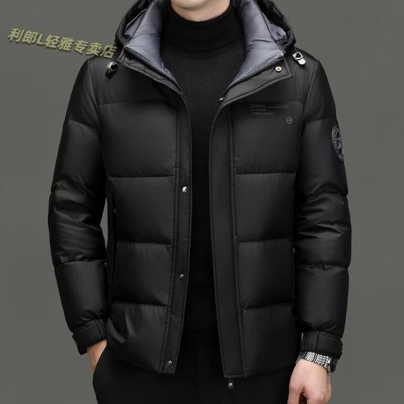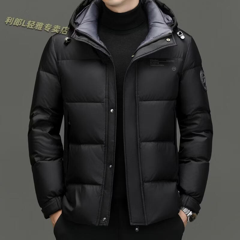利郎(LILANZ)冬季新款男士羽绒服加厚保暖潮白鸭绒连帽短款休闲冬装羽绒外套男 蓝黑 2XL