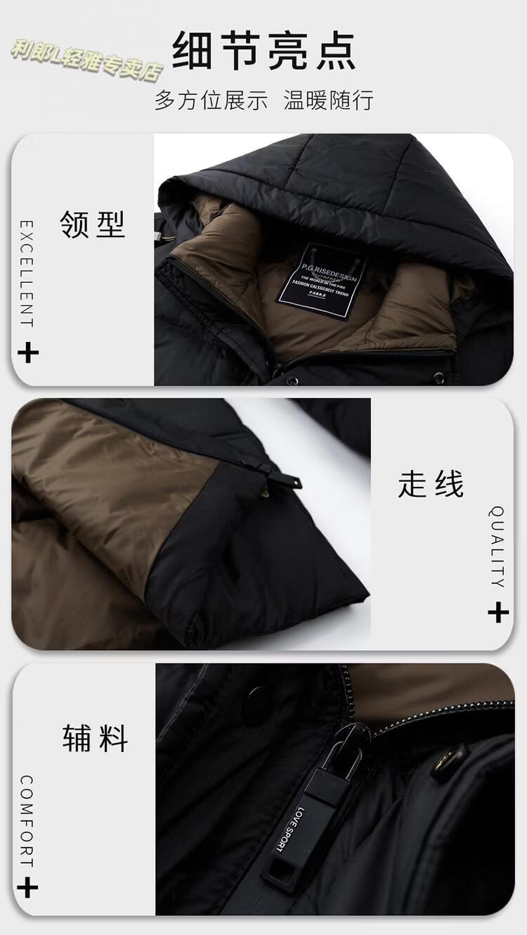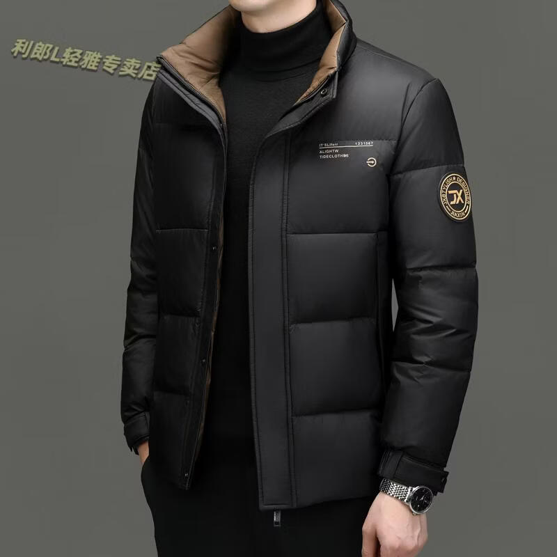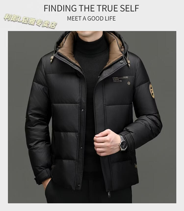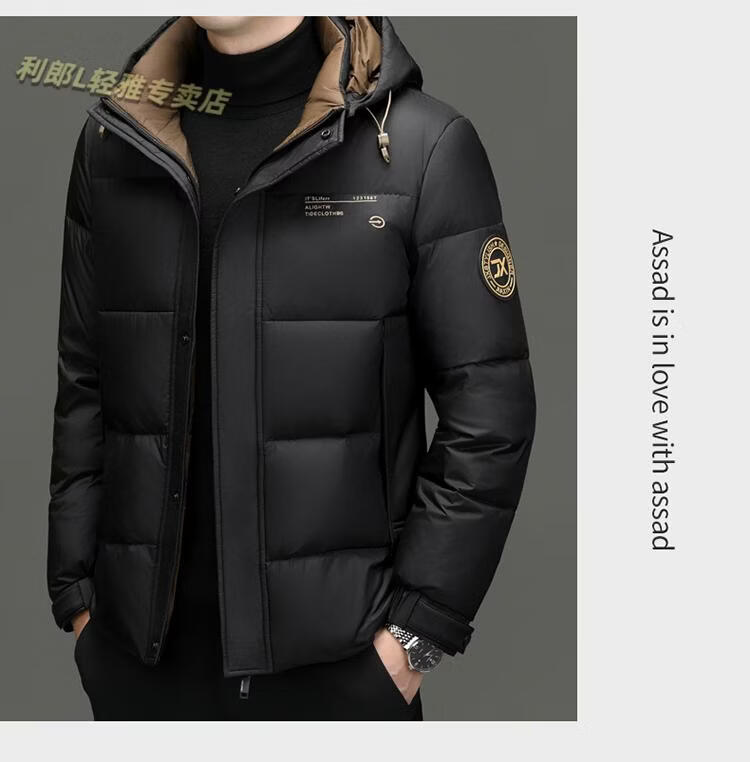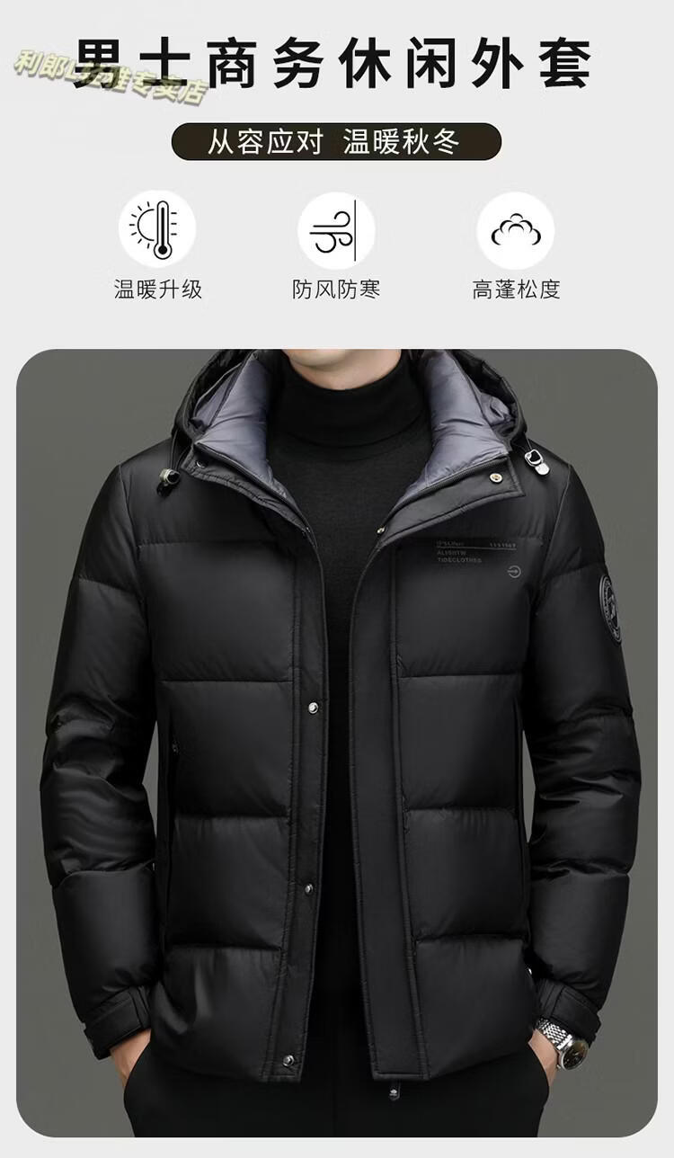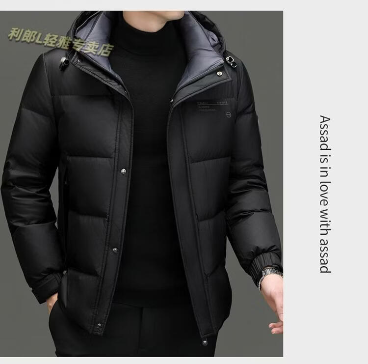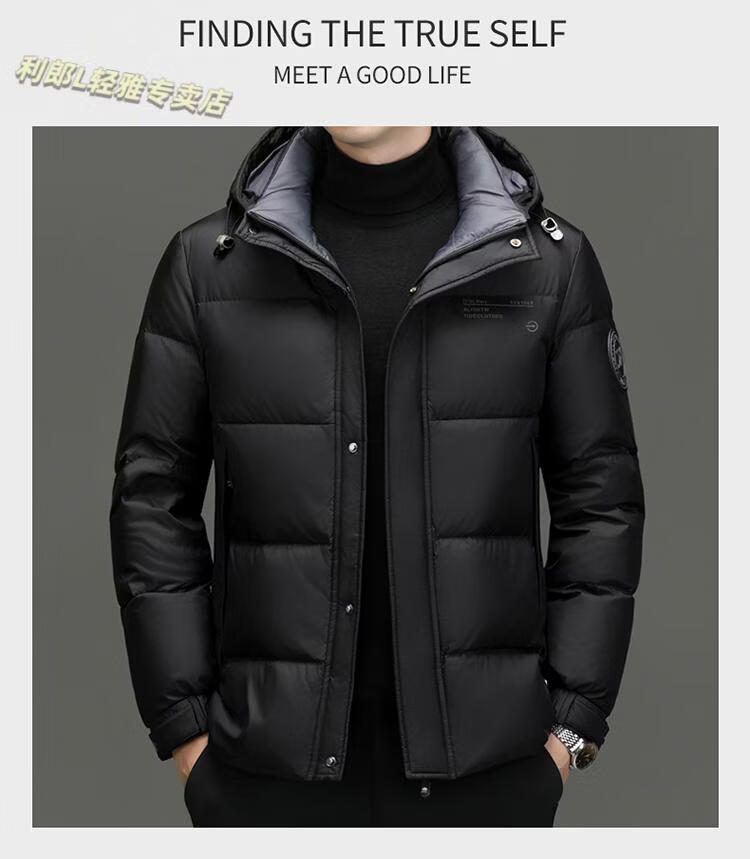 利郎(LILANZ)冬季新款男士羽绒服加厚保暖潮白鸭绒连帽短款休闲冬装羽绒外套男 蓝黑 2XL