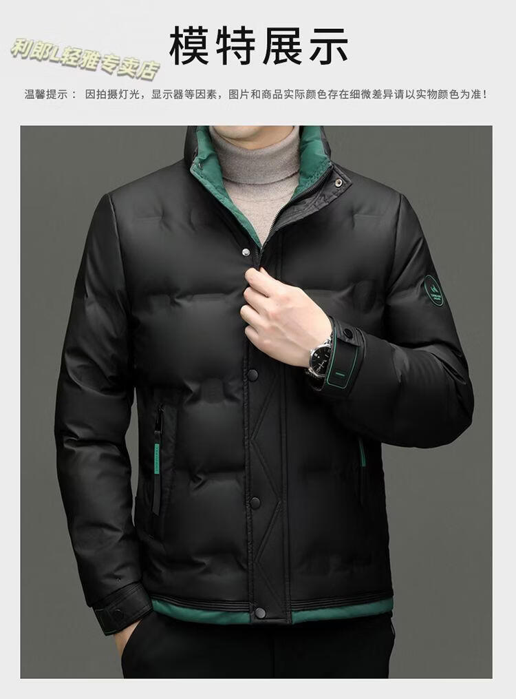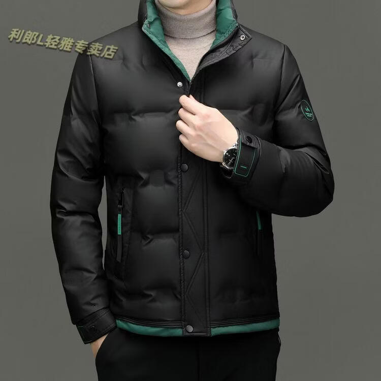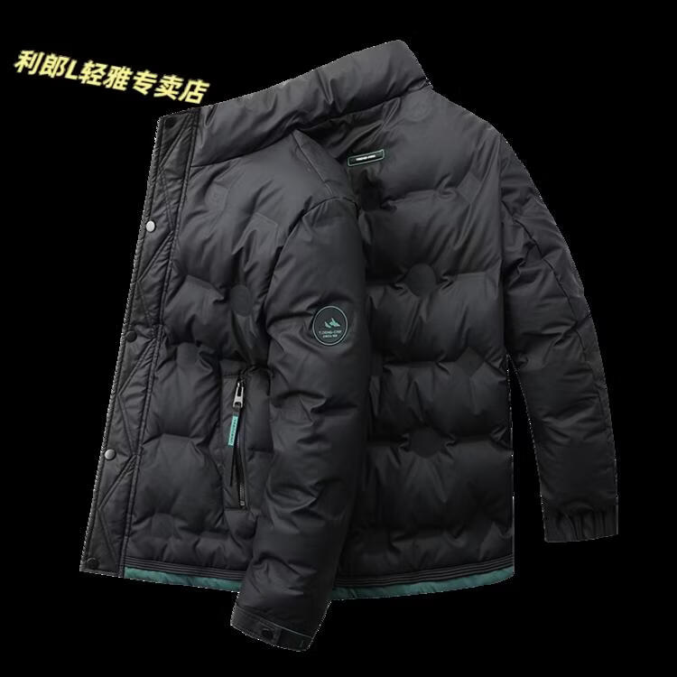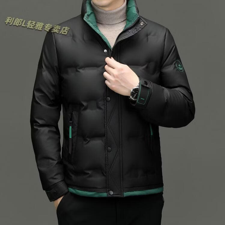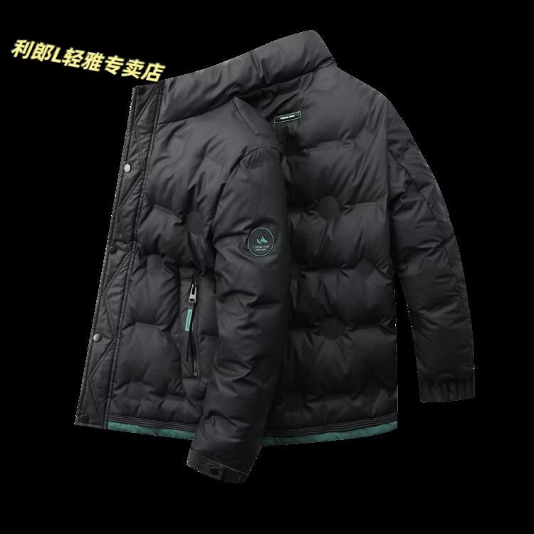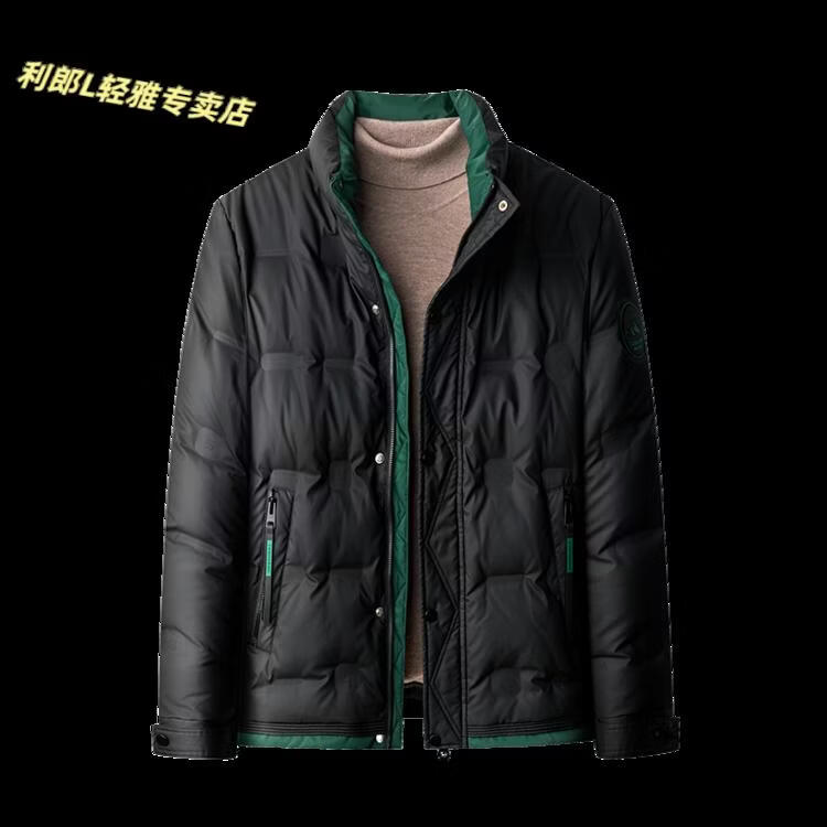 利郎(LILANZ)2026春秋冬季新款假两件拼接羽绒服男士商务休闲立领保暖夹克外套 黑色 M
