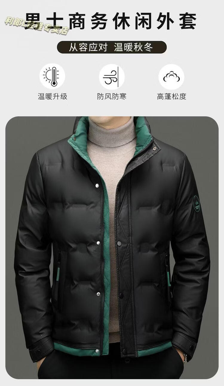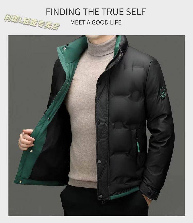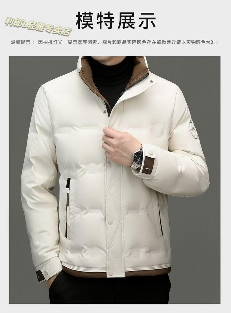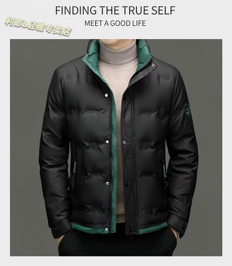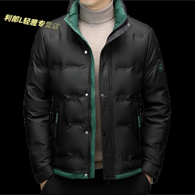 利郎(LILANZ)2026春秋冬季新款假两件拼接羽绒服男士商务休闲立领保暖夹克外套 黑色 M