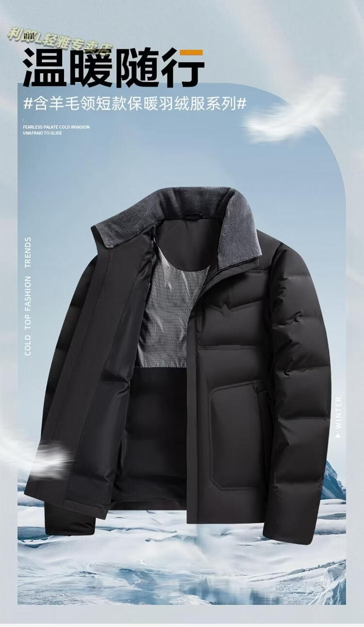 利郎(LILANZ)2026羽绒服男冬季新款90鸭绒短款立领商务休闲防风保暖外套衣服 藏青色 M 170