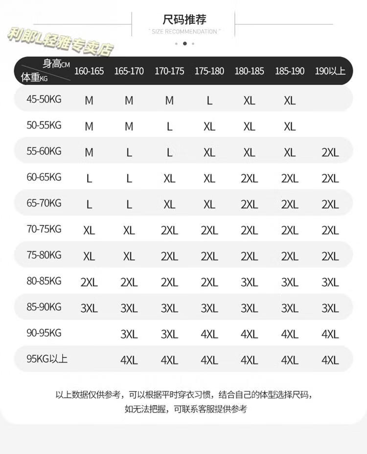 China (cm) 165 / 88-90 170 / 96-98 175 / 108-110 180 / 118-122 185 / 126-130