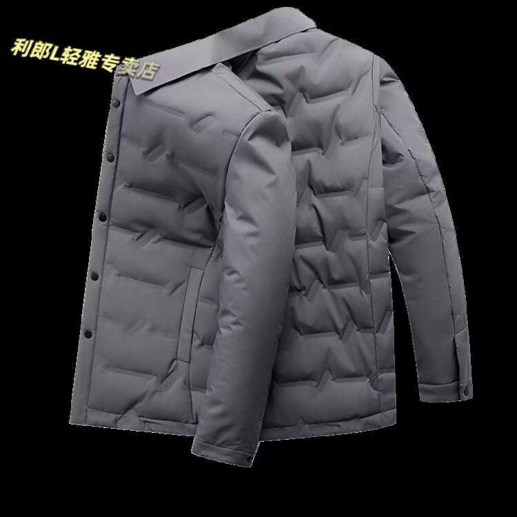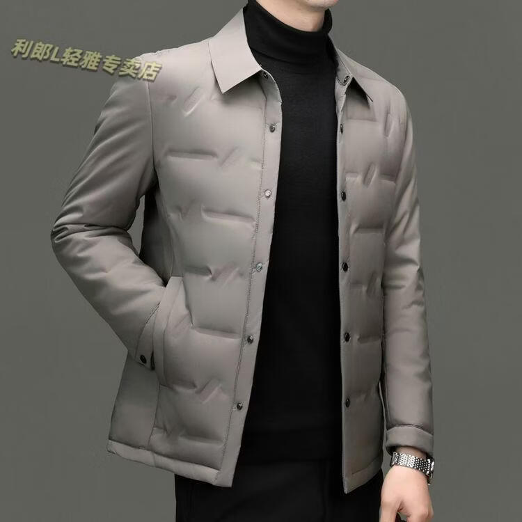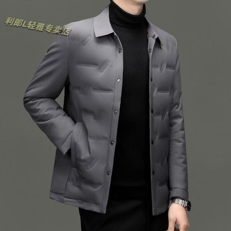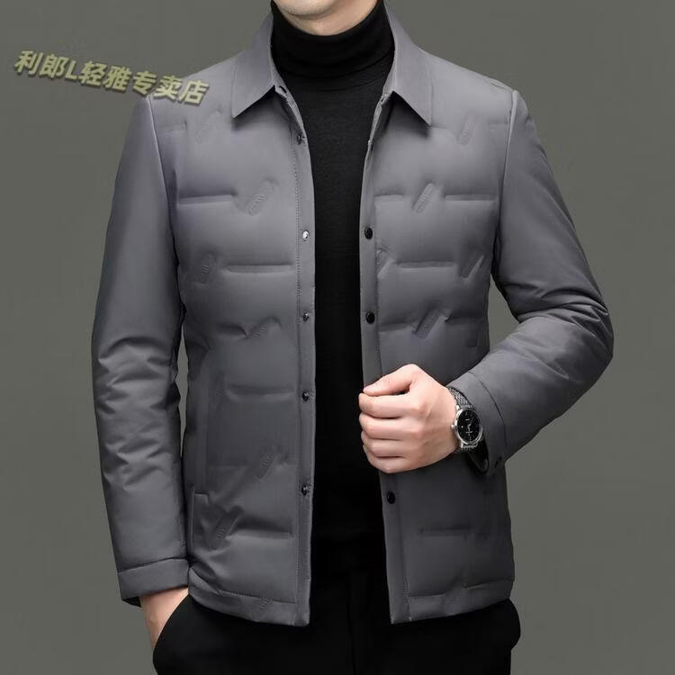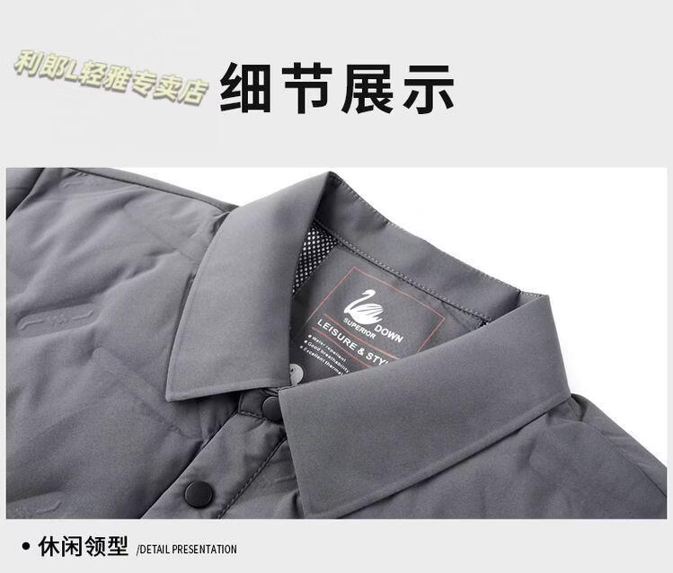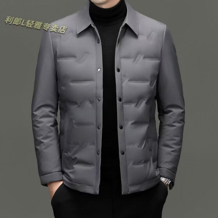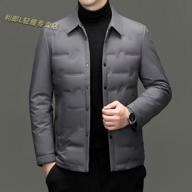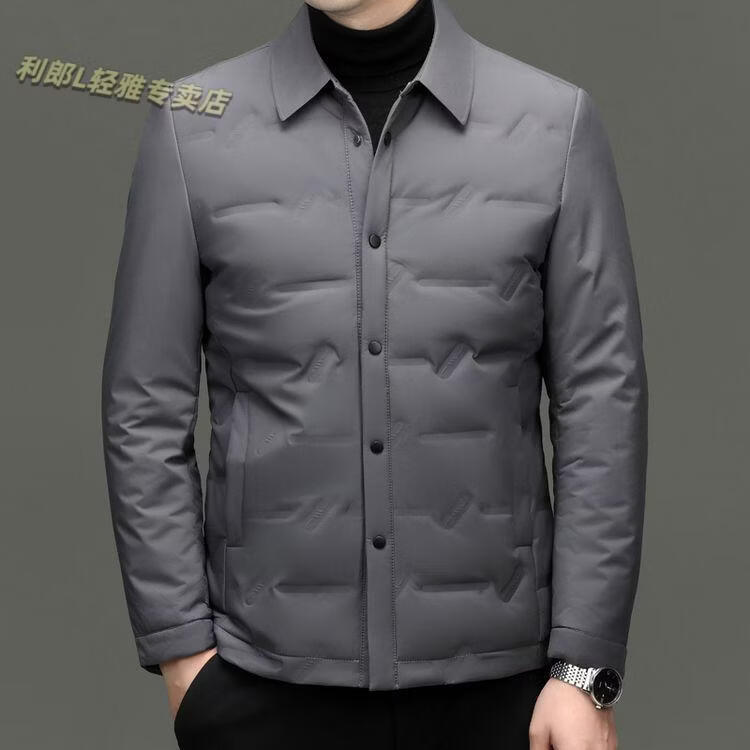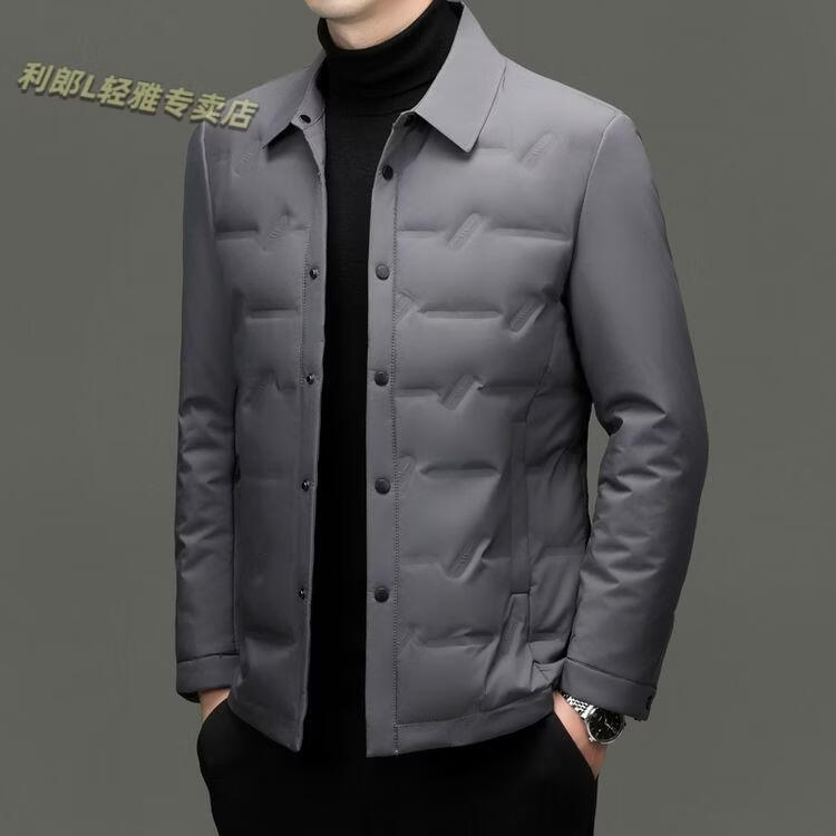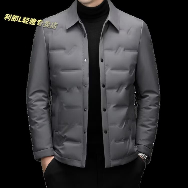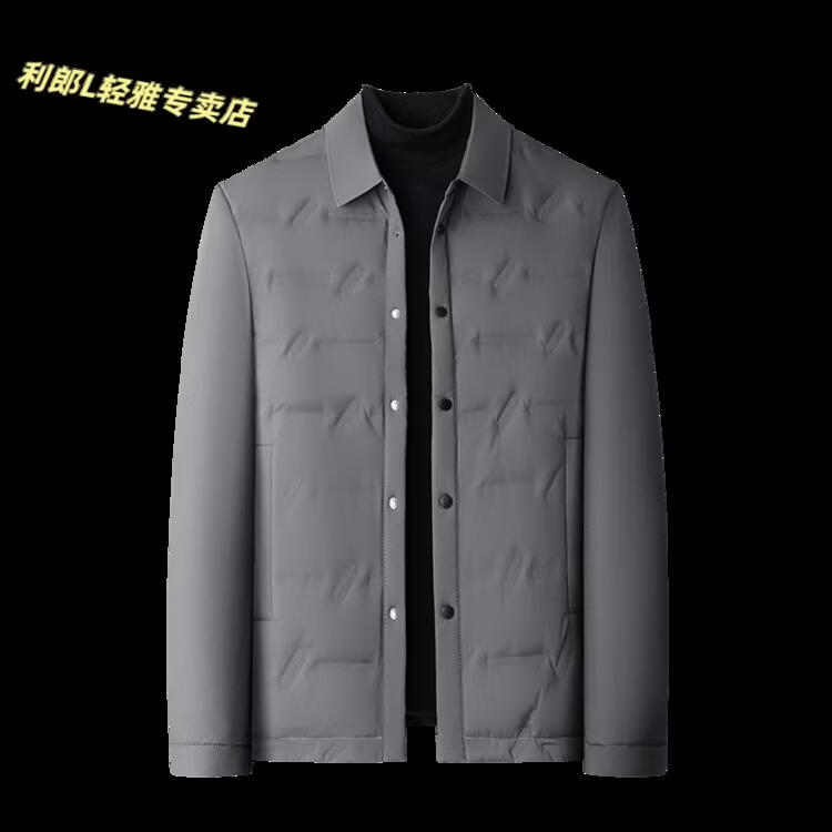 利郎(LILANZ)白鸭绒羽绒服男轻薄款秋冬季新款中年爸爸装商务休闲保暖夹克外套 灰色 M 170