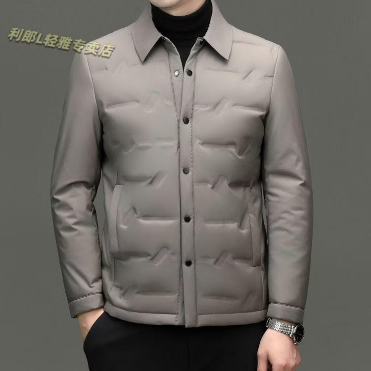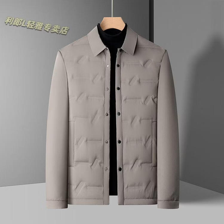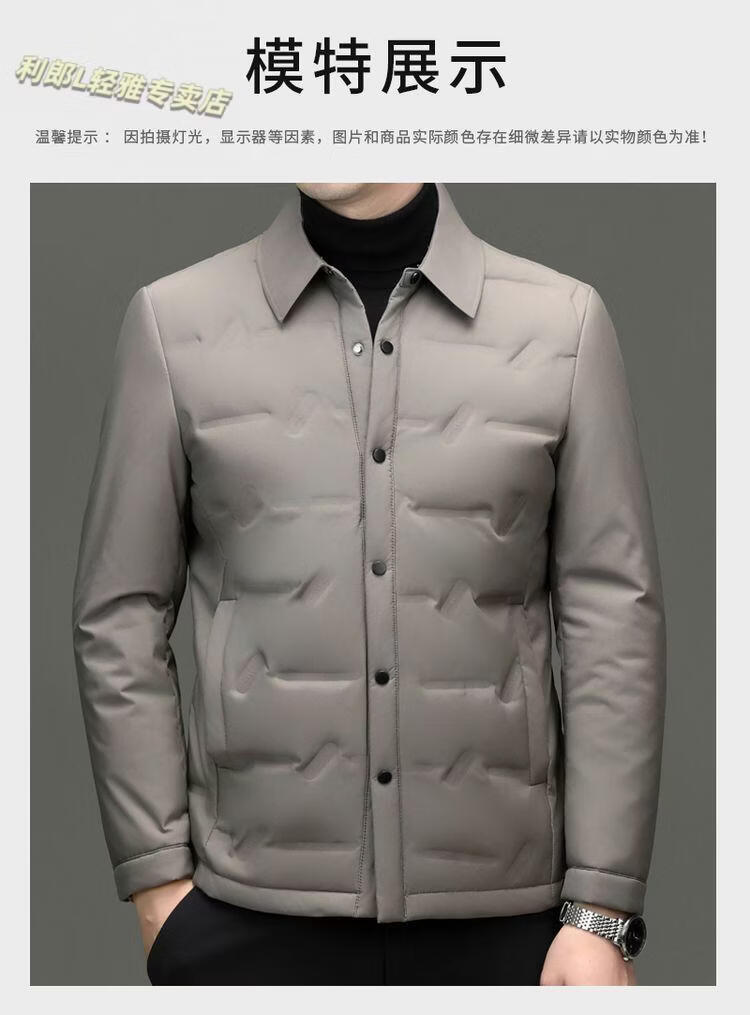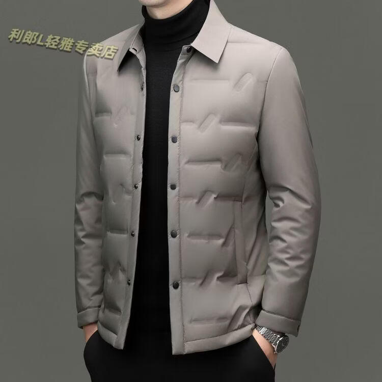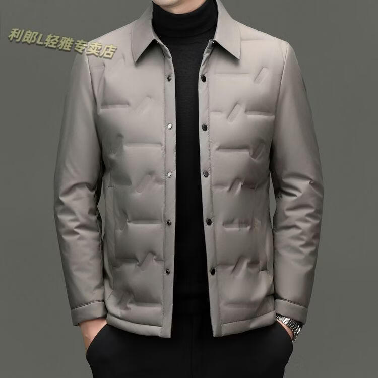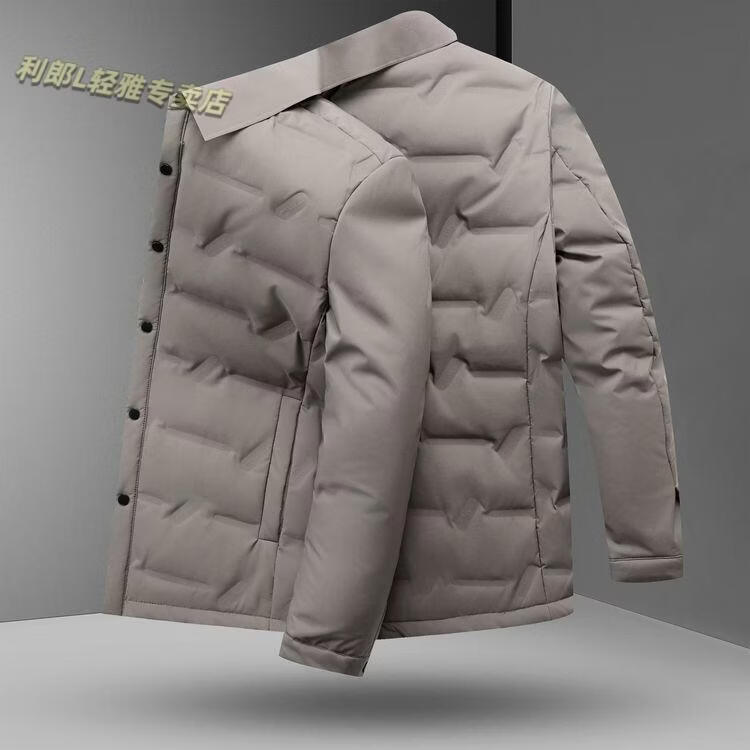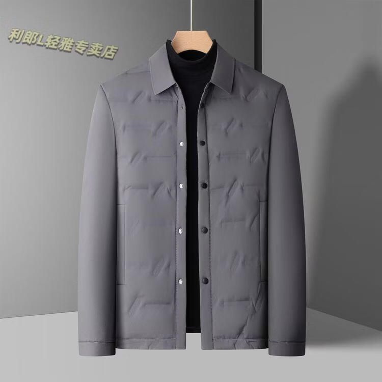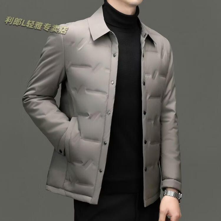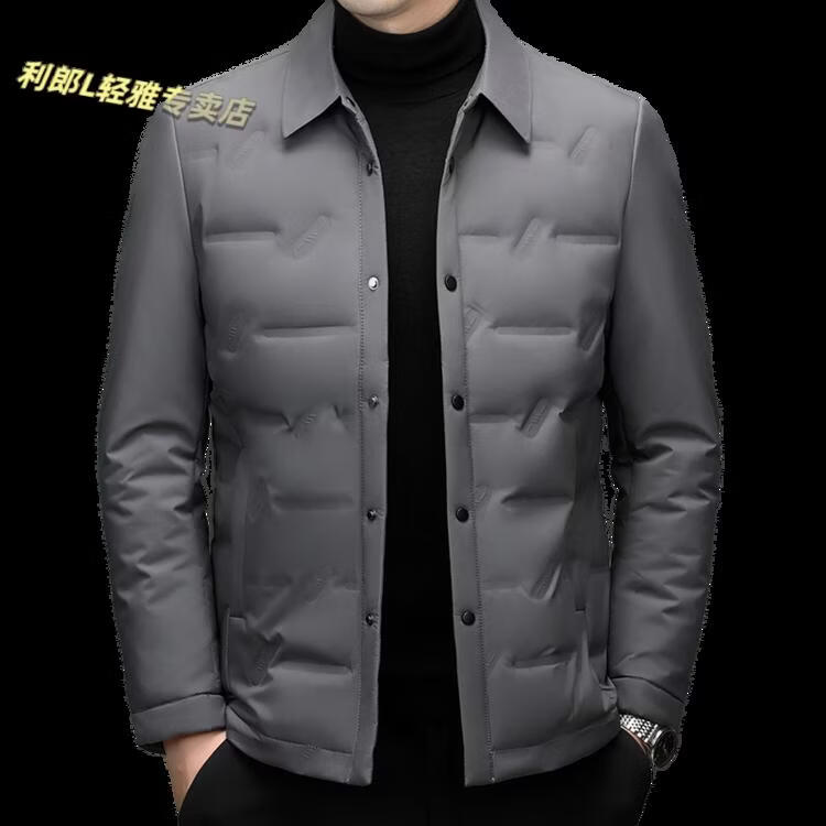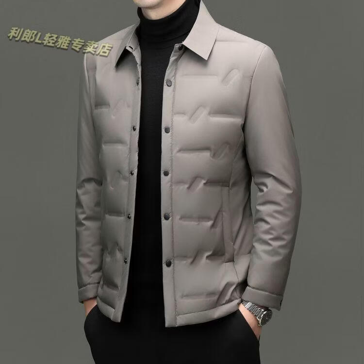利郎(LILANZ)白鸭绒羽绒服男轻薄款秋冬季新款中年爸爸装商务休闲保暖夹克外套 灰色 M 170
