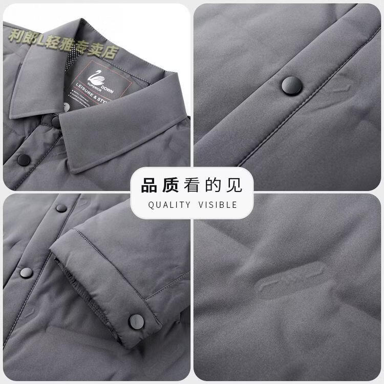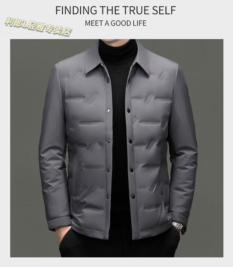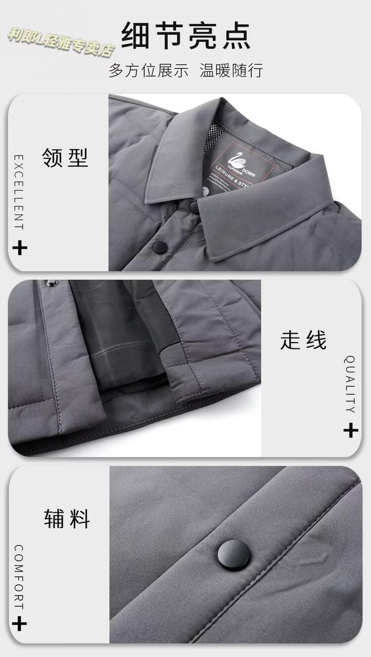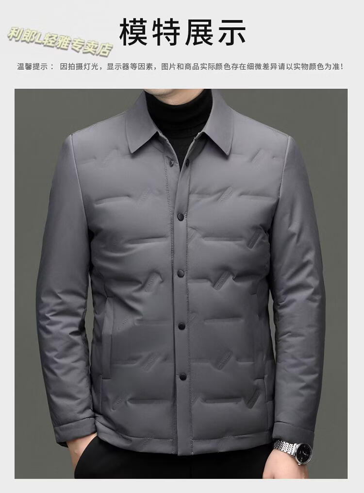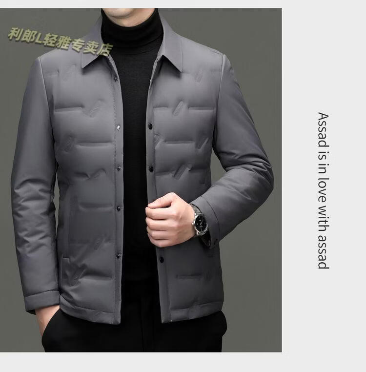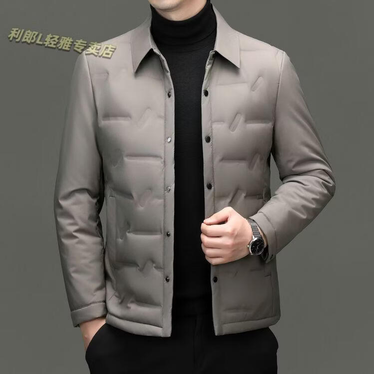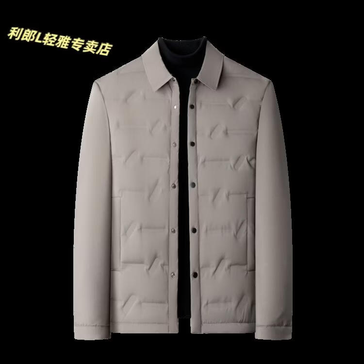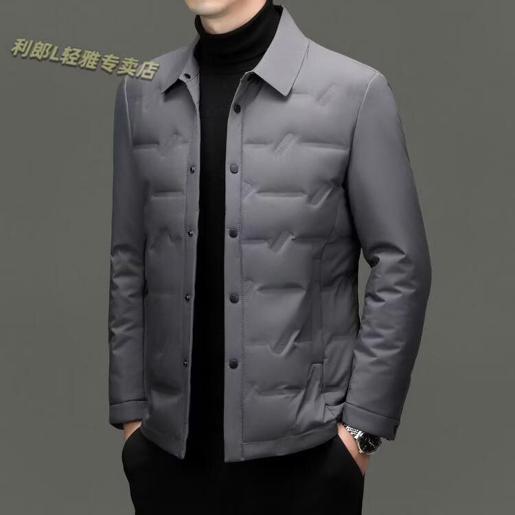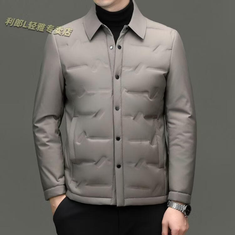 利郎(LILANZ)白鸭绒羽绒服男轻薄款秋冬季新款中年爸爸装商务休闲保暖夹克外套 灰色 M 170