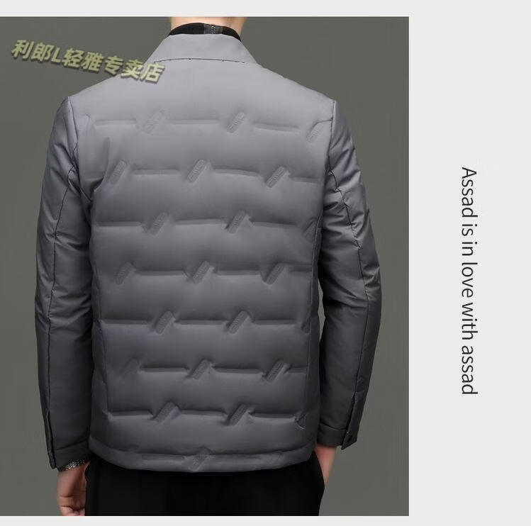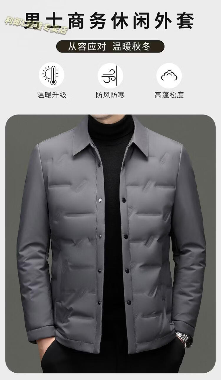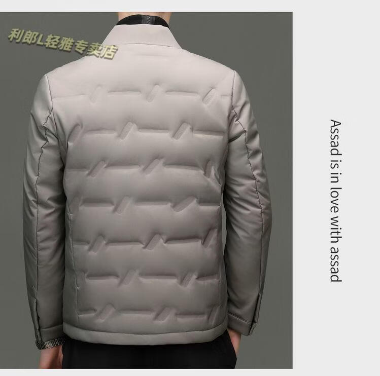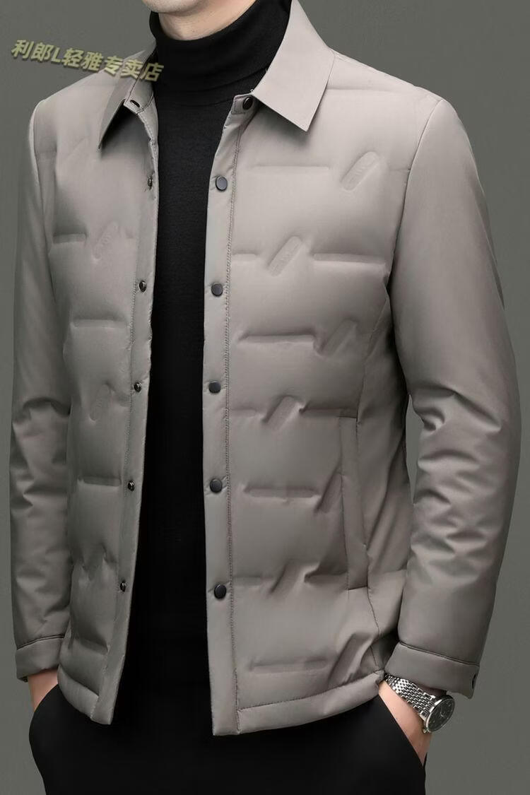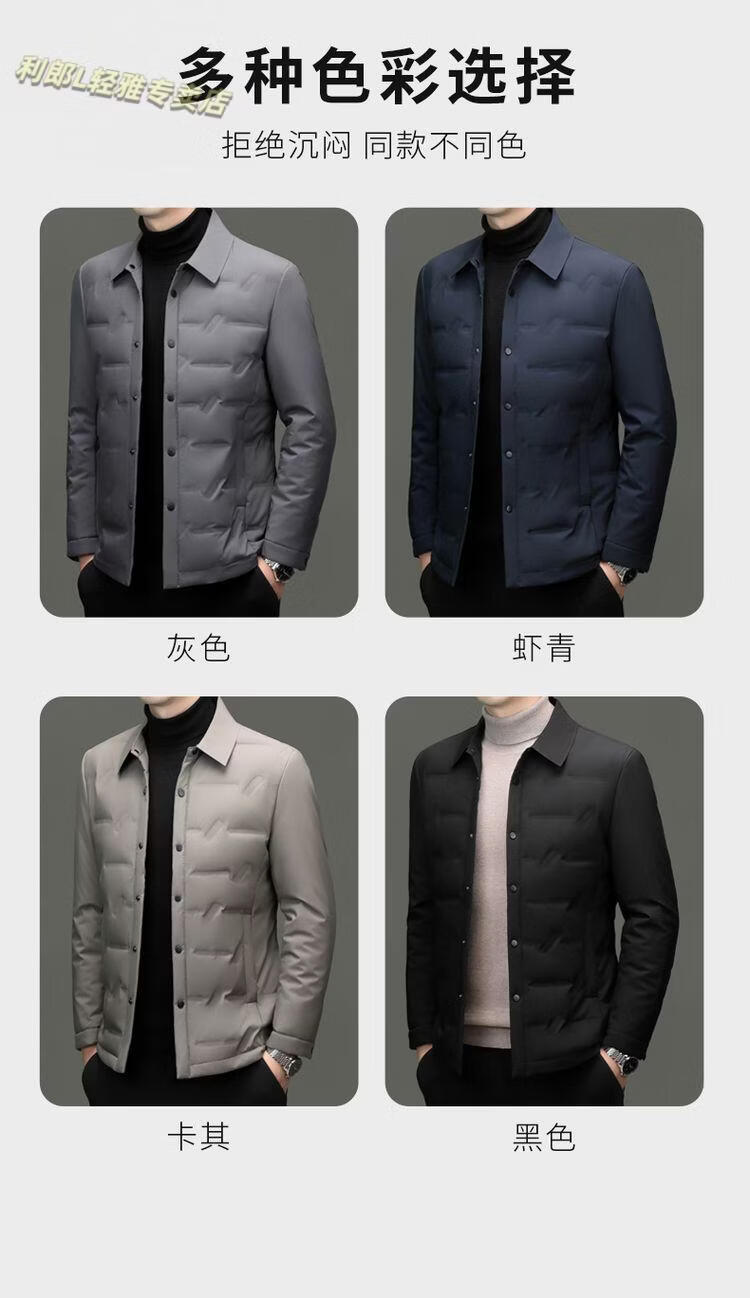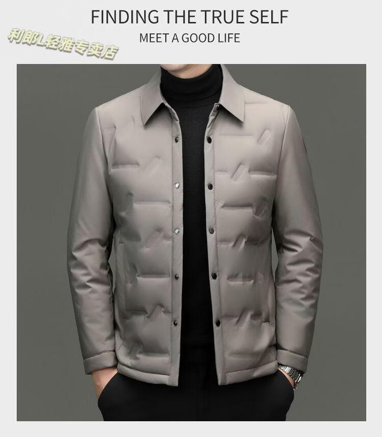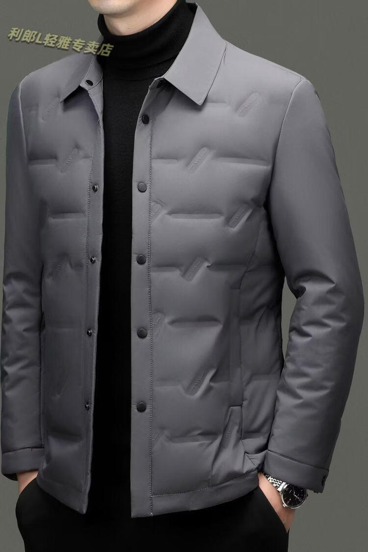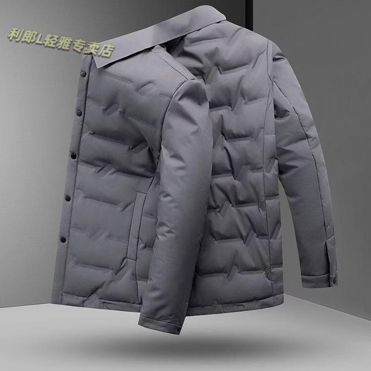 利郎(LILANZ)白鸭绒羽绒服男轻薄款秋冬季新款中年爸爸装商务休闲保暖夹克外套 灰色 M 170