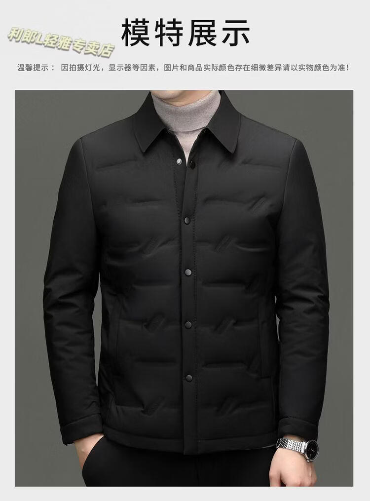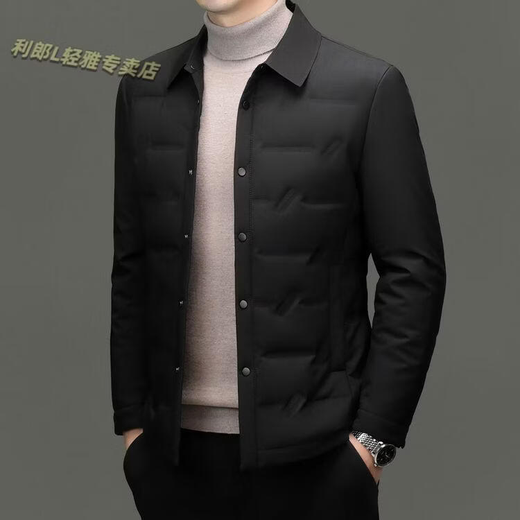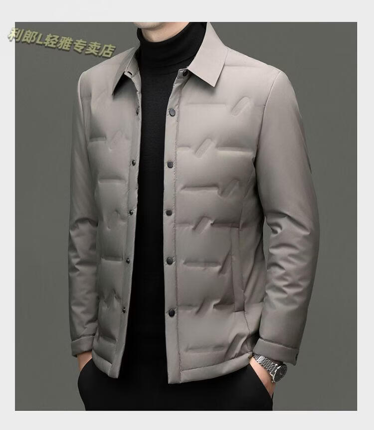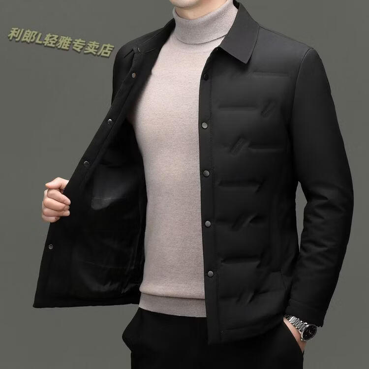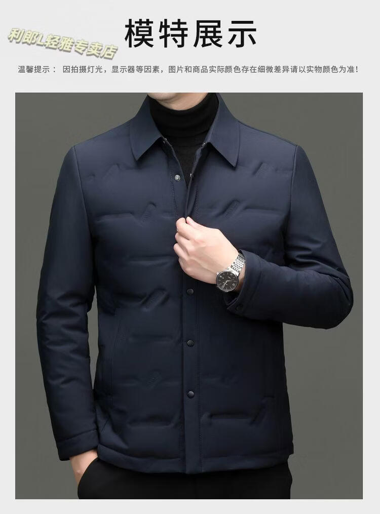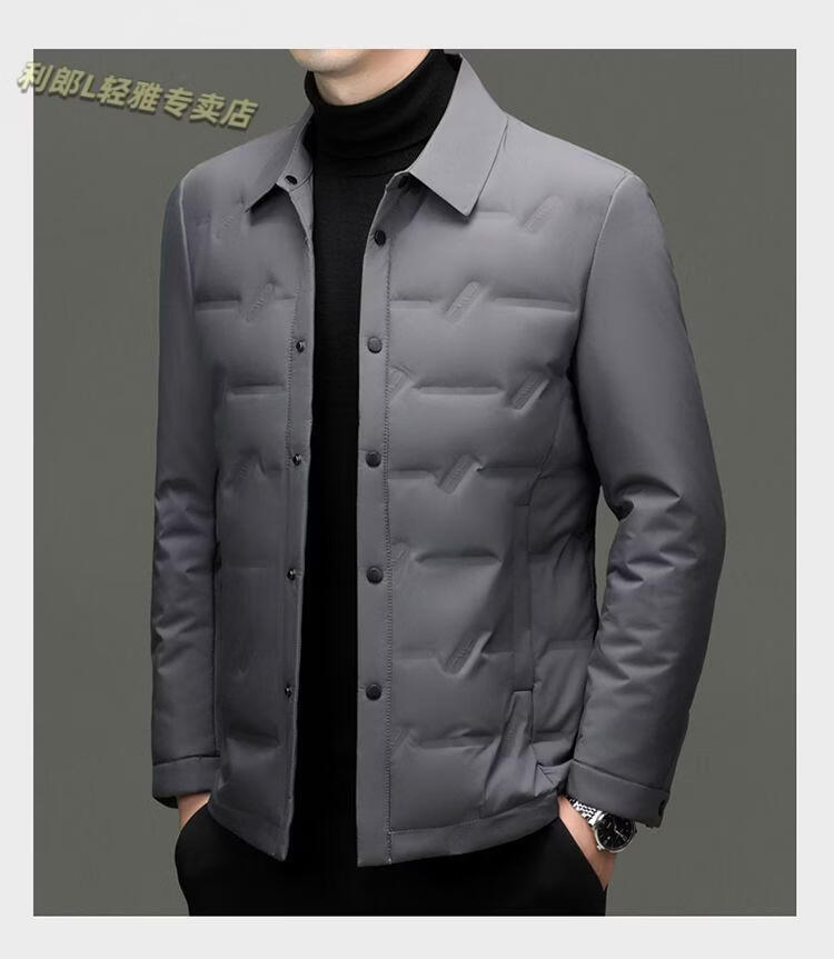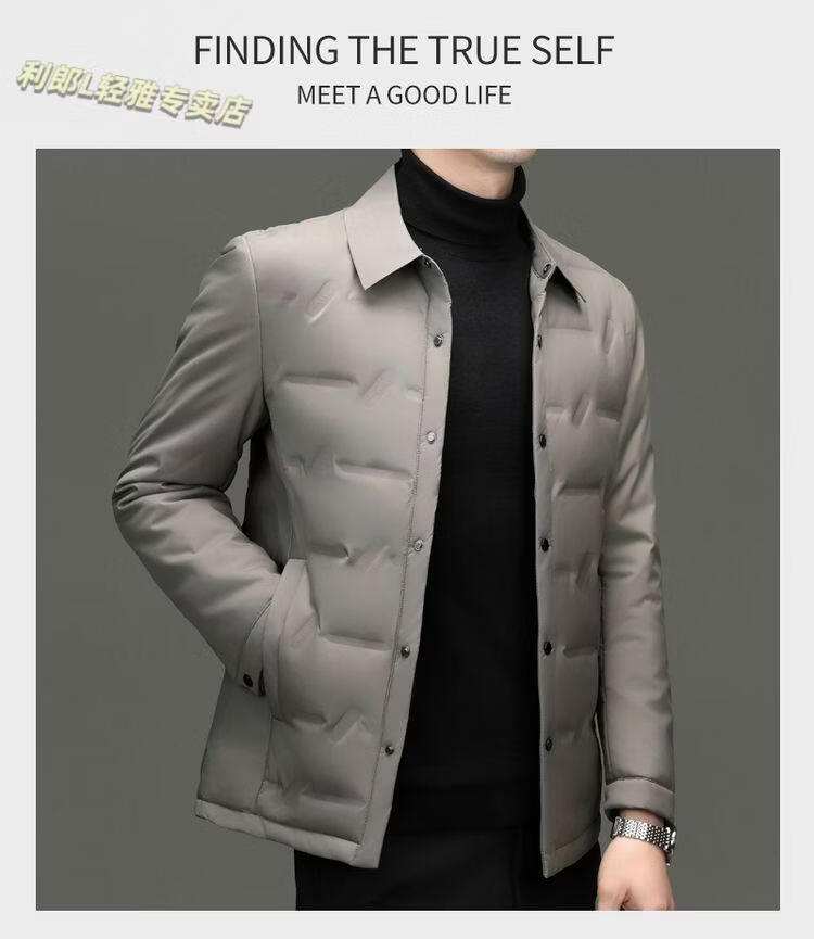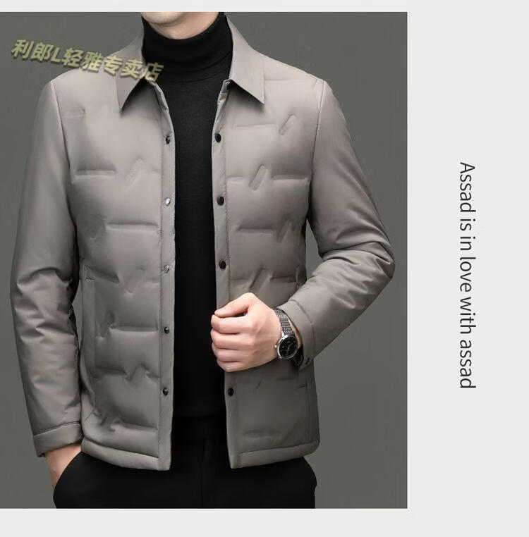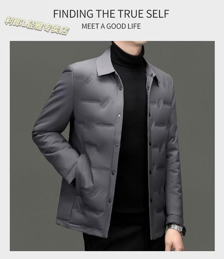 利郎(LILANZ)白鸭绒羽绒服男轻薄款秋冬季新款中年爸爸装商务休闲保暖夹克外套 灰色 M 170