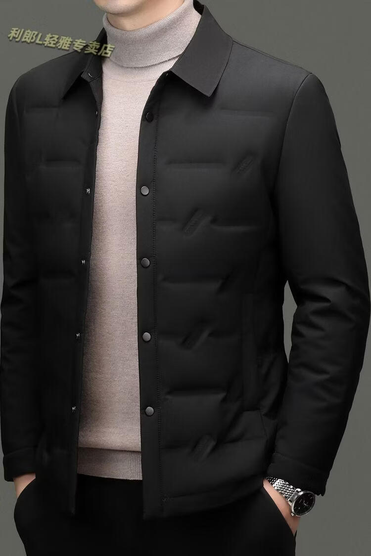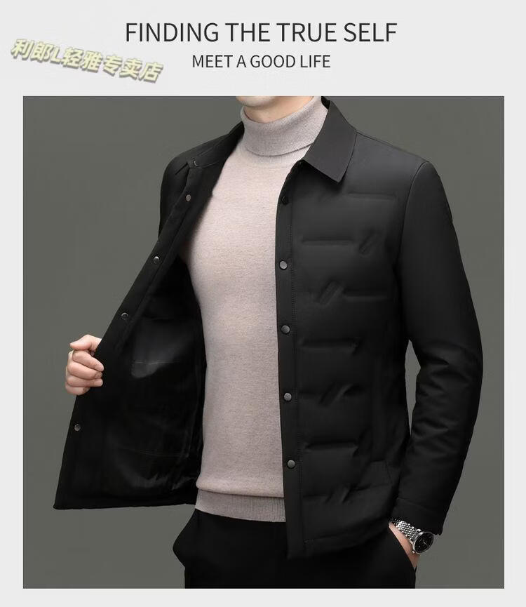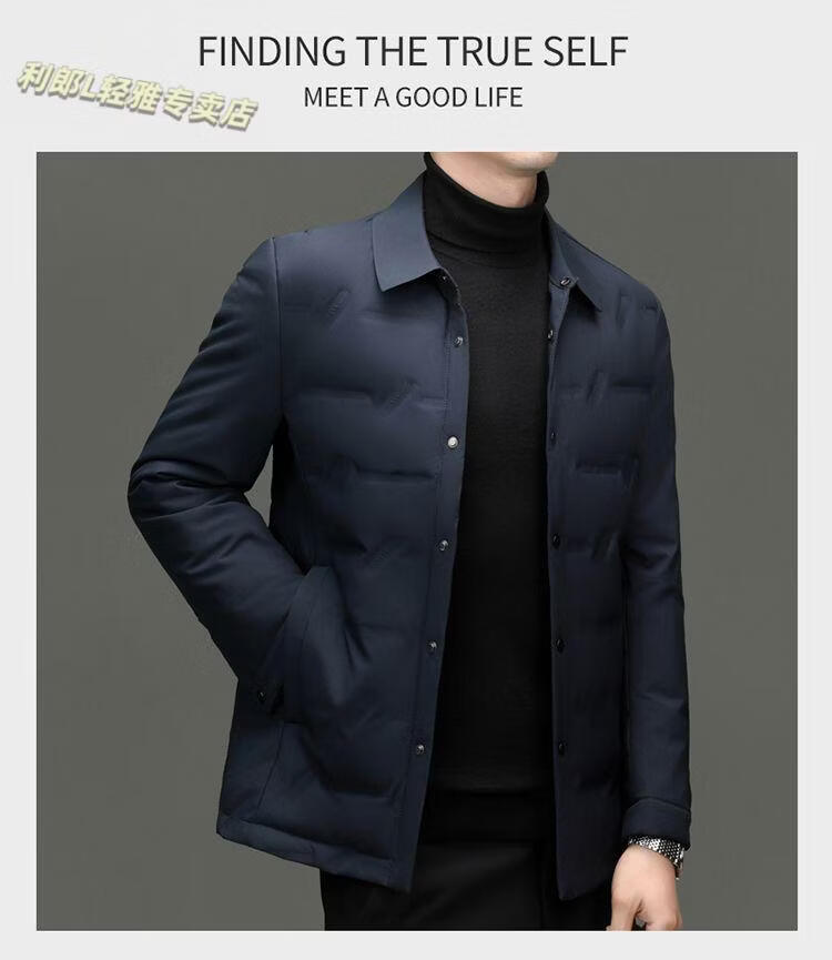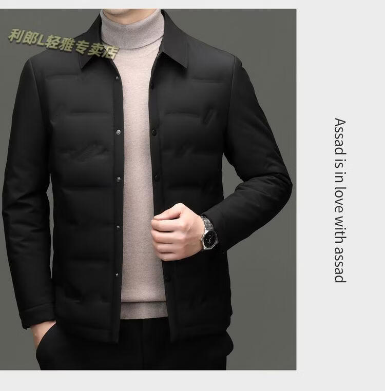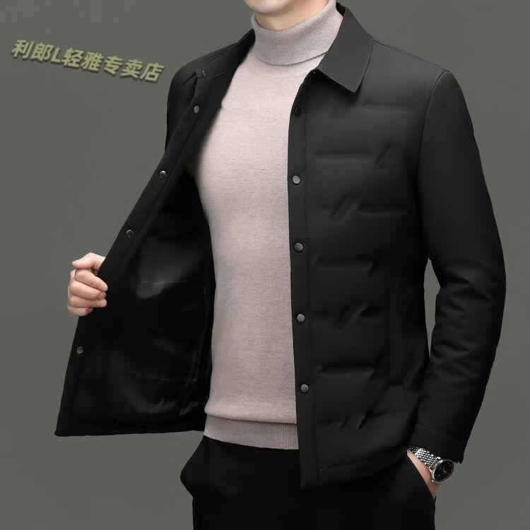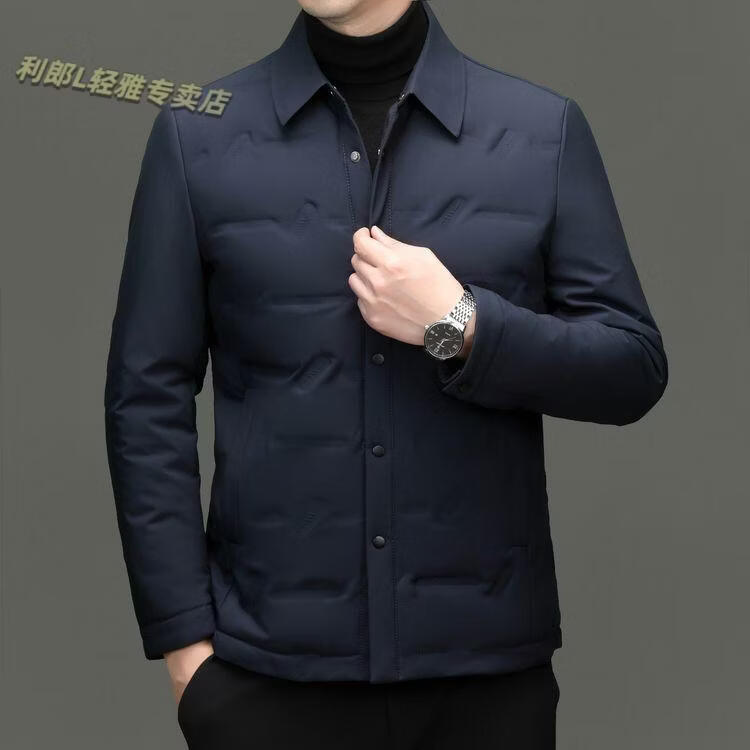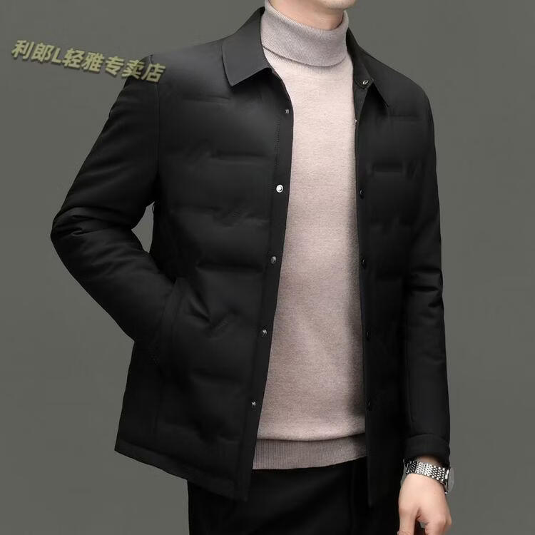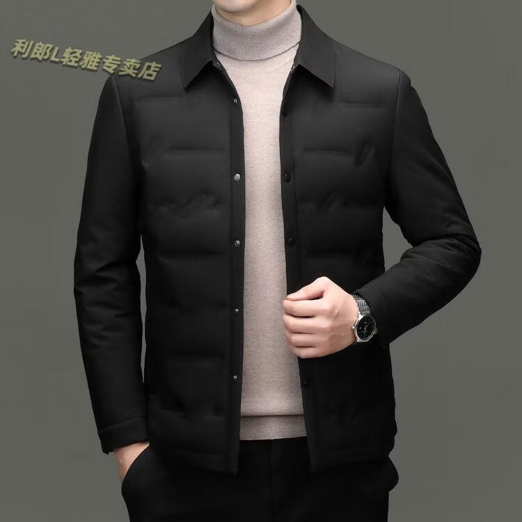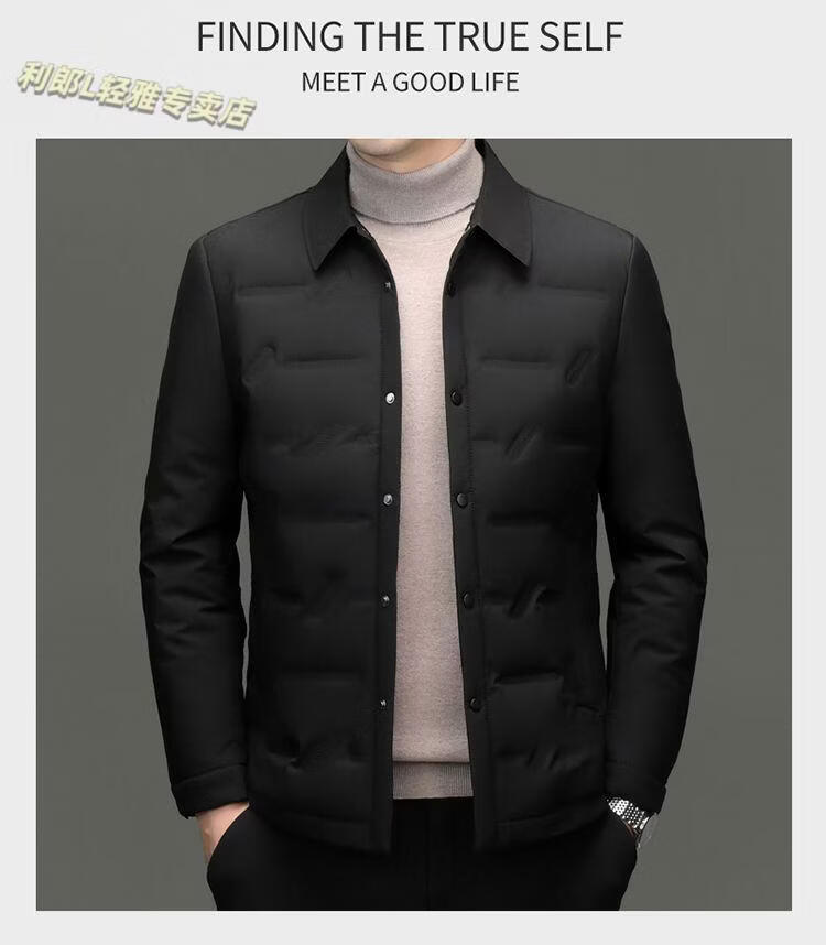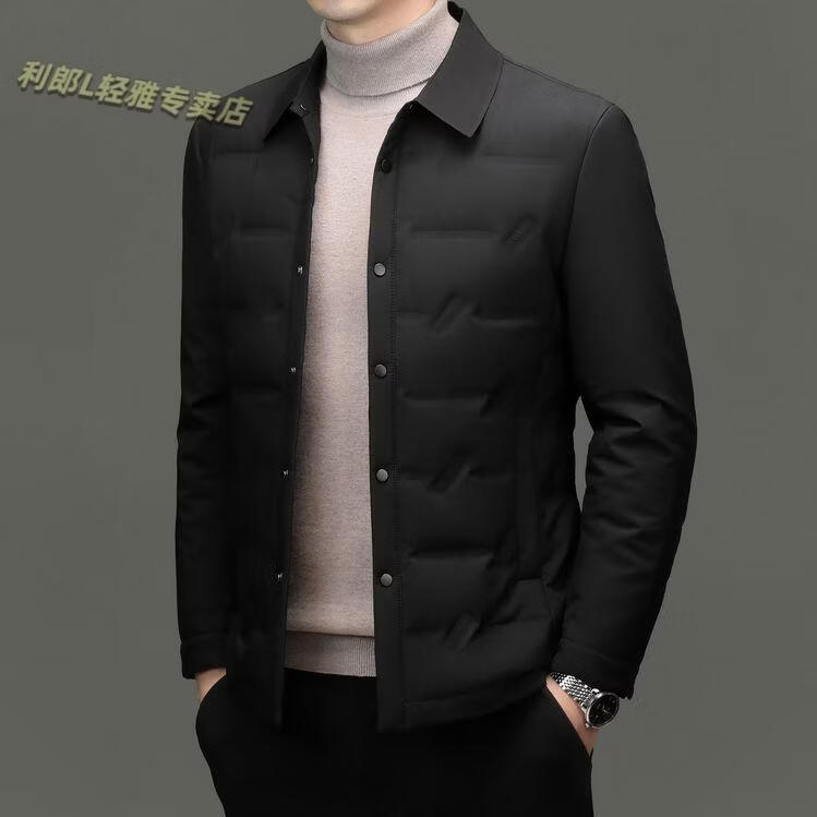 利郎(LILANZ)白鸭绒羽绒服男轻薄款秋冬季新款中年爸爸装商务休闲保暖夹克外套 灰色 M 170