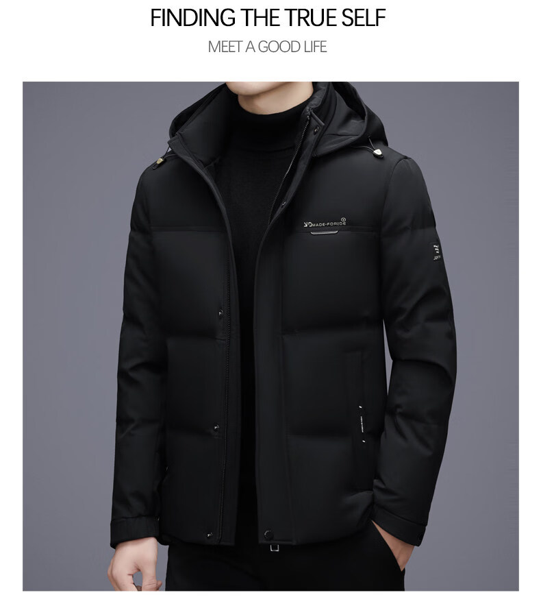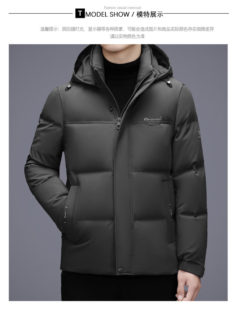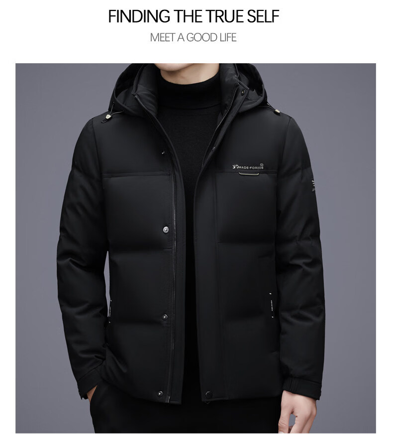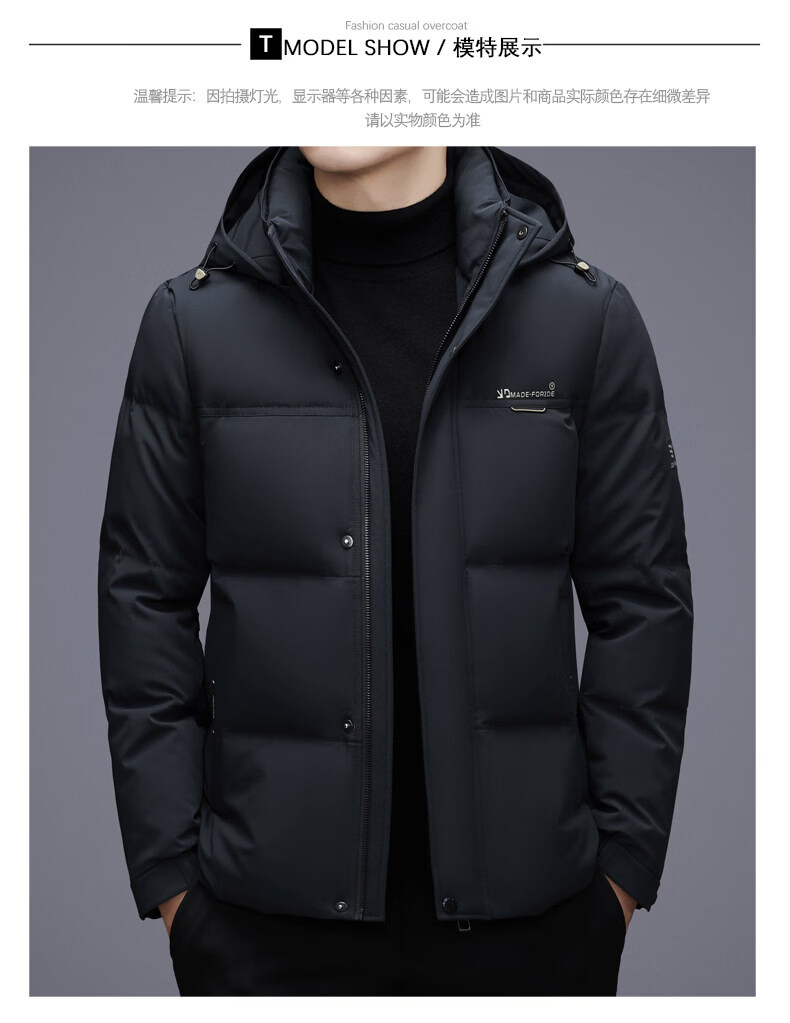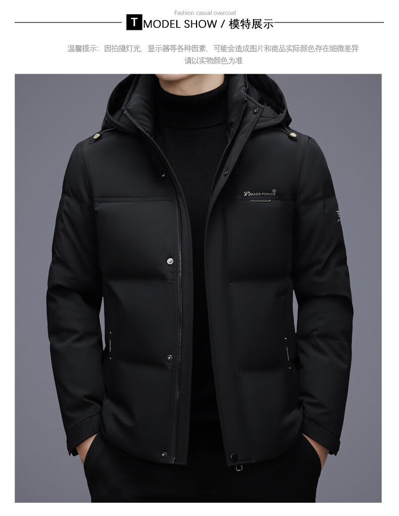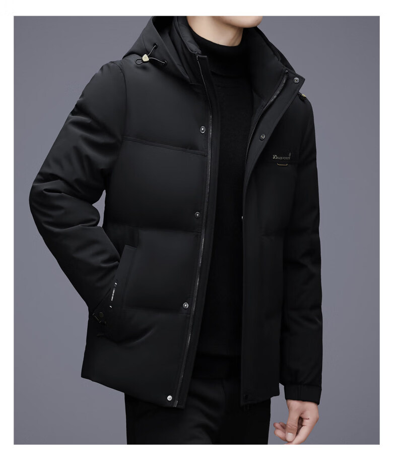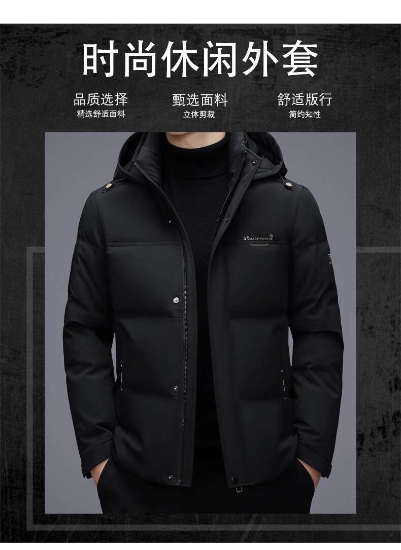 JEEP SPIRIT2025 winter hooded short down jacket for middle-aged men, casual, velvet, thickened, warm, winter, cold-proof jacket, versatile, black 2XL 185