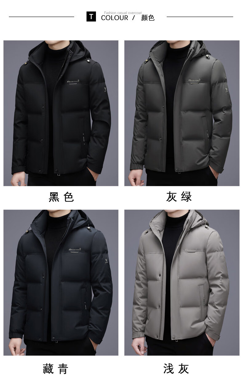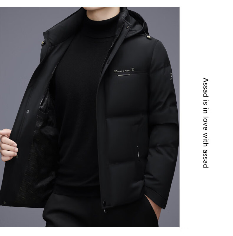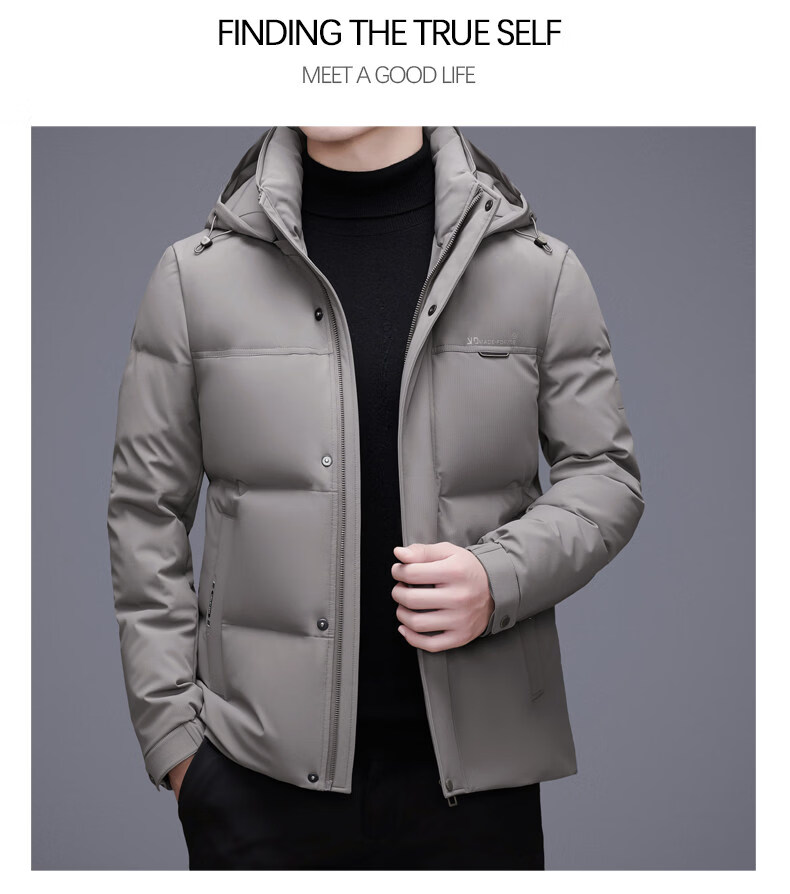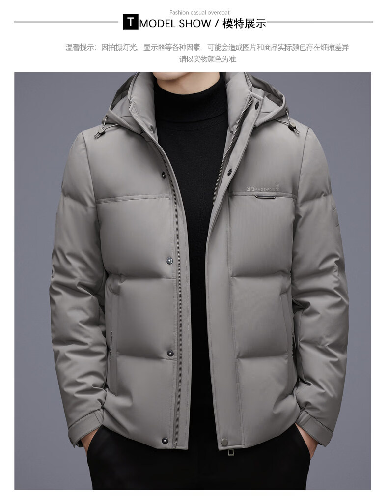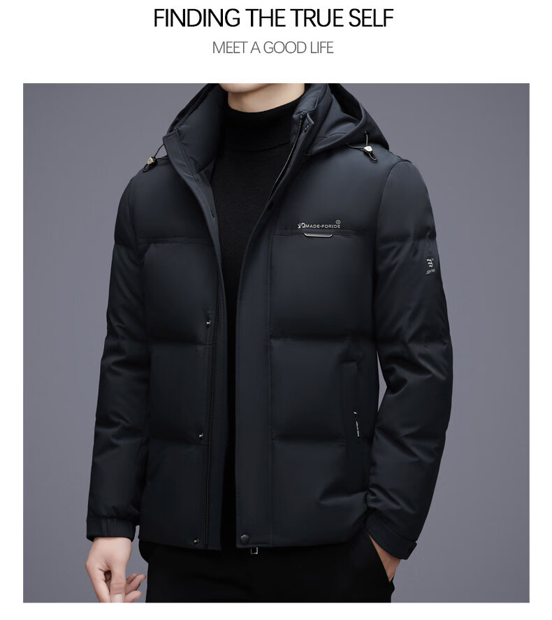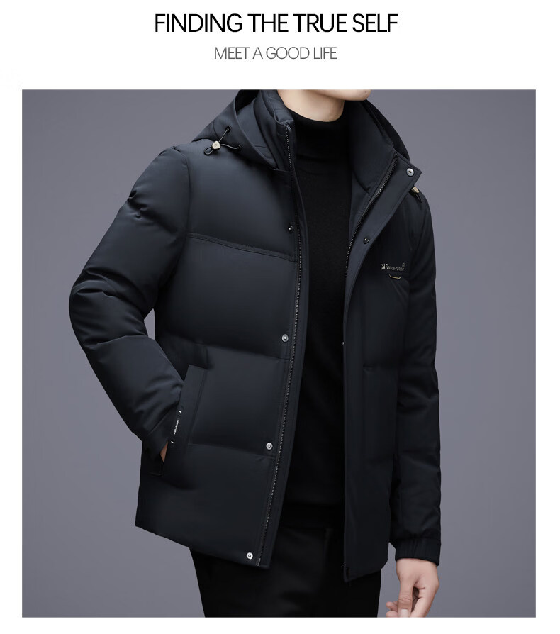 JEEP SPIRIT2025 winter hooded short down jacket for middle-aged men, casual, velvet, thickened, warm, winter, cold-proof jacket, versatile, black 2XL 185
