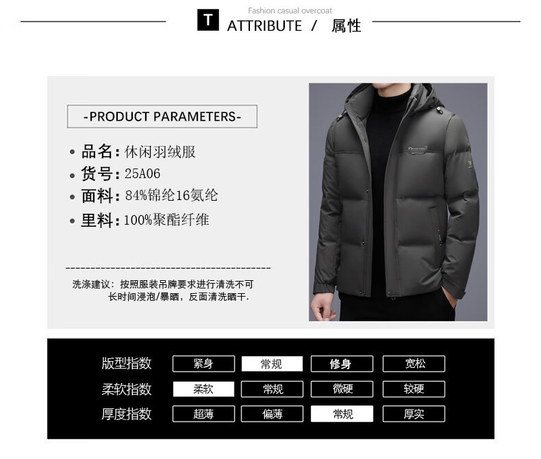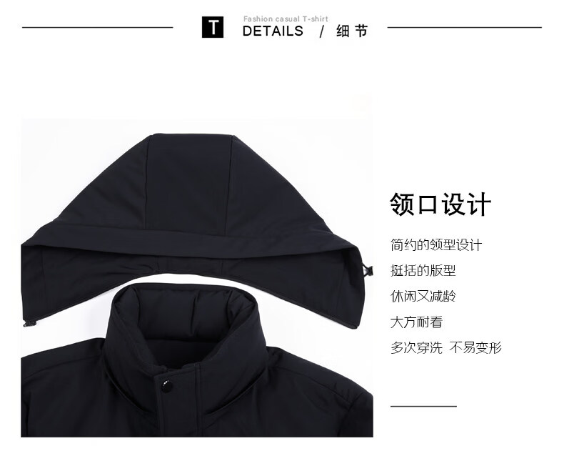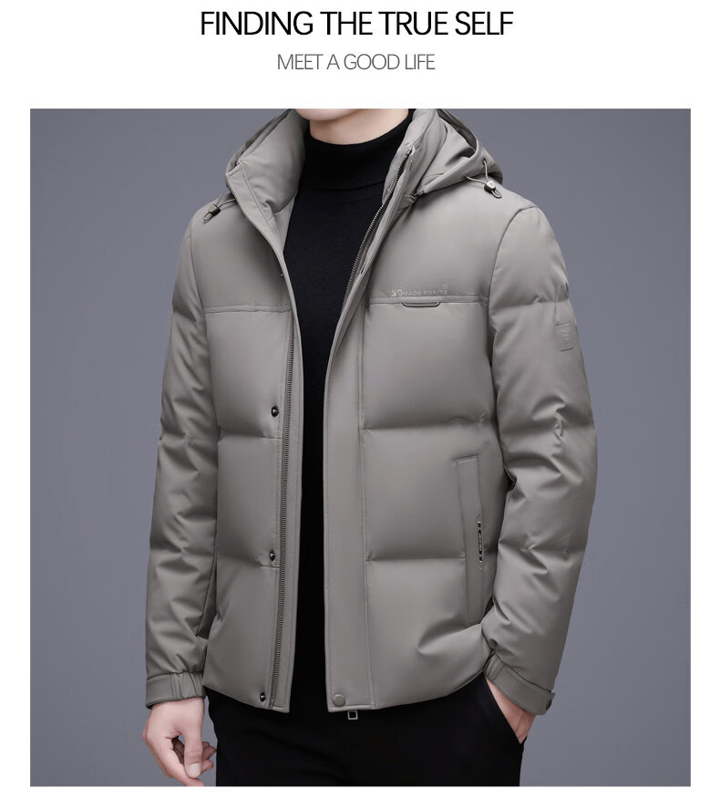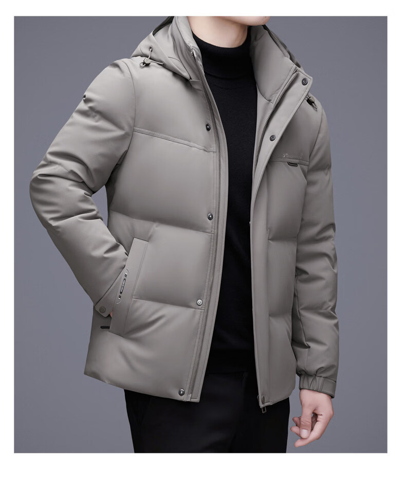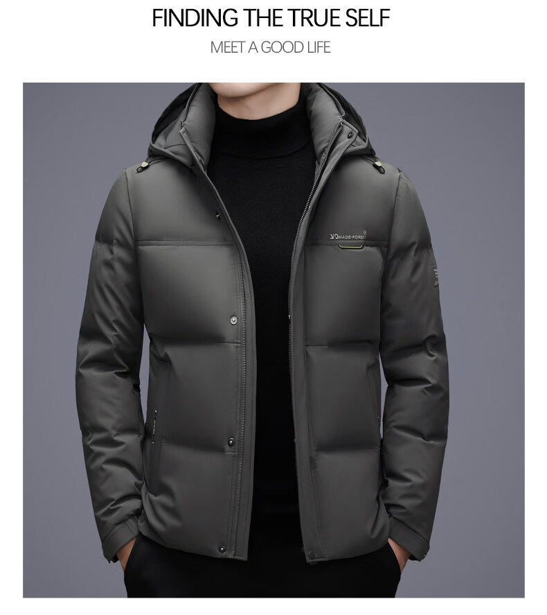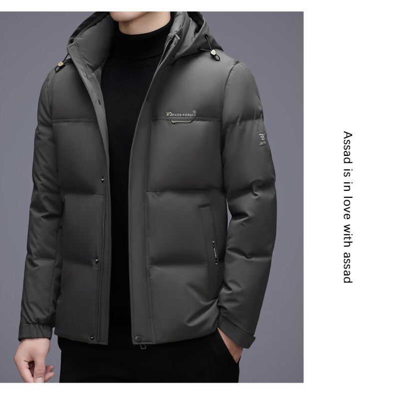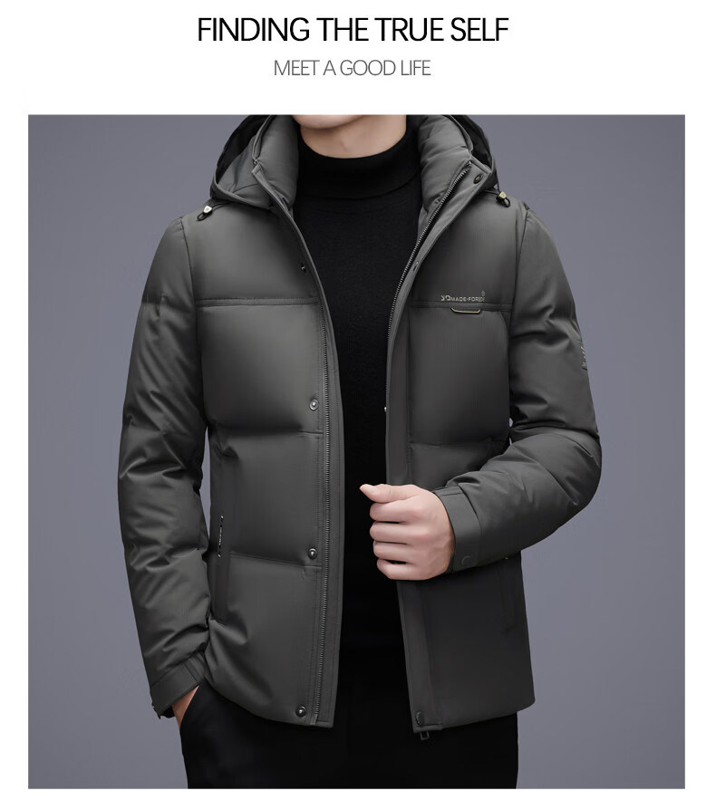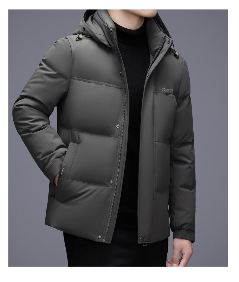 JEEP SPIRIT2025 winter hooded short down jacket for middle-aged men, casual, velvet, thickened, warm, winter, cold-proof jacket, versatile, black 2XL 185