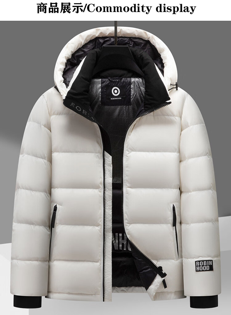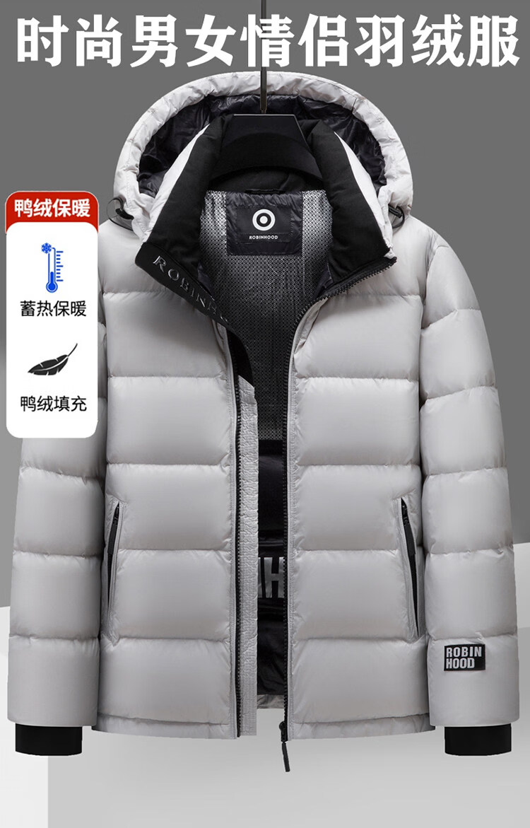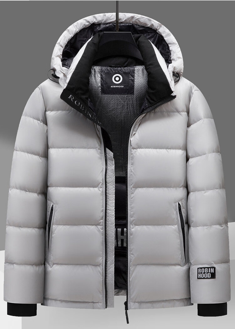 JEEP SPIRIT winter fashion hooded short down jacket for men and young people, trendy and versatile thickened cold-proof shiny down jacket, gray 3XL
