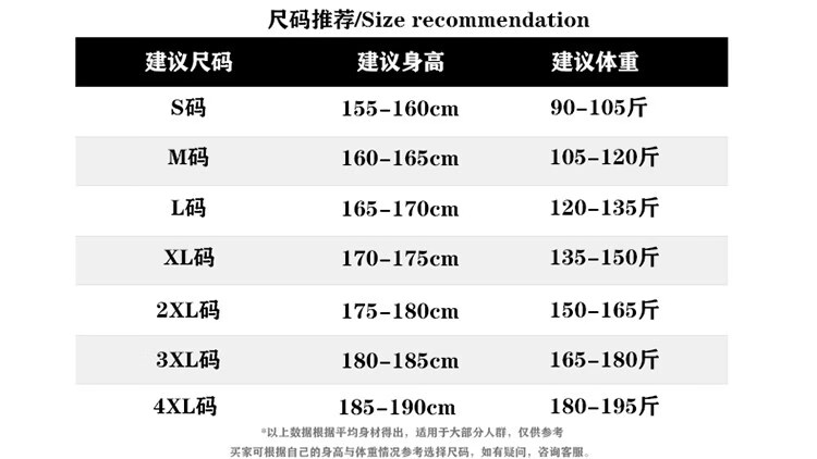 China (cm) 165 / 88-90 170 / 96-98 175 / 108-110 180 / 118-122 185 / 126-130