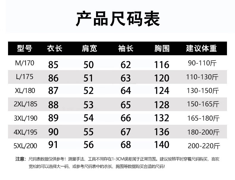 China (cm) 165 / 88-90 170 / 96-98 175 / 108-110 180 / 118-122 185 / 126-130