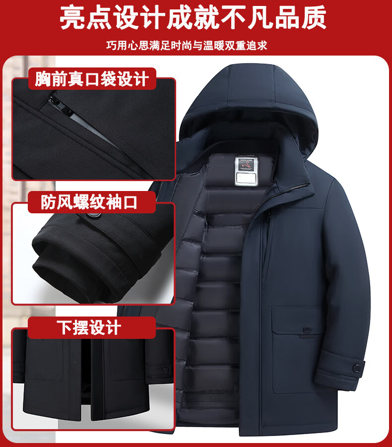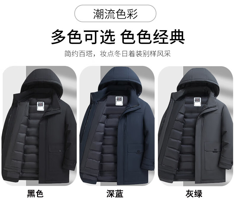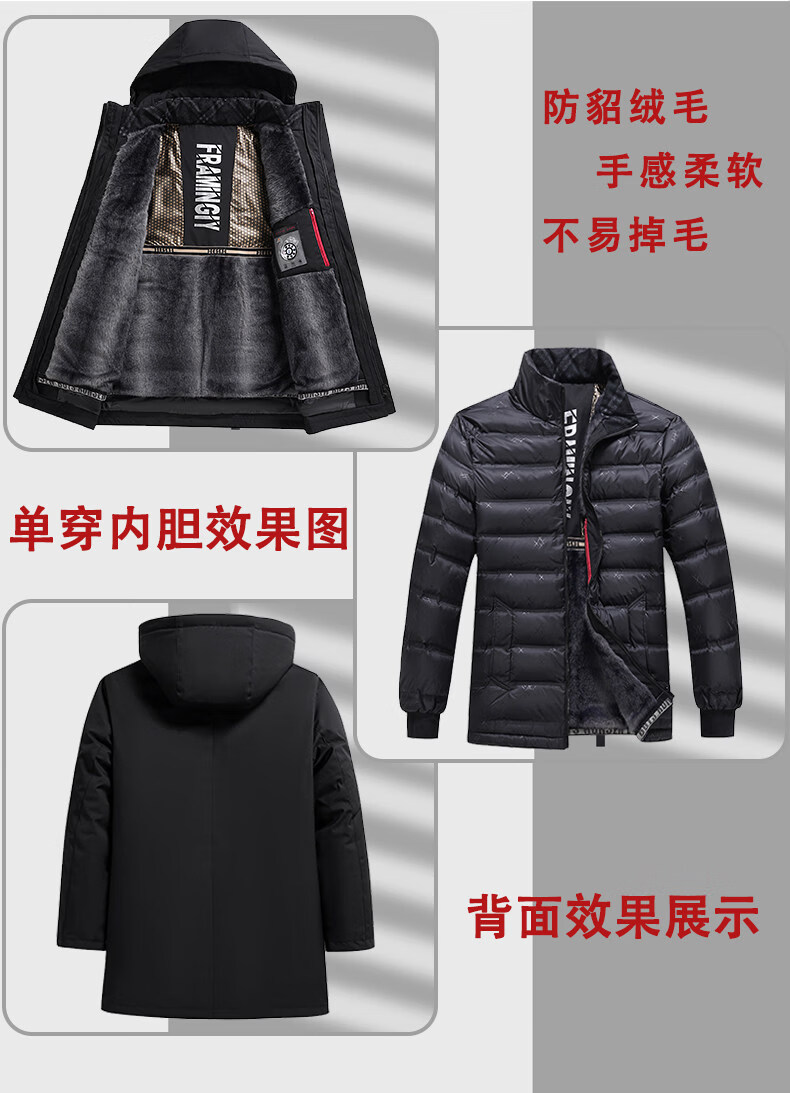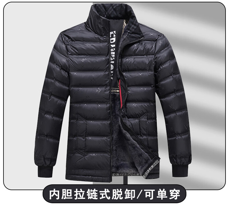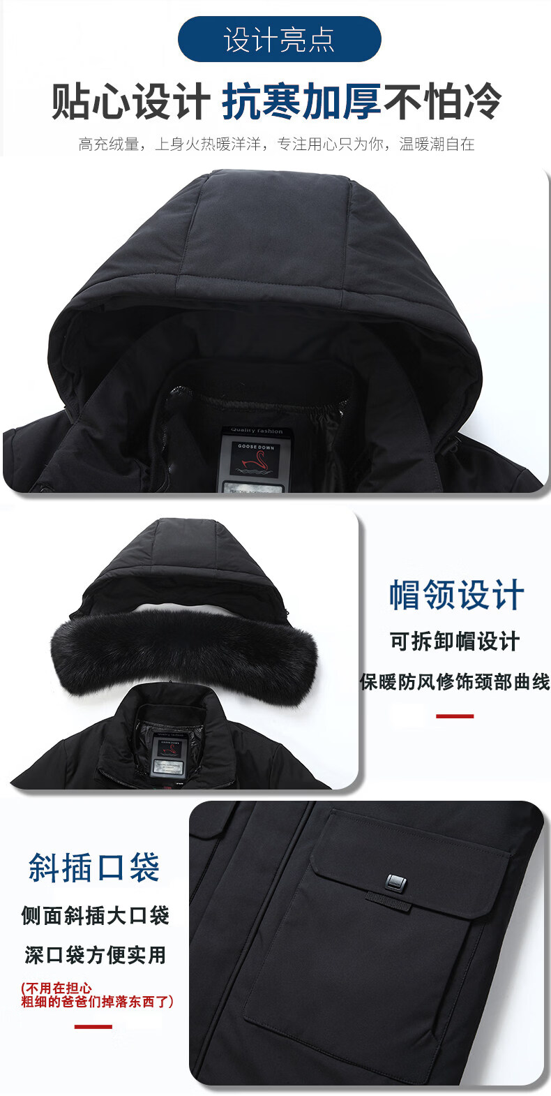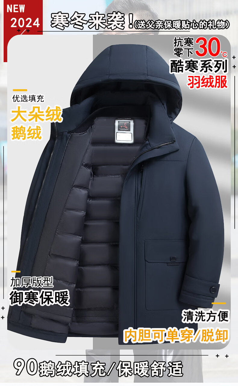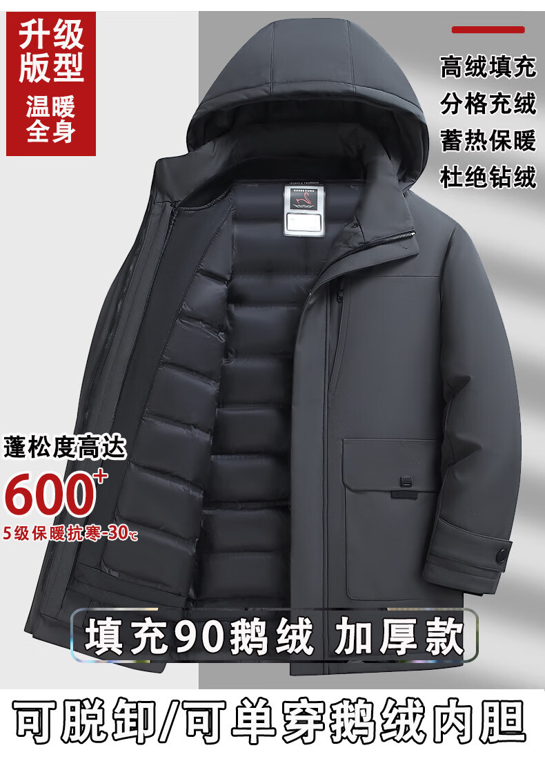 罗蒙(ROMON)中老年高端鹅绒羽绒服男士加厚加绒内胆可单穿保暖爸爸冬装 经典黑【内胆可单穿】鹅绒服 M 170