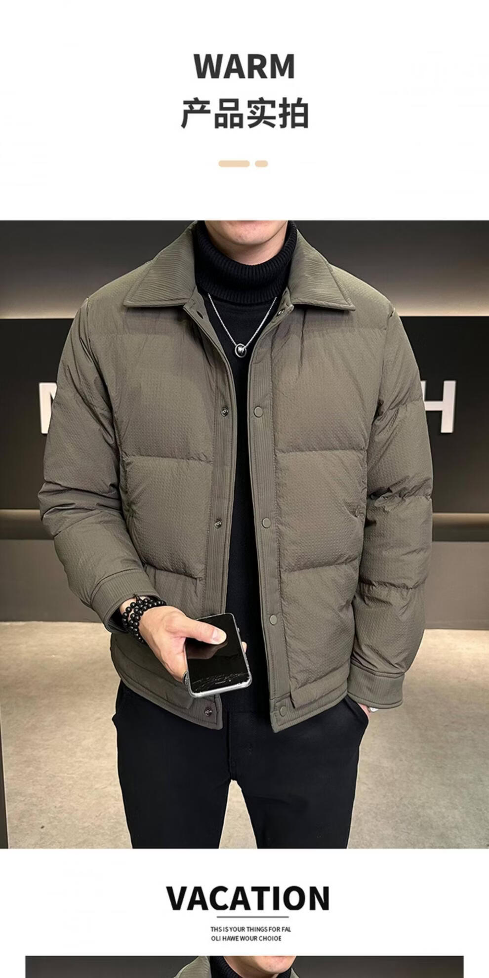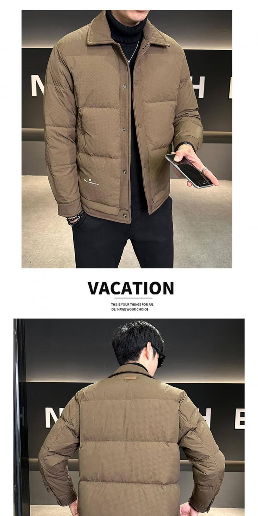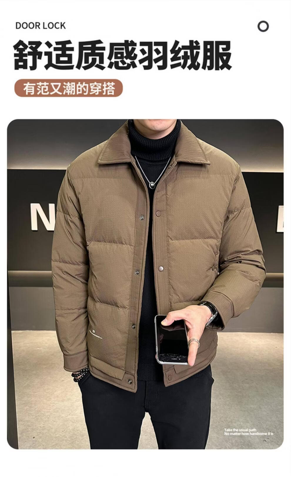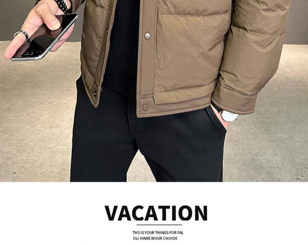 ROMON men's down jacket autumn and winter 2025 new high-end casual white duck down jacket windproof warm top 9898 coffee color 4XL