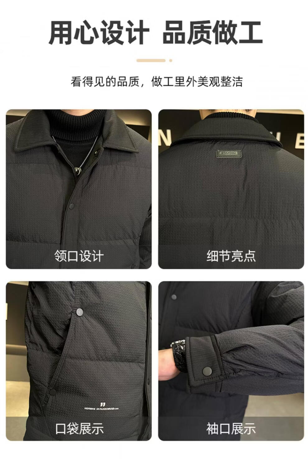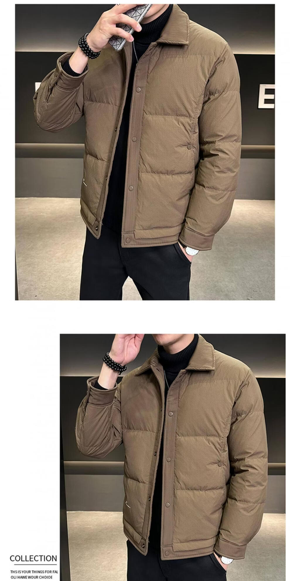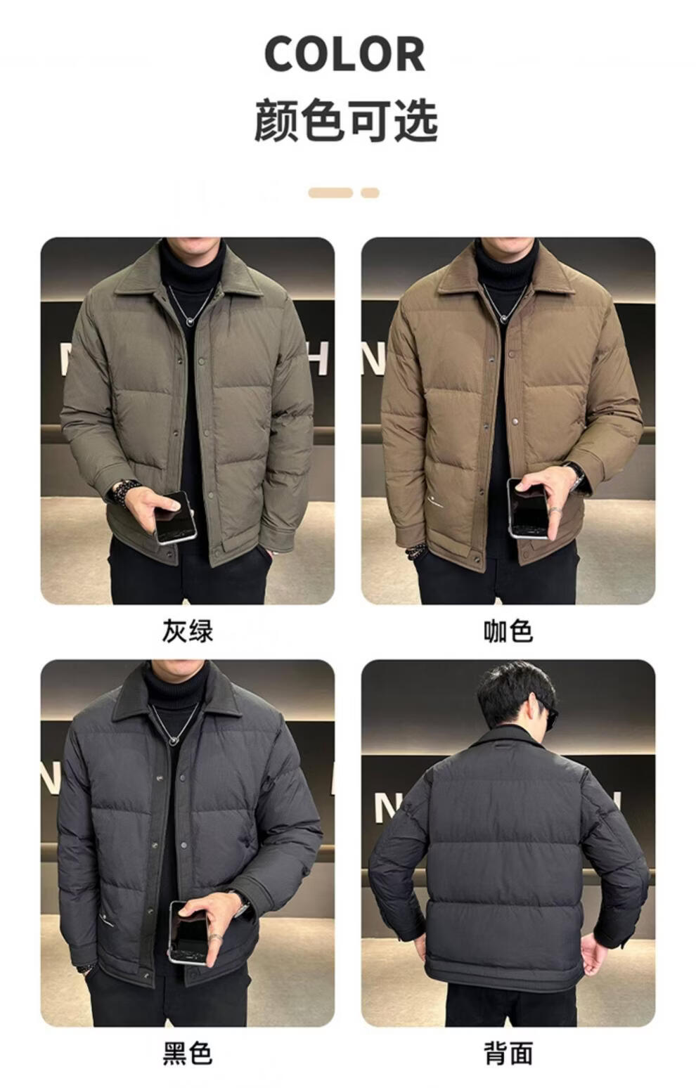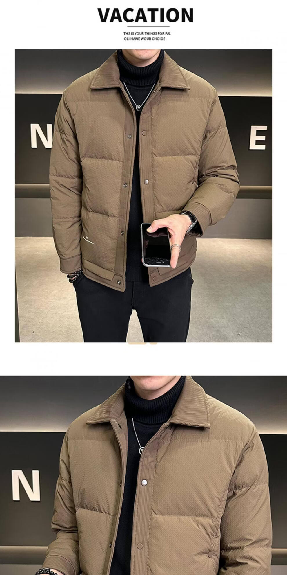ROMON men's down jacket autumn and winter 2025 new high-end casual white duck down jacket windproof warm top 9898 coffee color 4XL