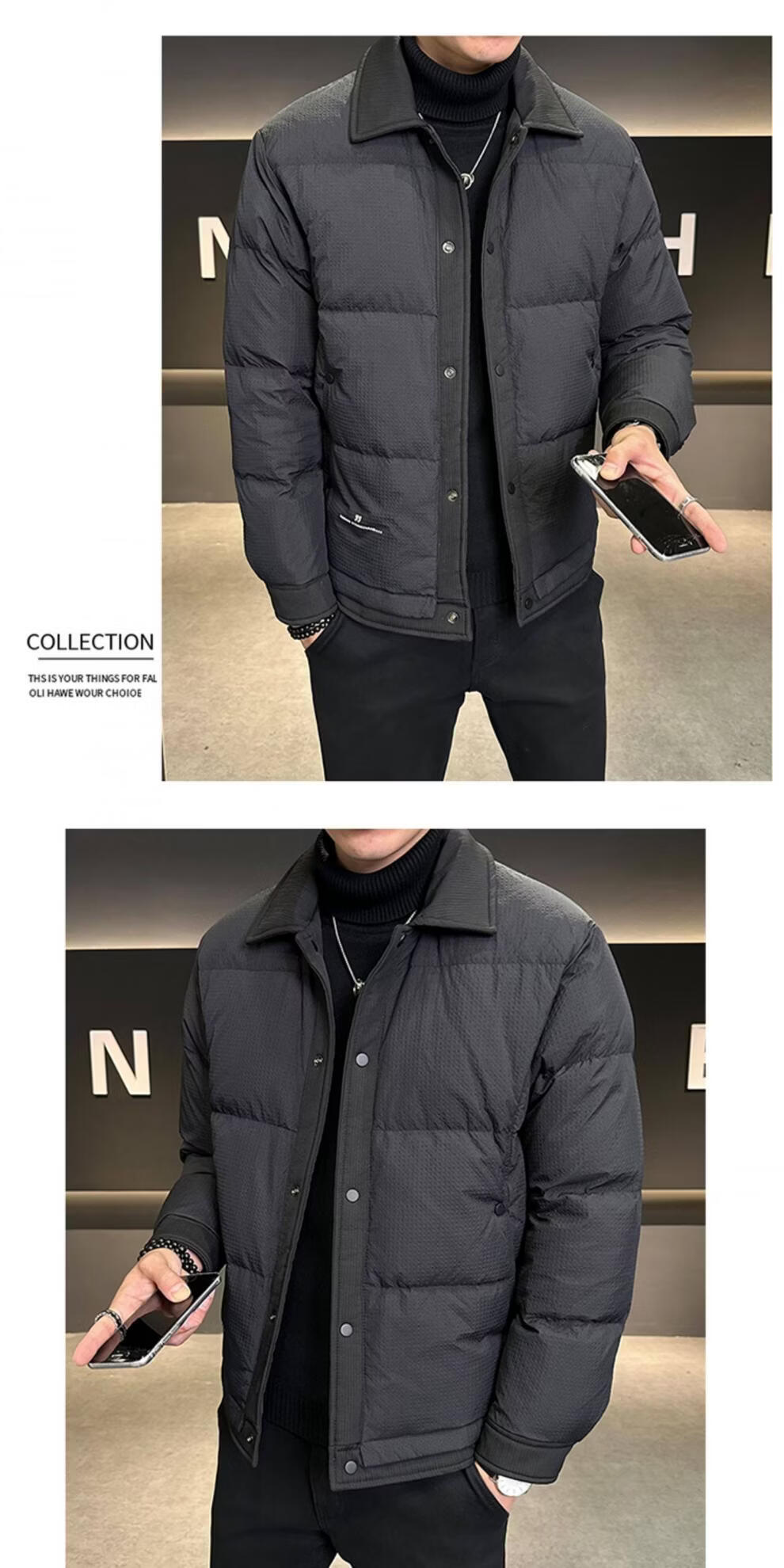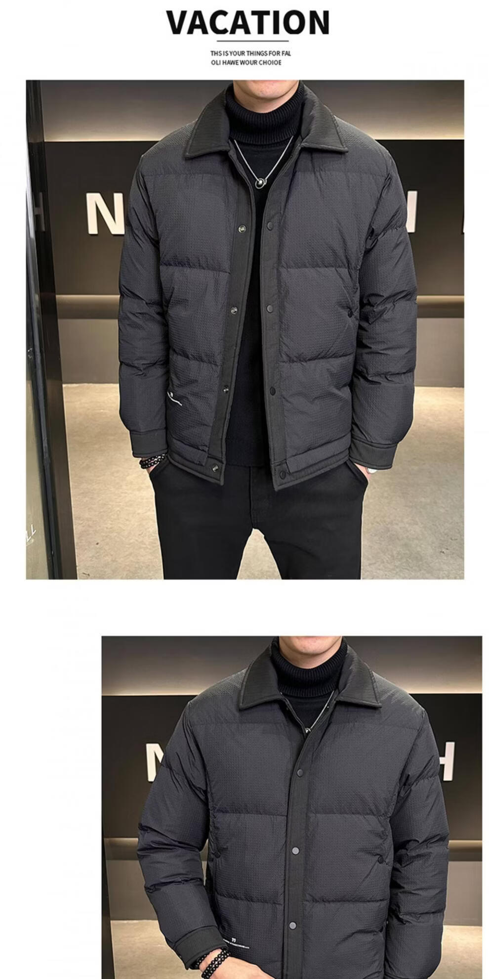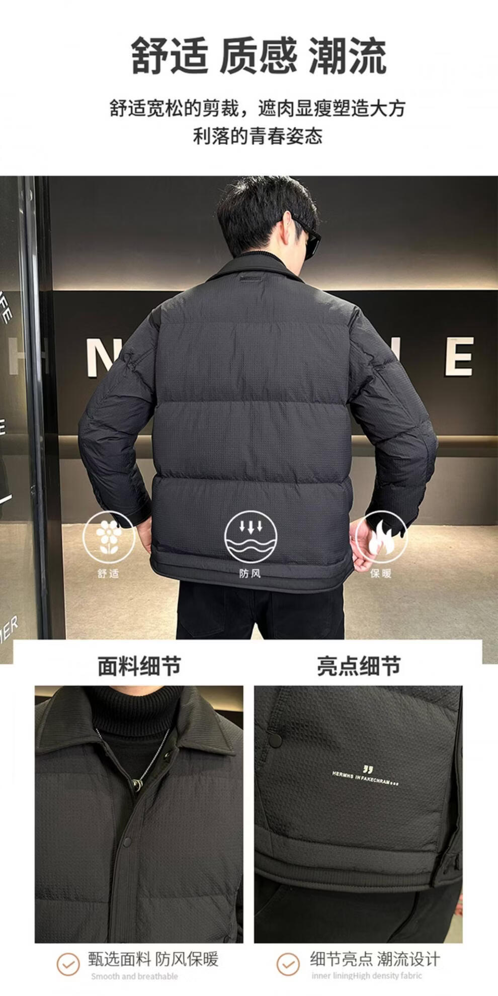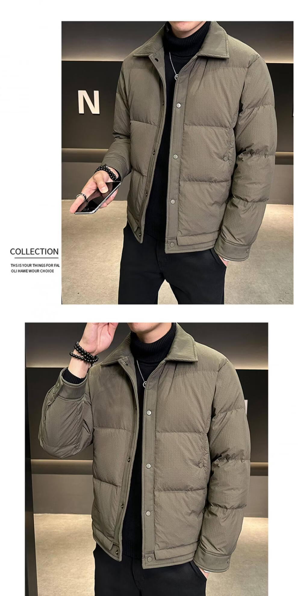 ROMON men's down jacket autumn and winter 2025 new high-end casual white duck down jacket windproof warm top 9898 coffee color 4XL