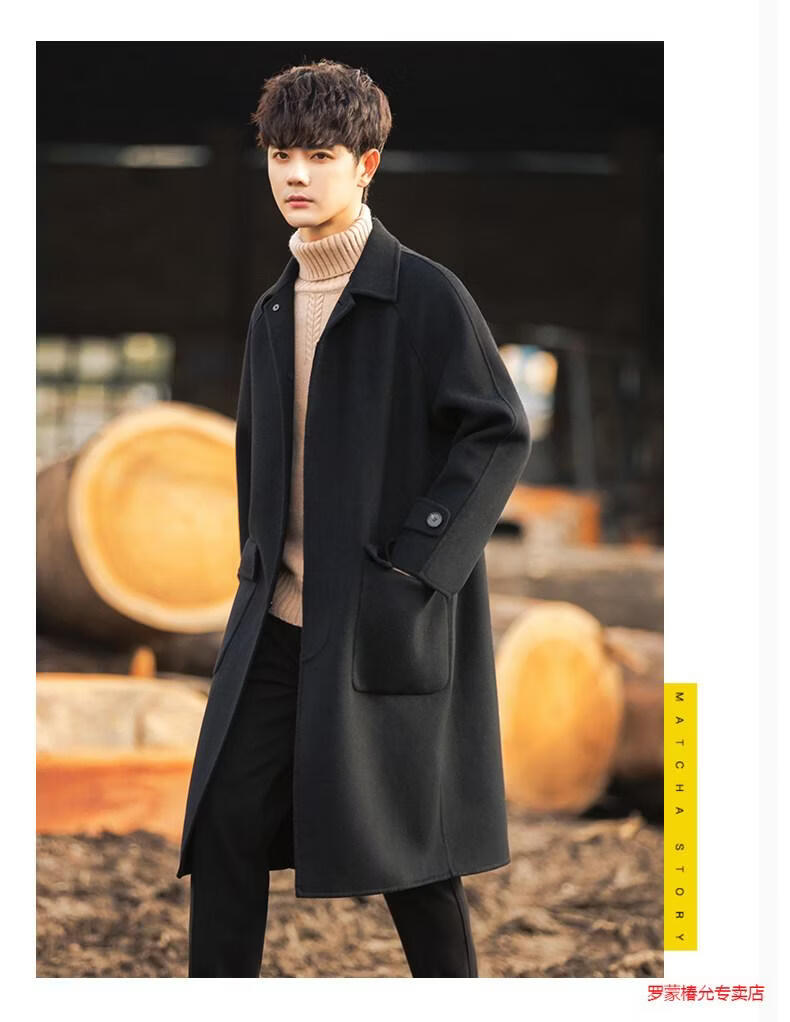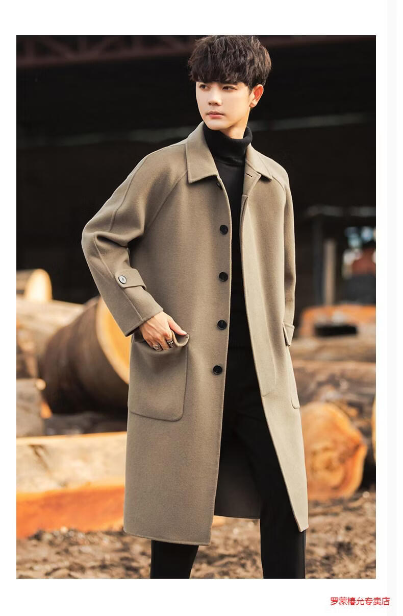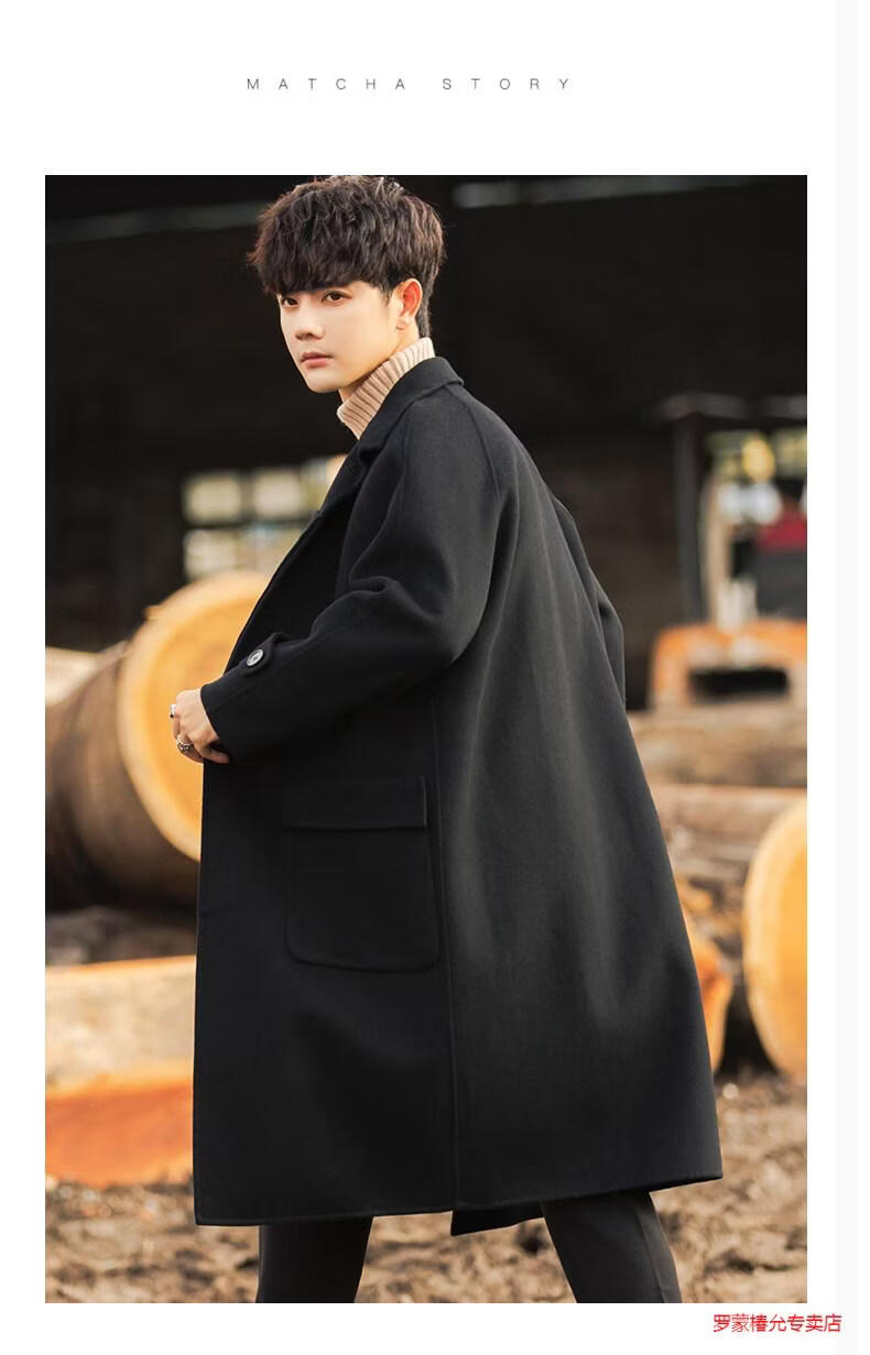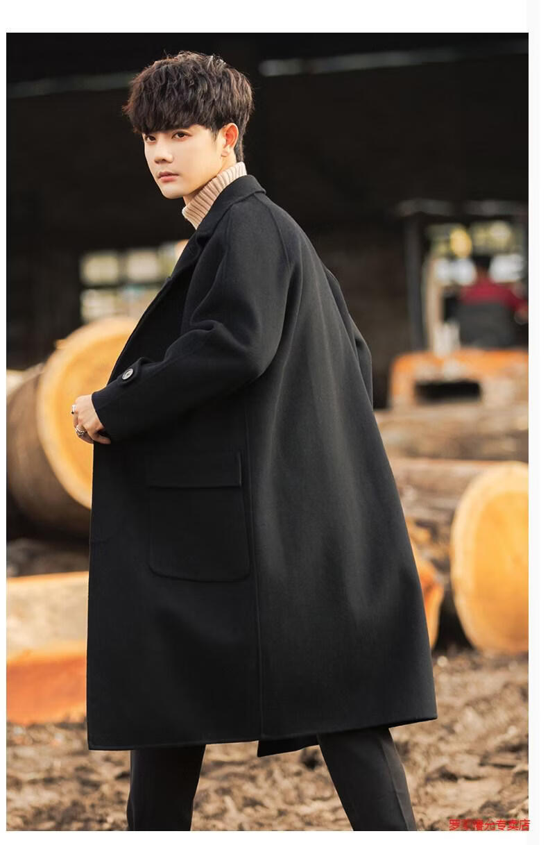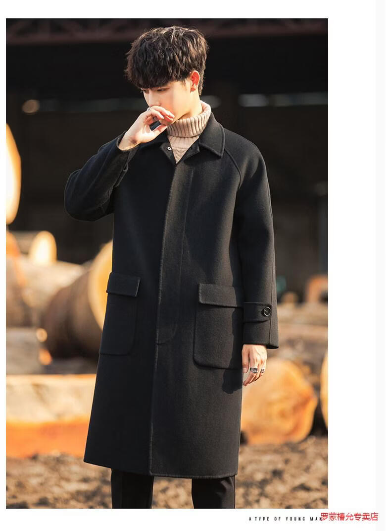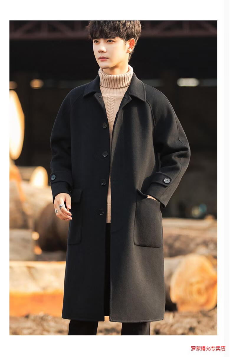 ROMON double-sided woolen coat for men, mid-length, high-end, winter thickened woolen trench coat, knee-high trendy black S 120Jin Jin is equal to within 0.5 kg