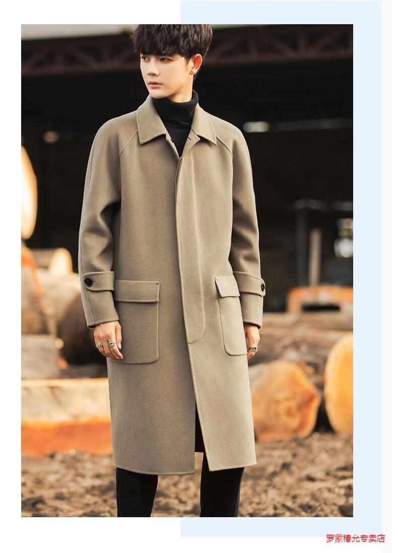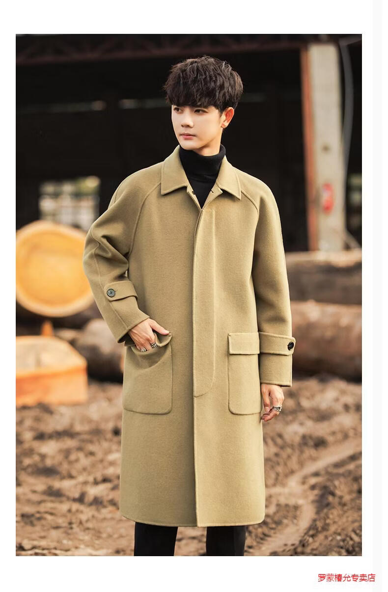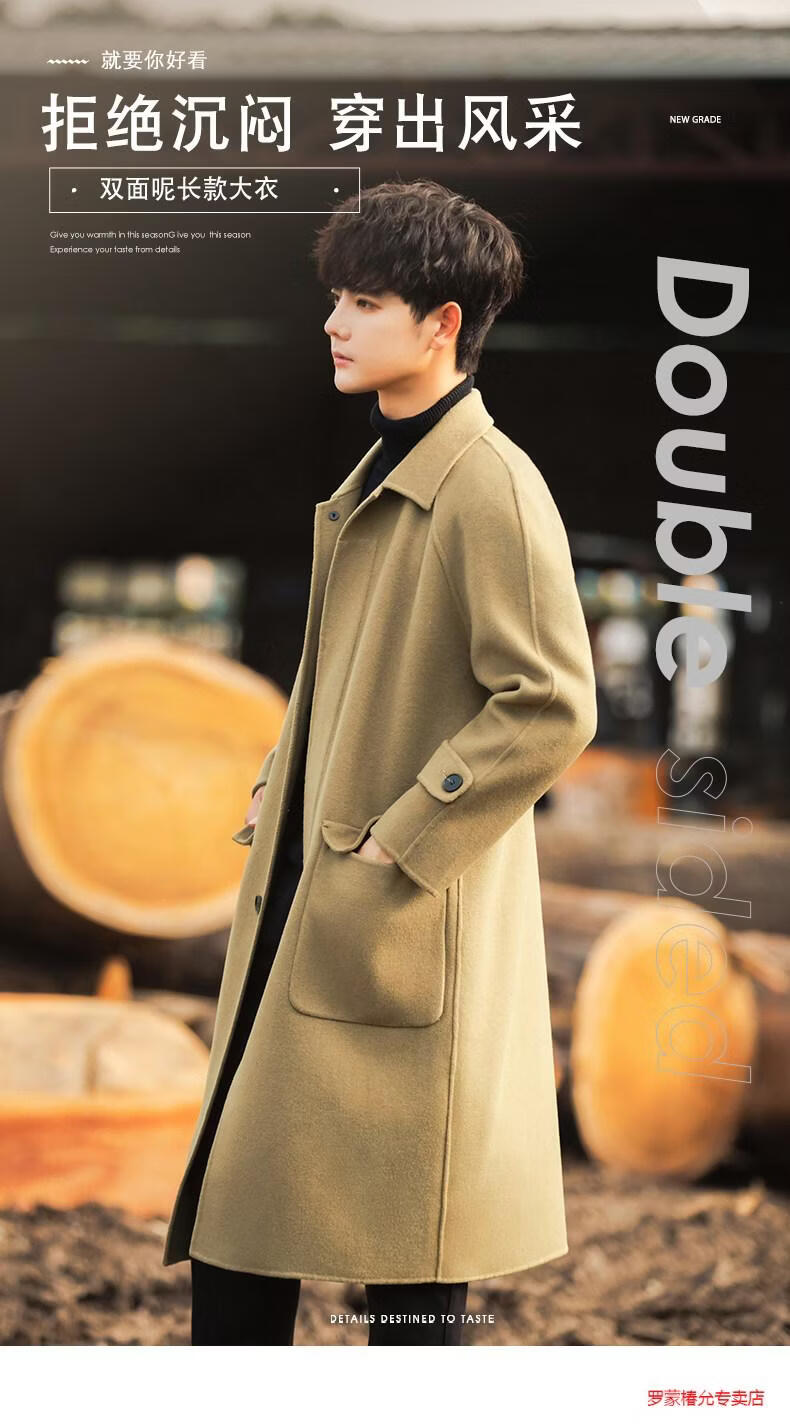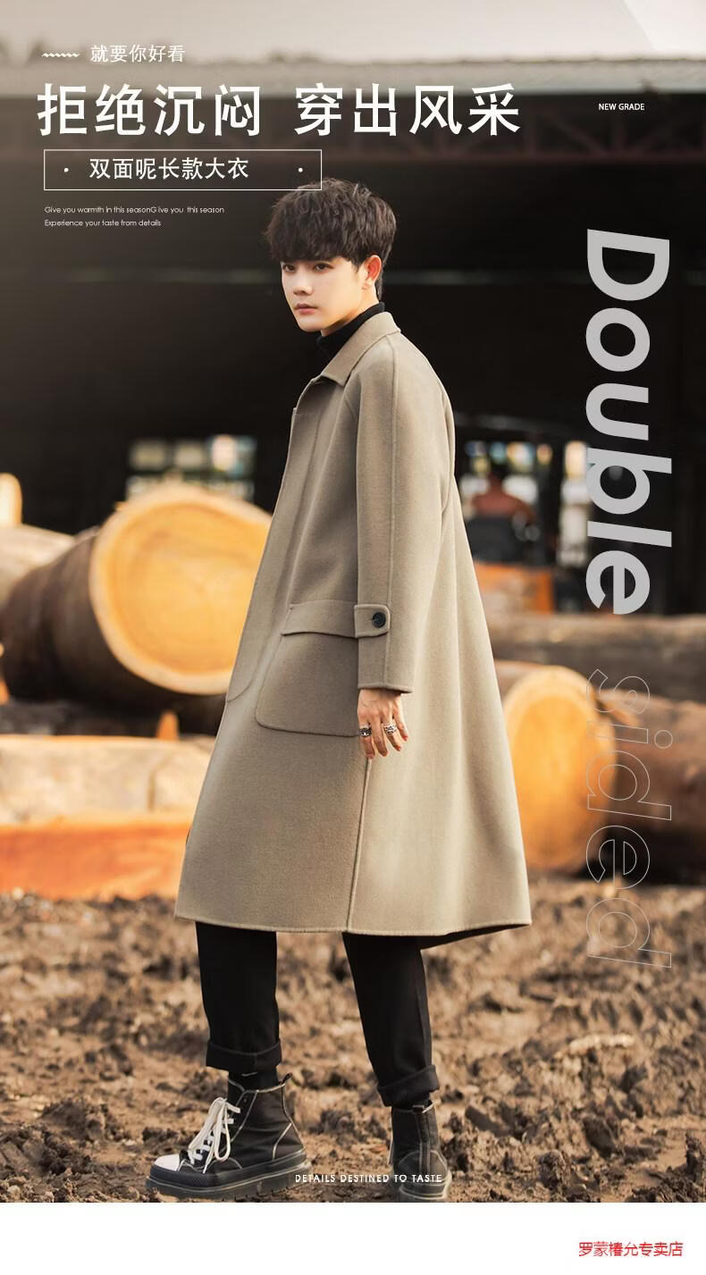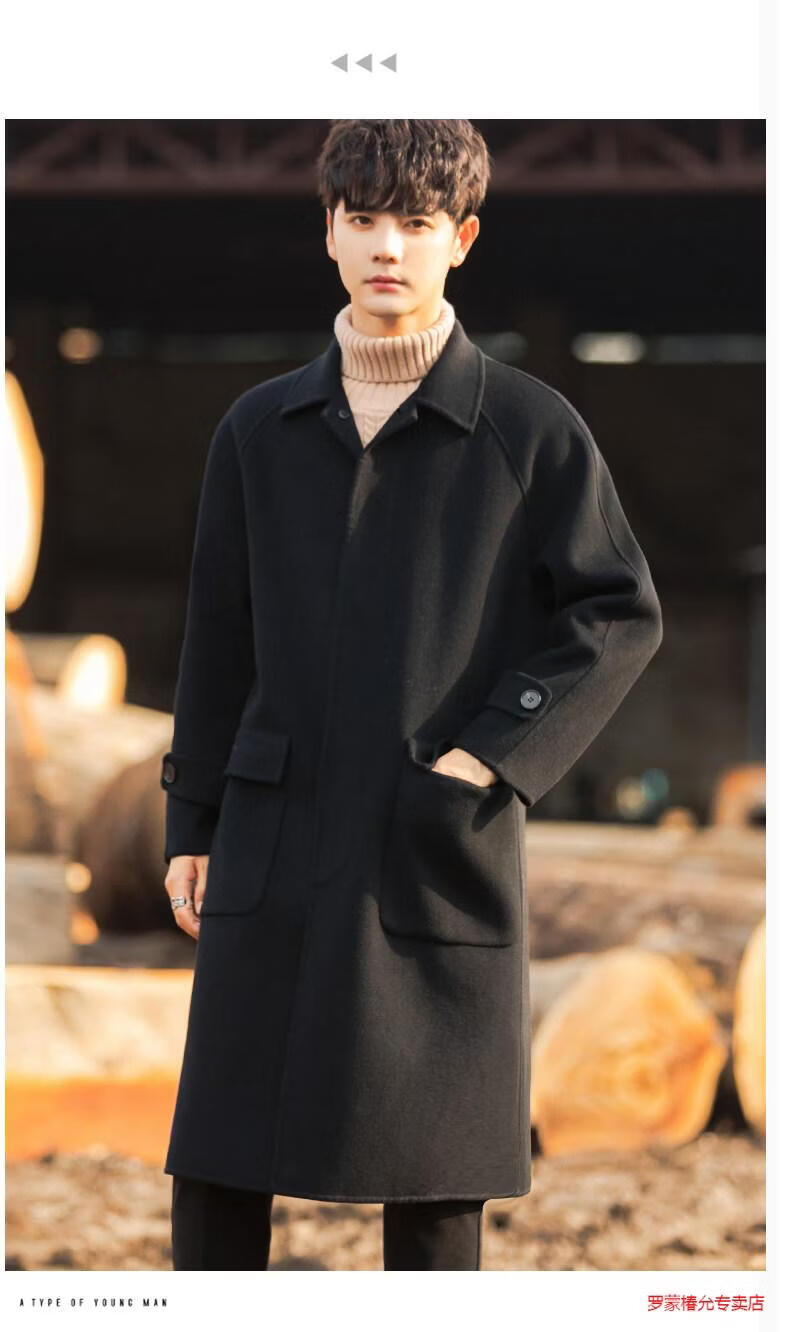 ROMON double-sided woolen coat for men, mid-length, high-end, winter thickened woolen trench coat, knee-high trendy black S 120Jin Jin is equal to within 0.5 kg