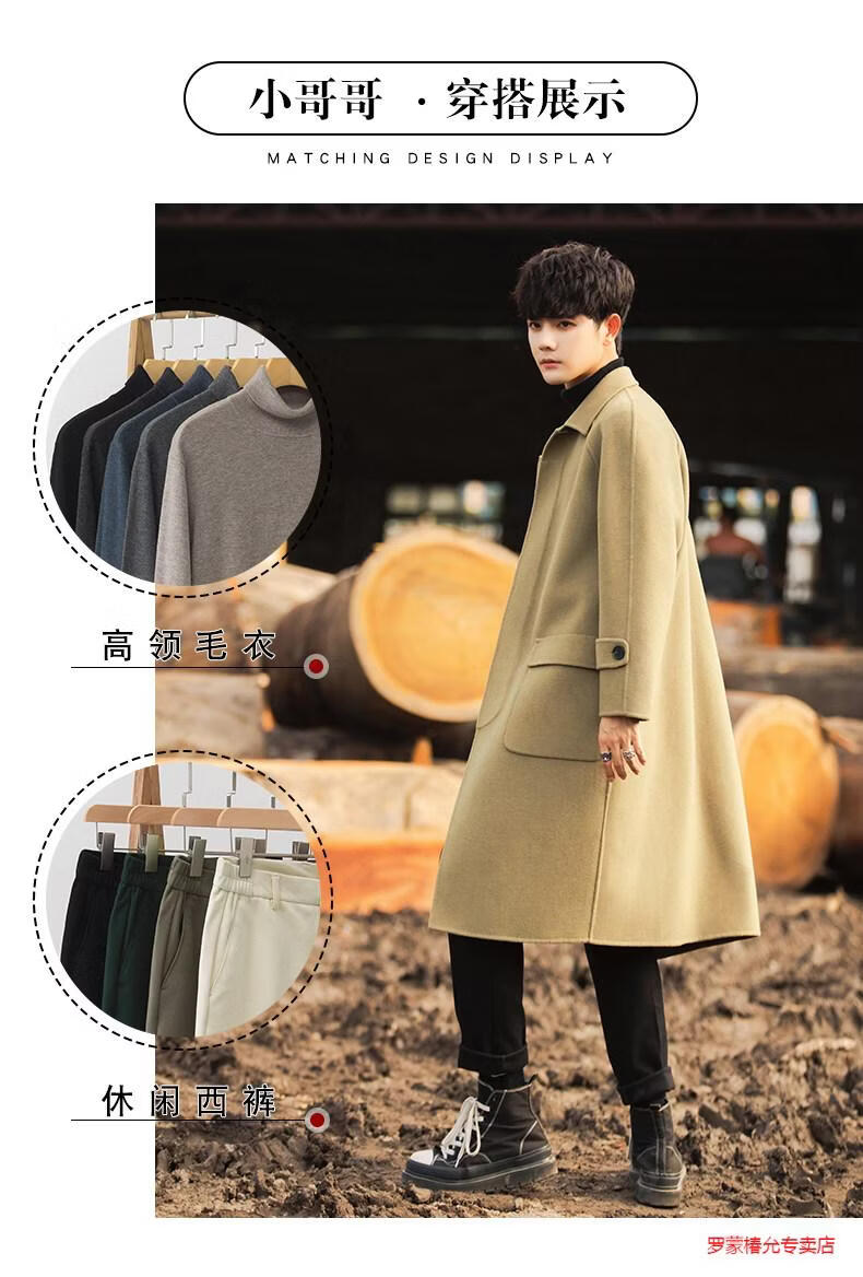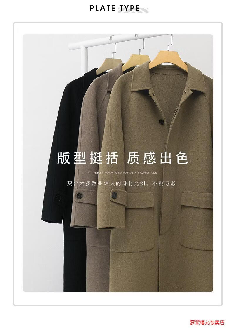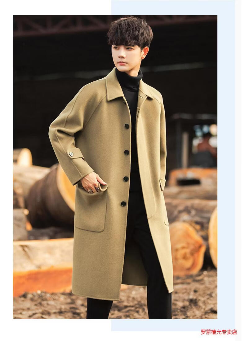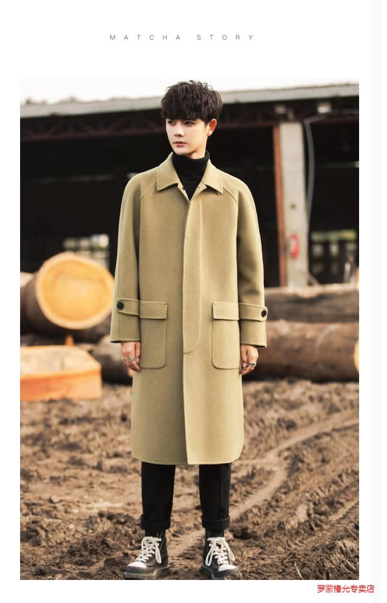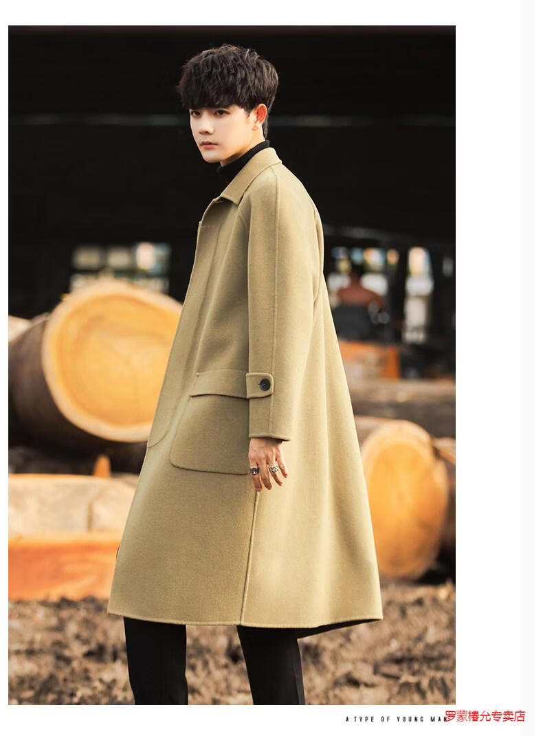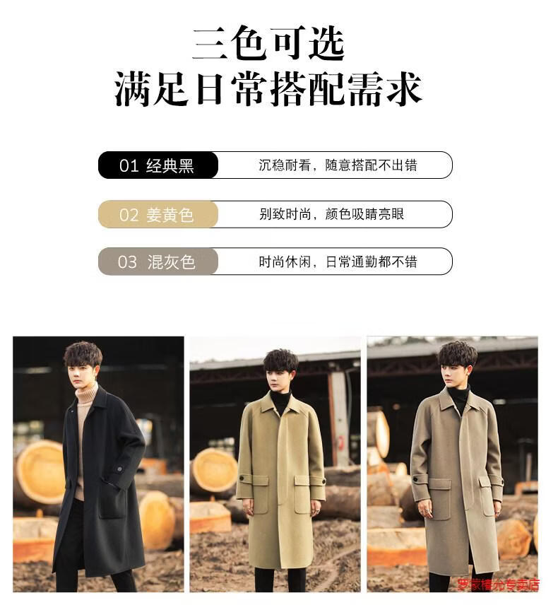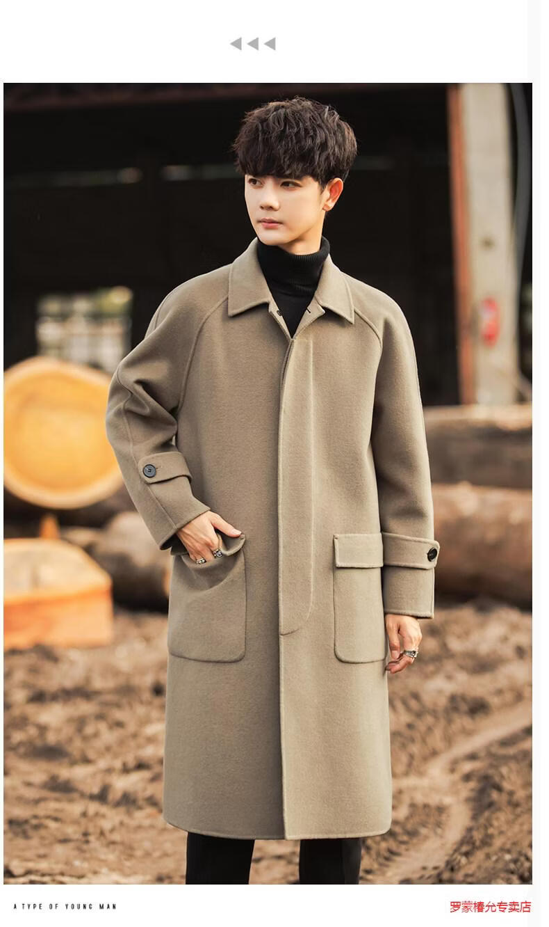 ROMON double-sided woolen coat for men, mid-length, high-end, winter thickened woolen trench coat, knee-high trendy black S 120Jin Jin is equal to within 0.5 kg