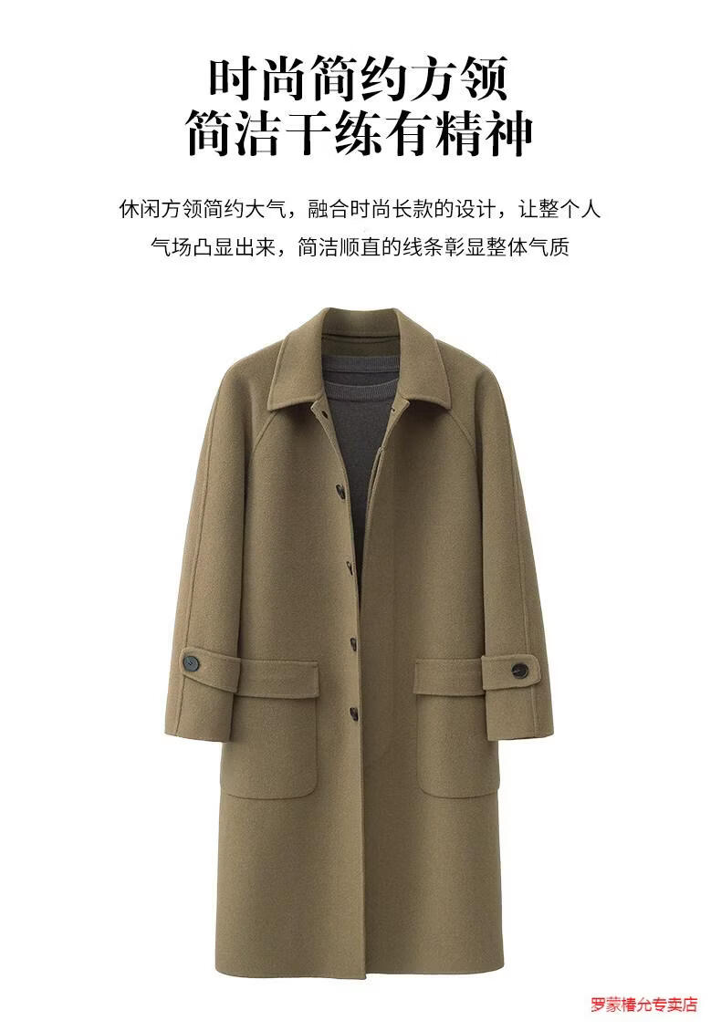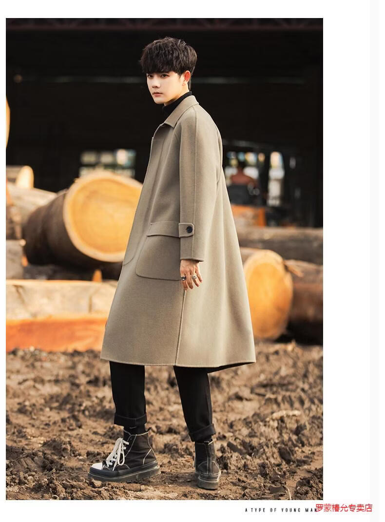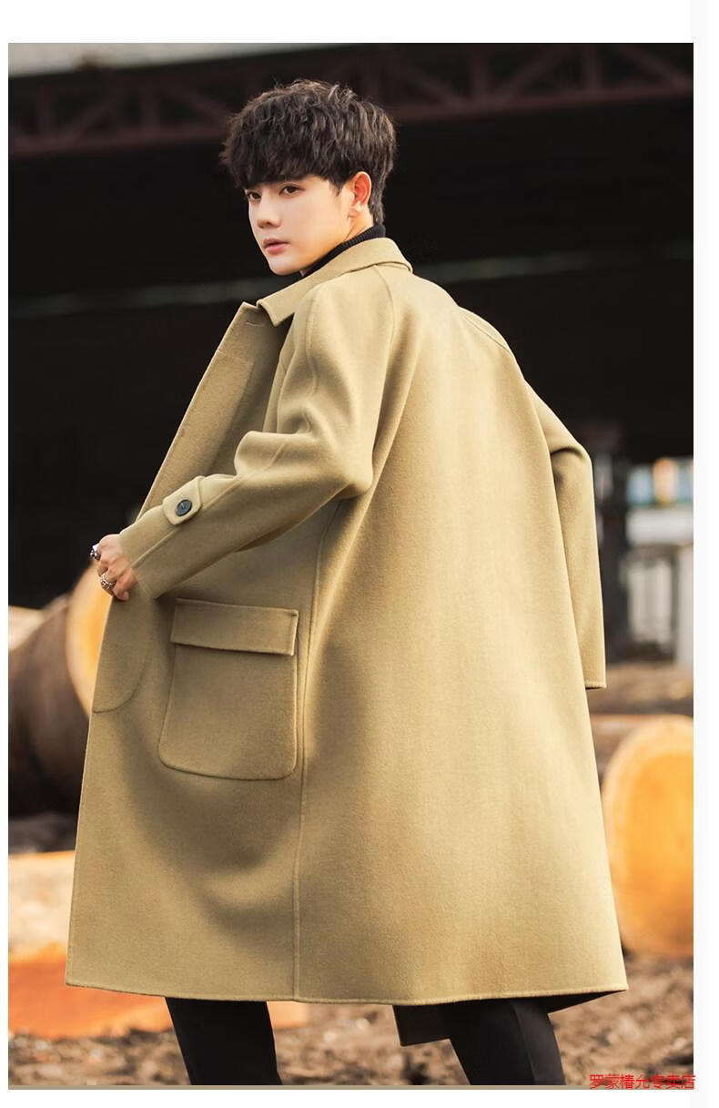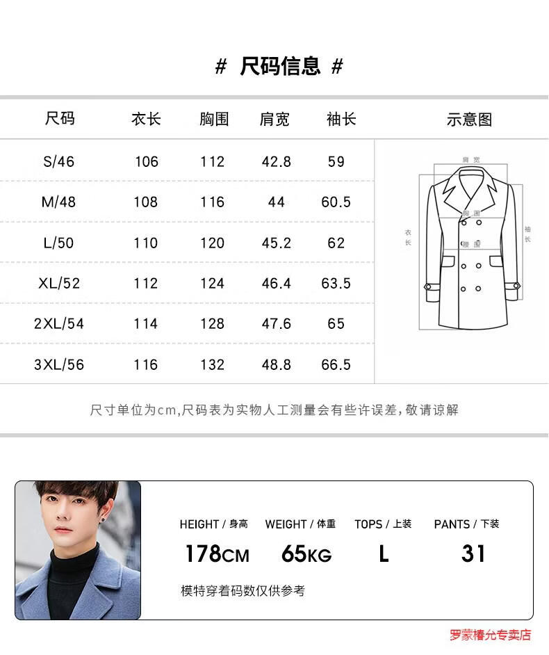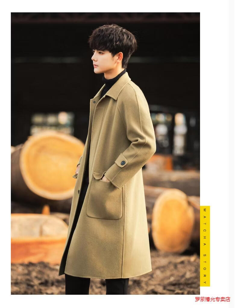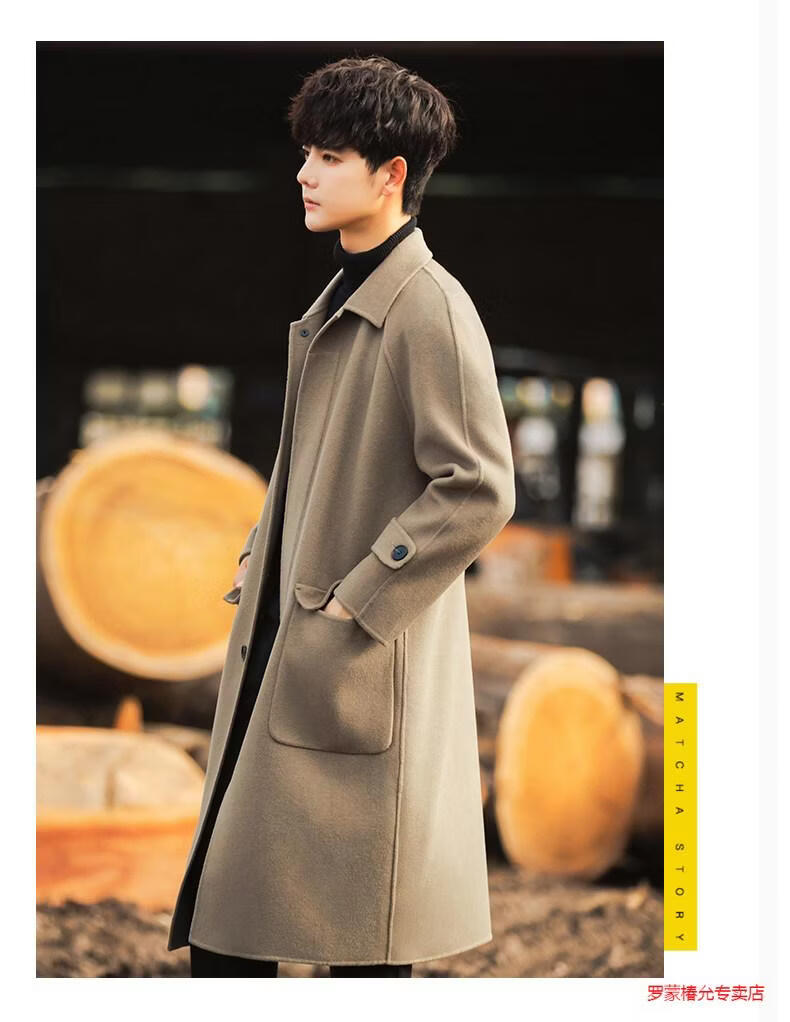 ROMON double-sided woolen coat for men, mid-length, high-end, winter thickened woolen trench coat, knee-high trendy black S 120Jin Jin is equal to within 0.5 kg