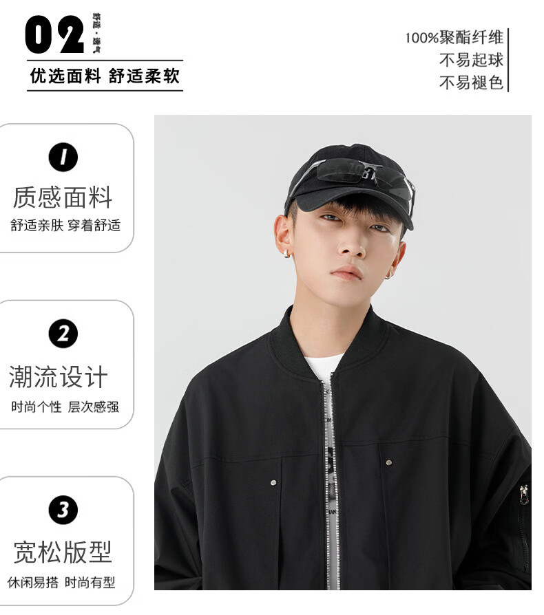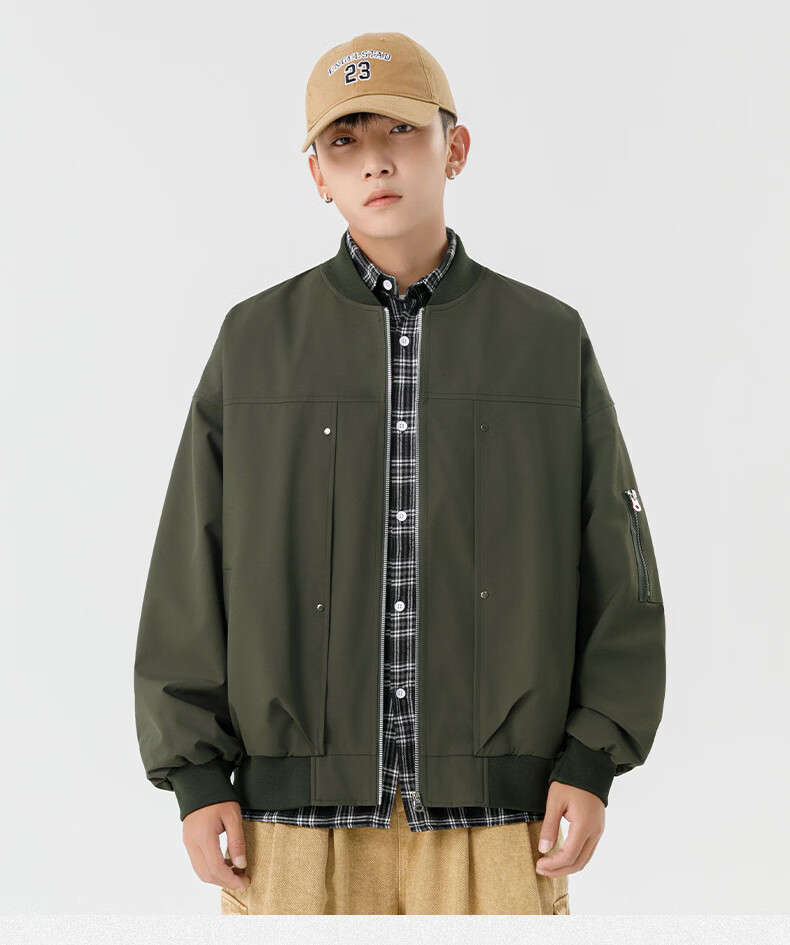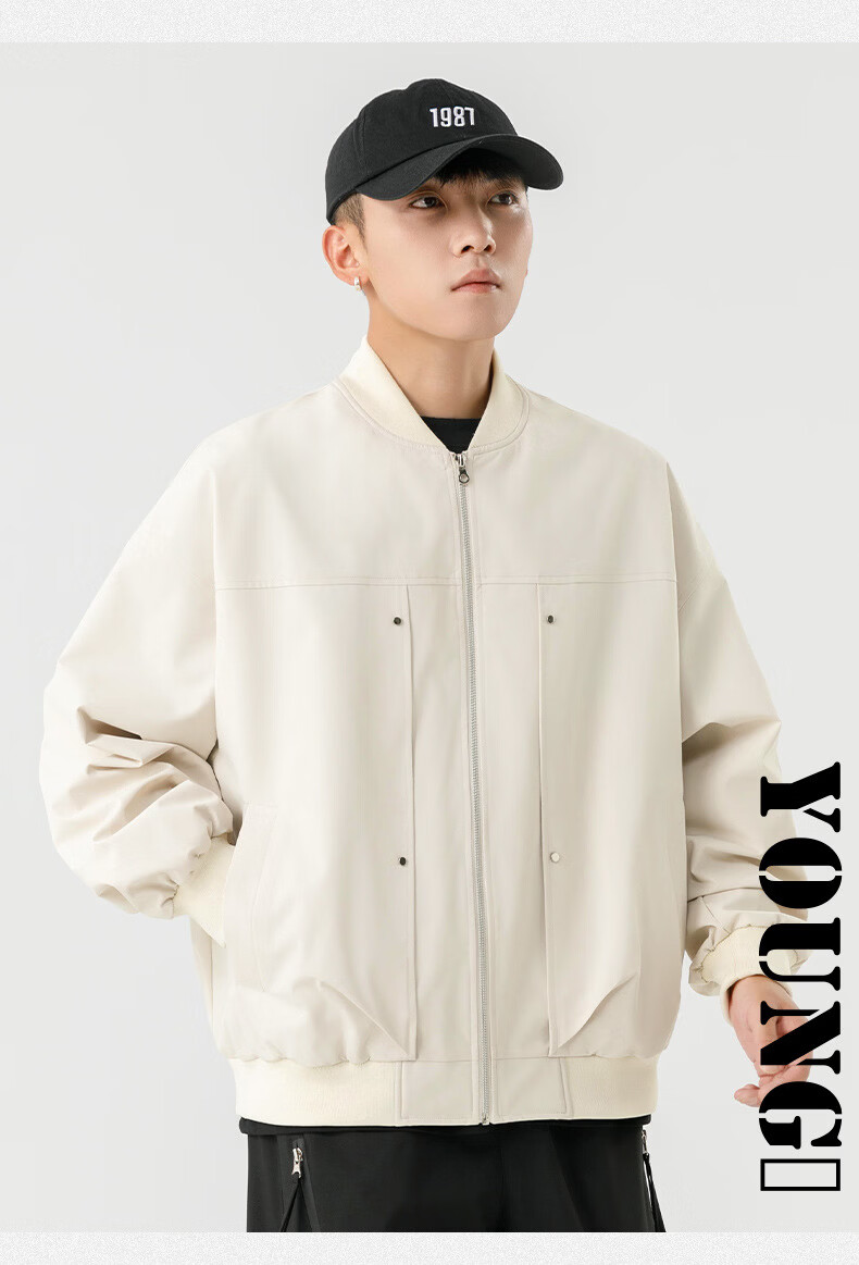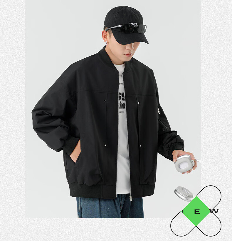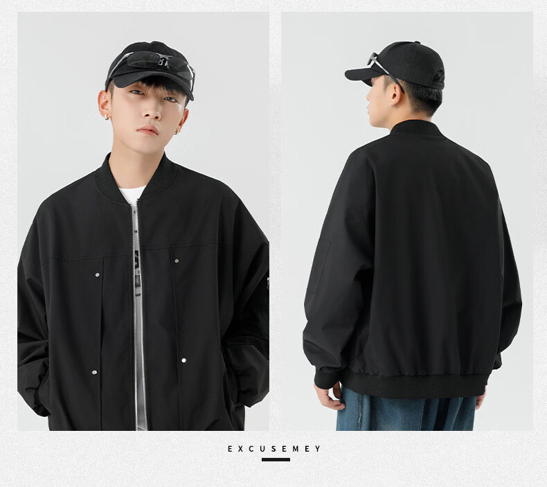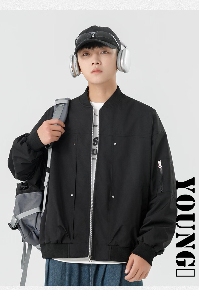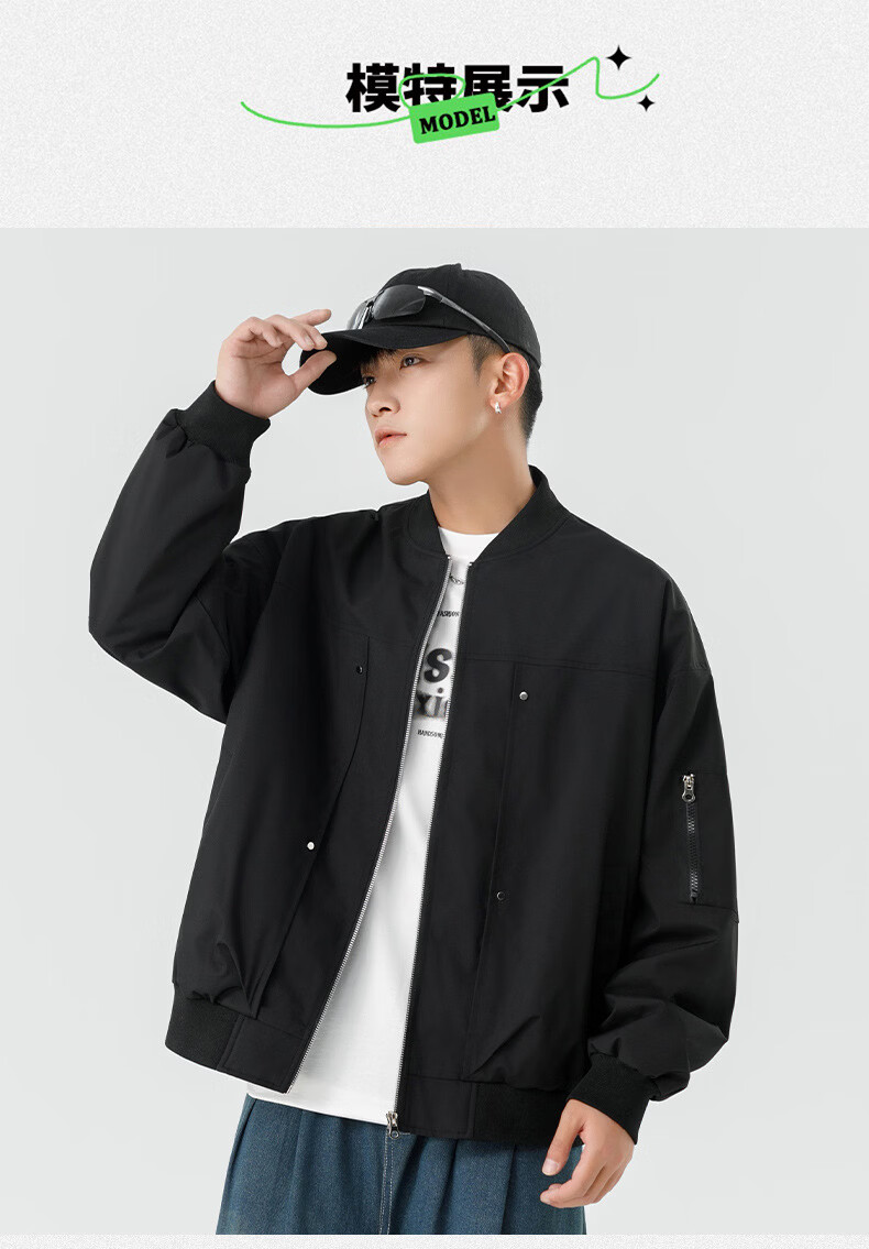 JEEP SPIRIT Chaqueta bomber retro americana para hombre, nuevo diseño de calle, ropa de trabajo holgada y bonita, uniforme de béisbol negro J339 M