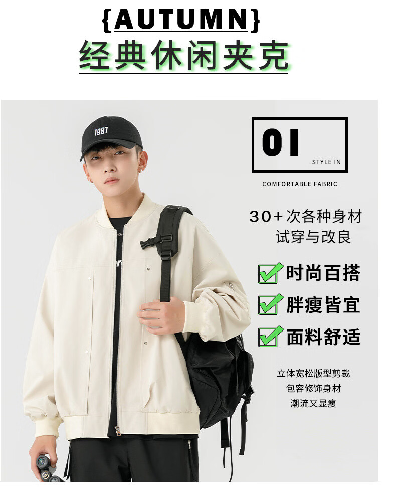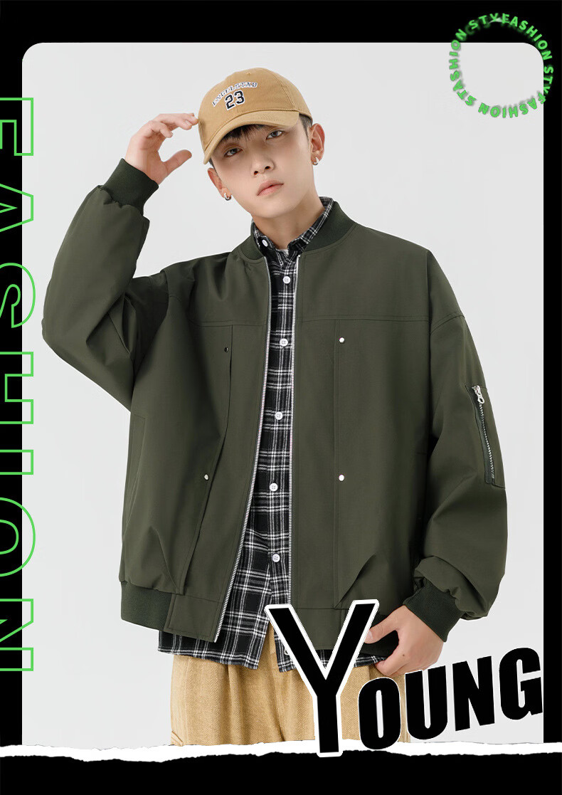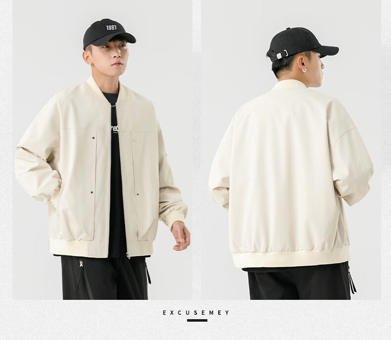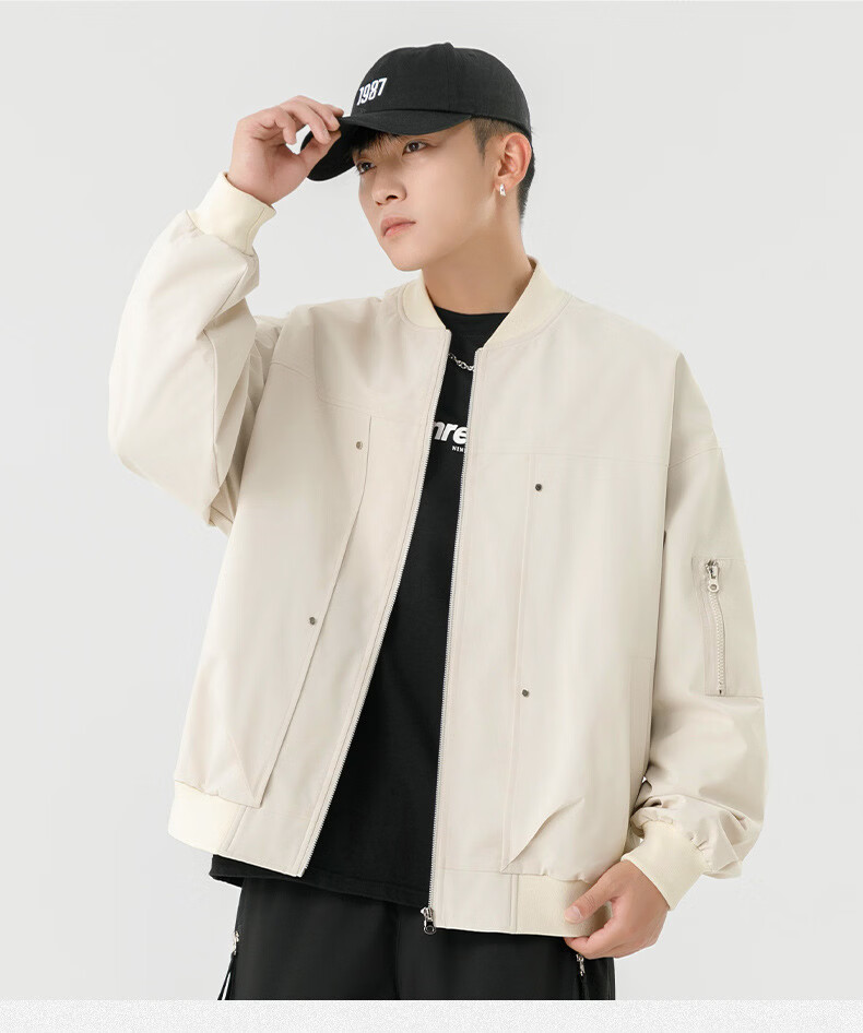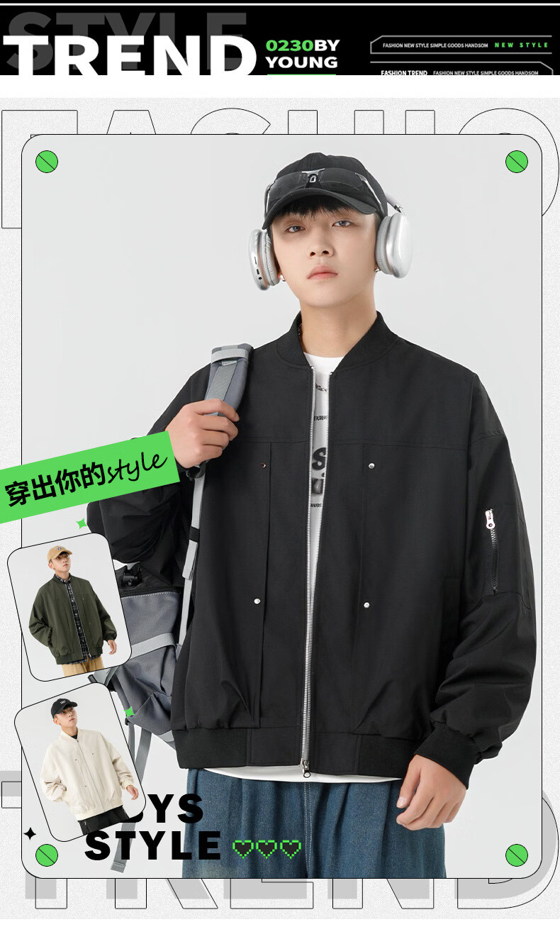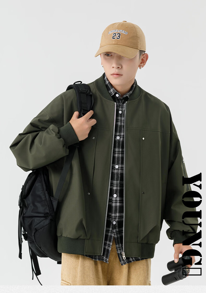 JEEP SPIRIT Chaqueta bomber retro americana para hombre, nuevo diseño de calle, ropa de trabajo holgada y bonita, uniforme de béisbol negro J339 M