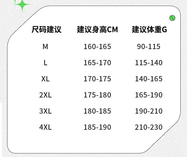 China (cm) 165 / 88-90 170 / 96-98 175 / 108-110 180 / 118-122 185 / 126-130