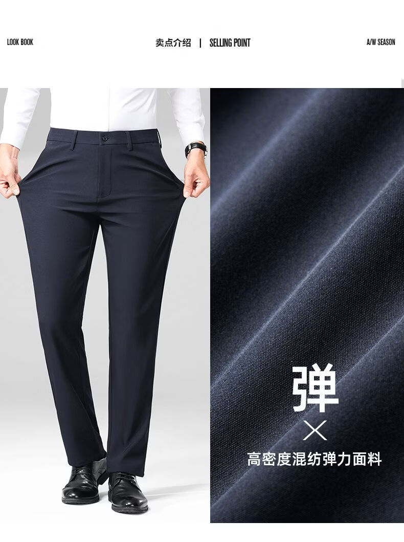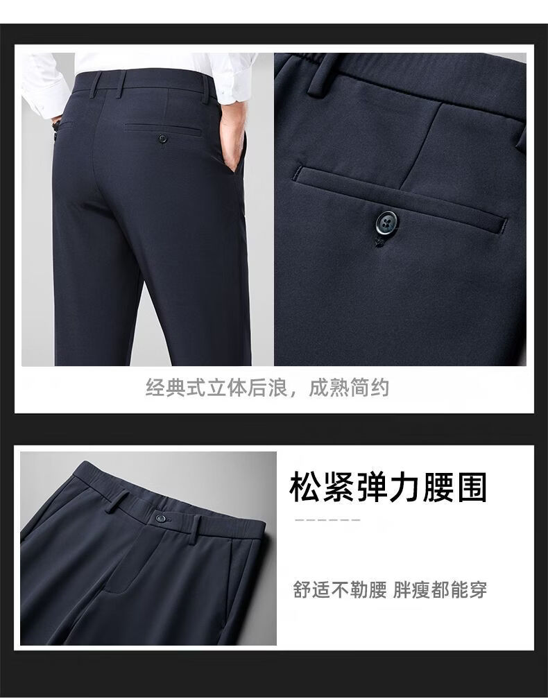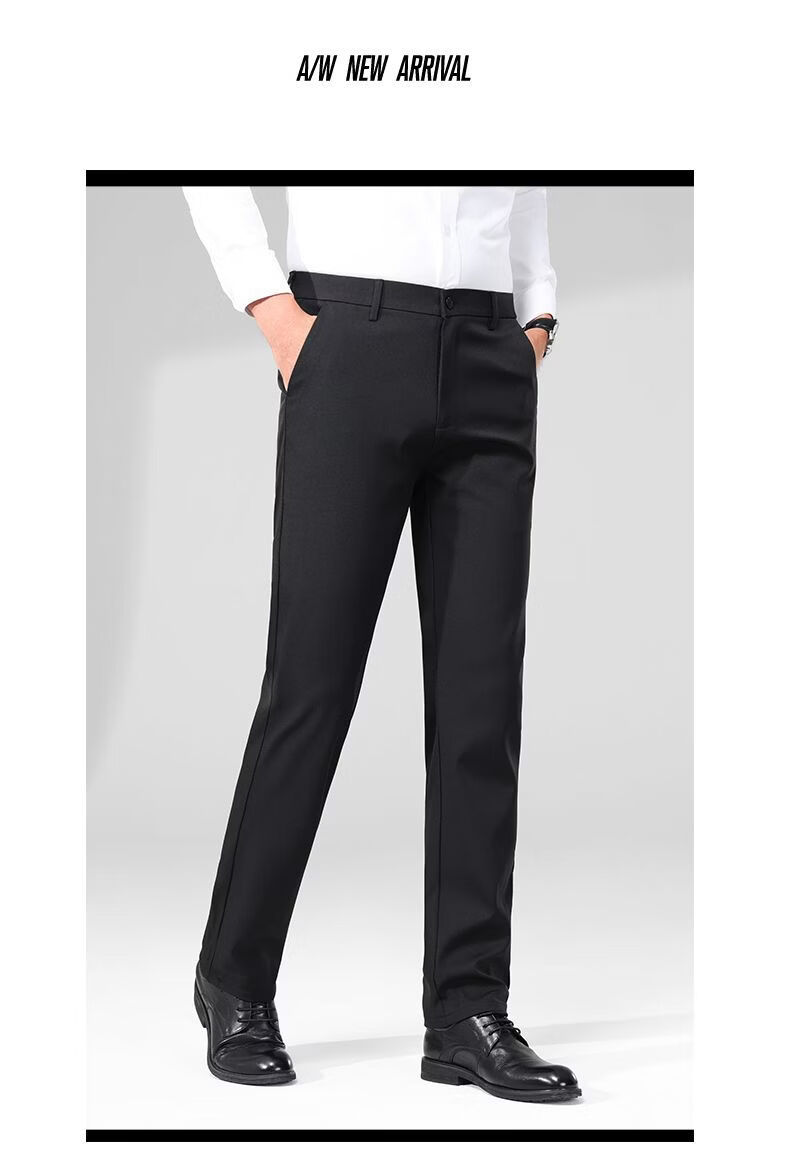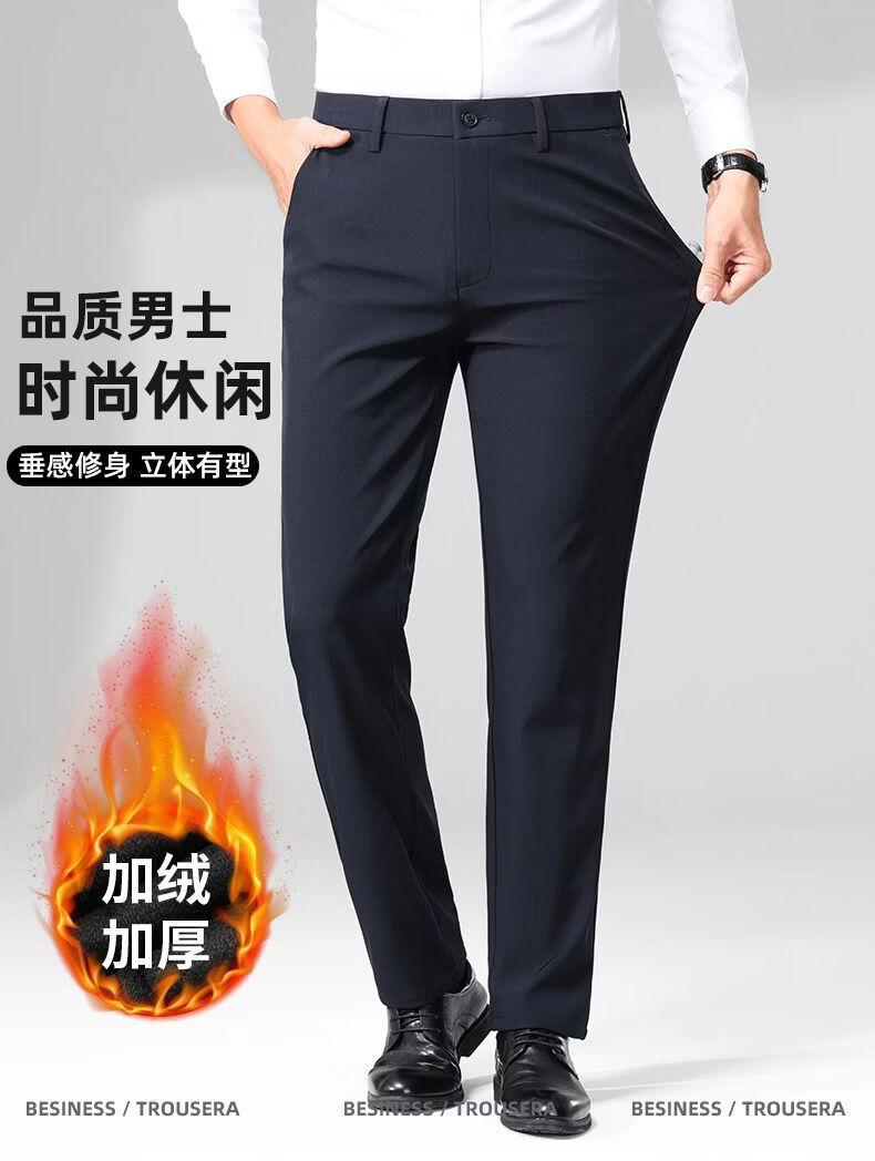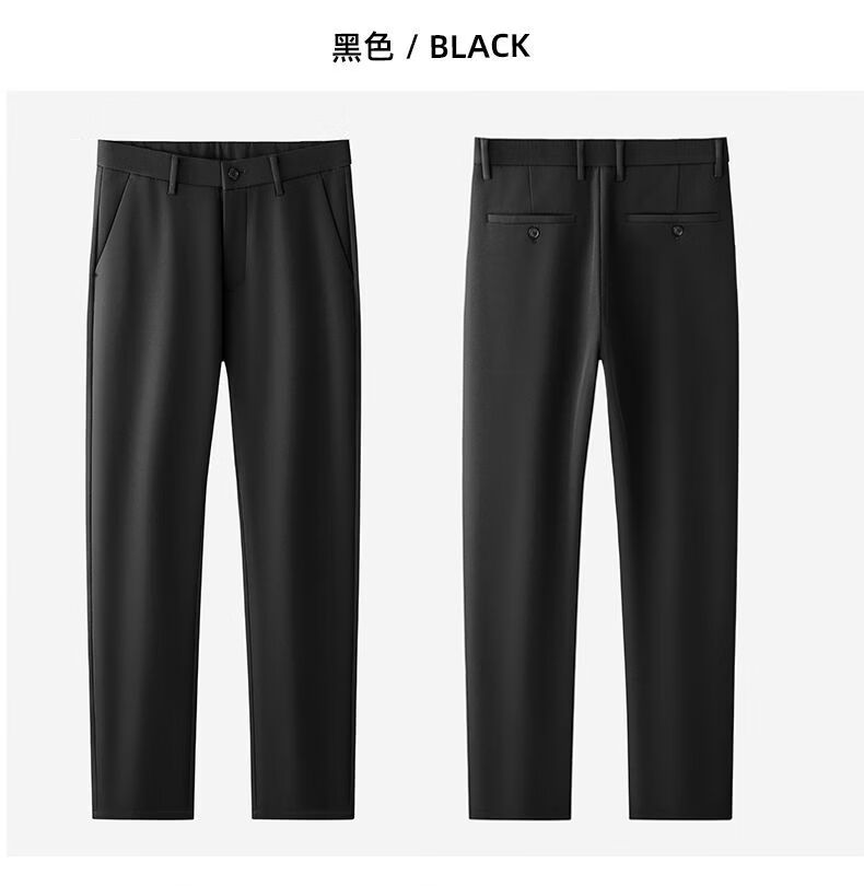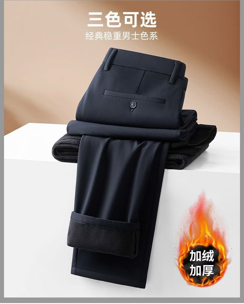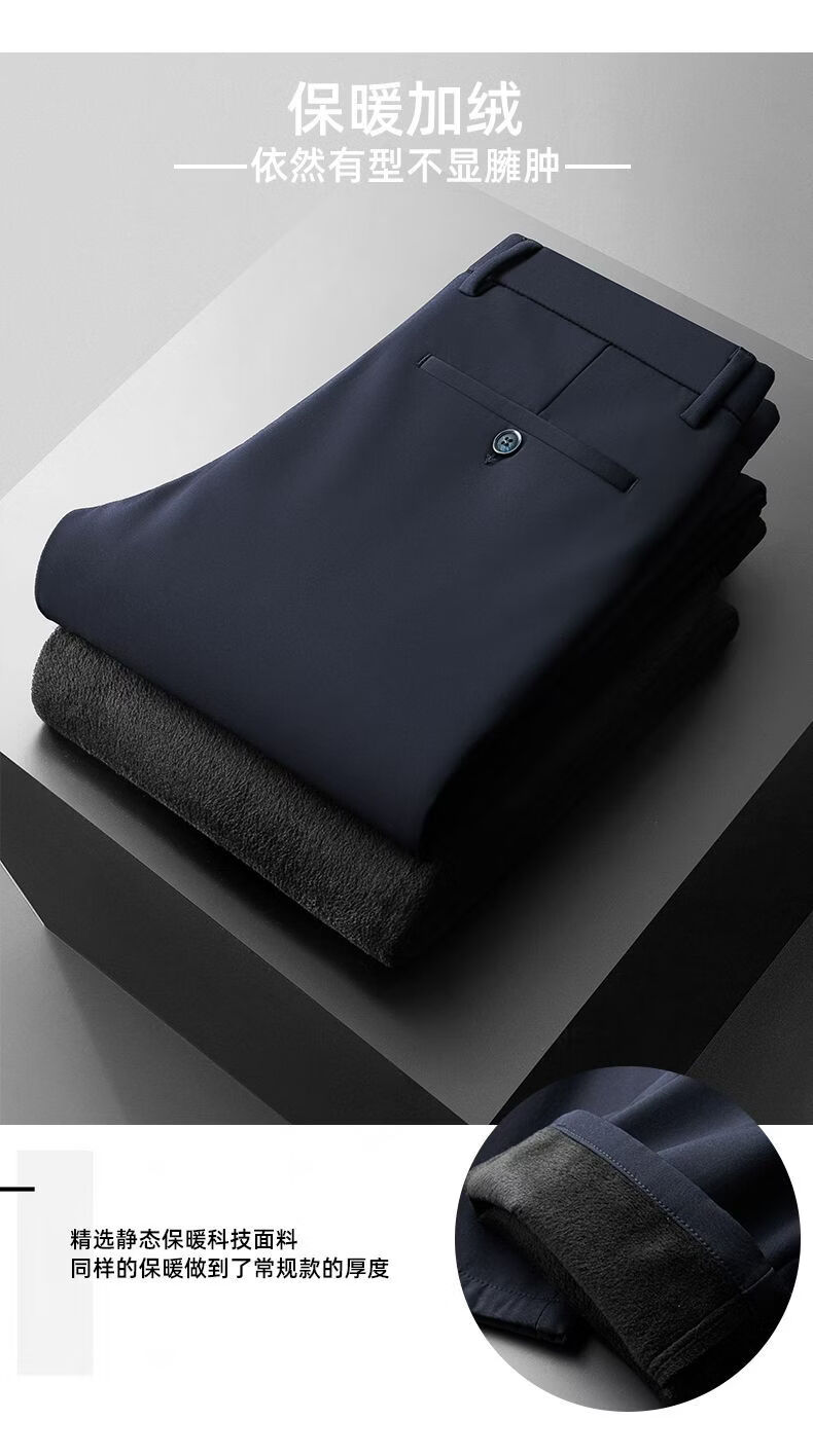 MARCO AZZALI high-end brand men's casual trousers autumn and winter plus velvet business young and middle-aged iron-free straight elastic slim men's trousers black 33 recommended 140-150 Jin Jin equals 0.5 kg
