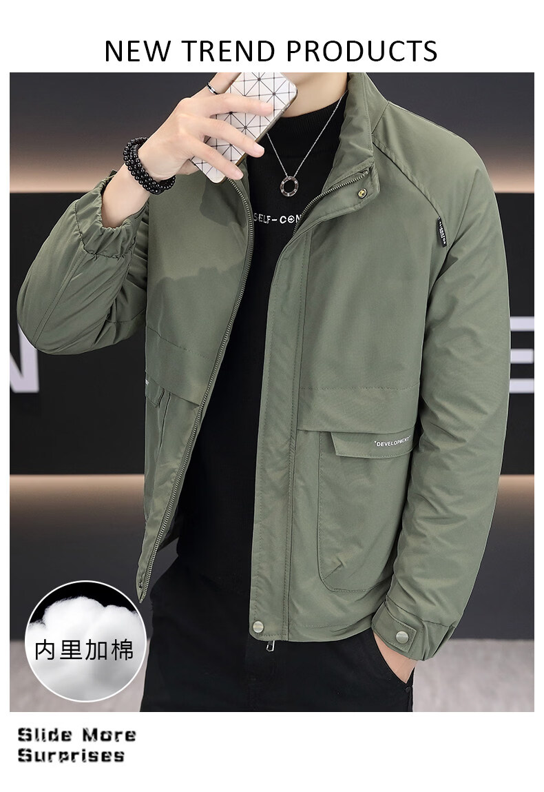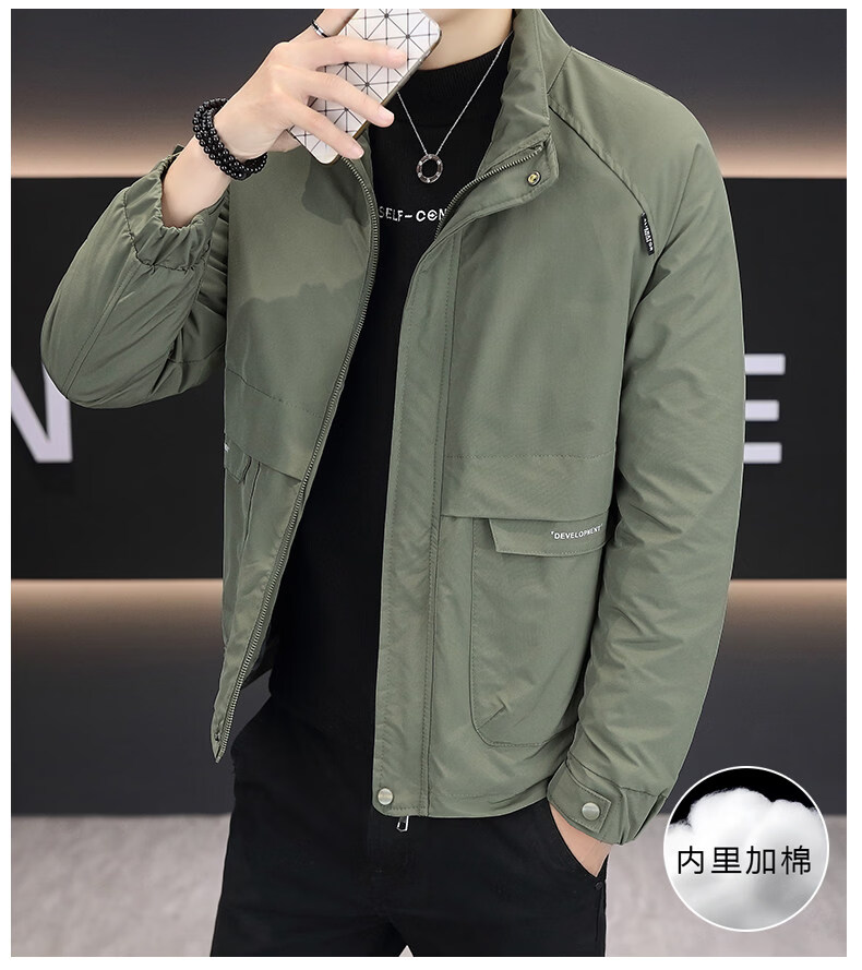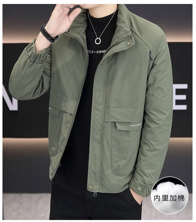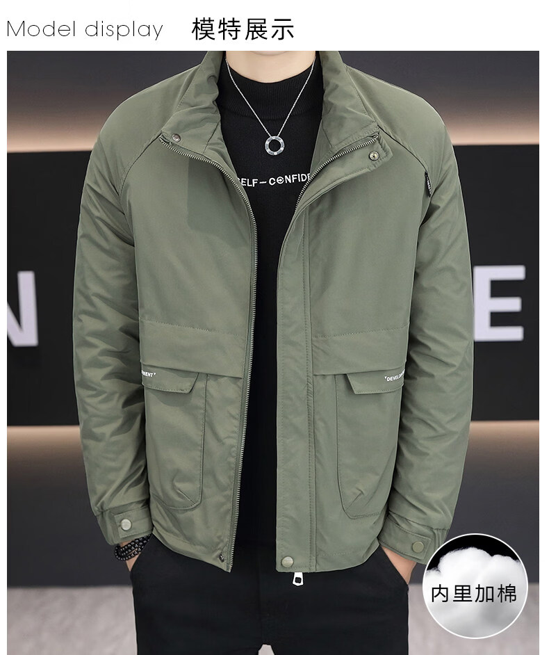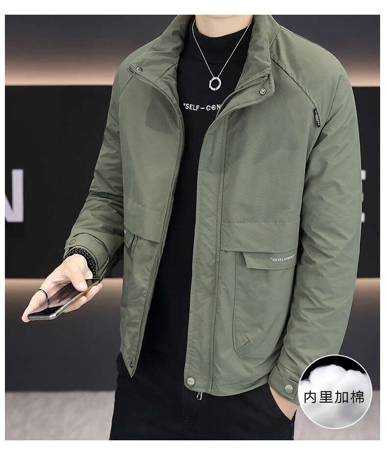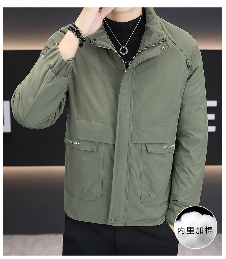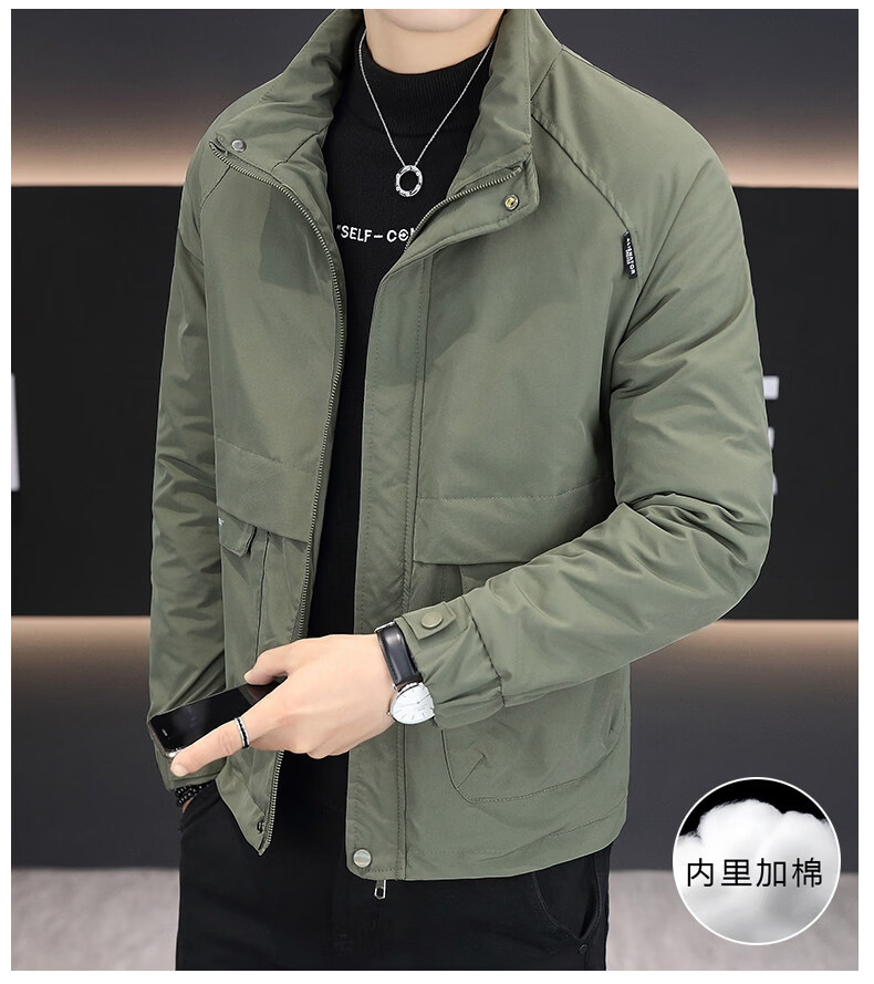 Hengyuanxiang chaqueta de trabajo con cuello alto para hombre, otoño e invierno, chaqueta cálida gruesa de algodón de color sólido, top de invierno 7701, estilo de algodón verde militar XL, alrededor de 125 ~ 140 Jin Jin equivale a 0,5 kg, se puede usar