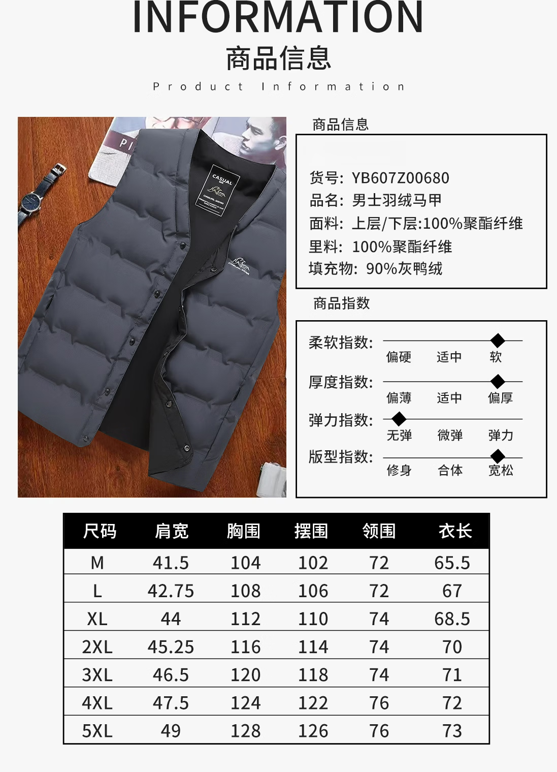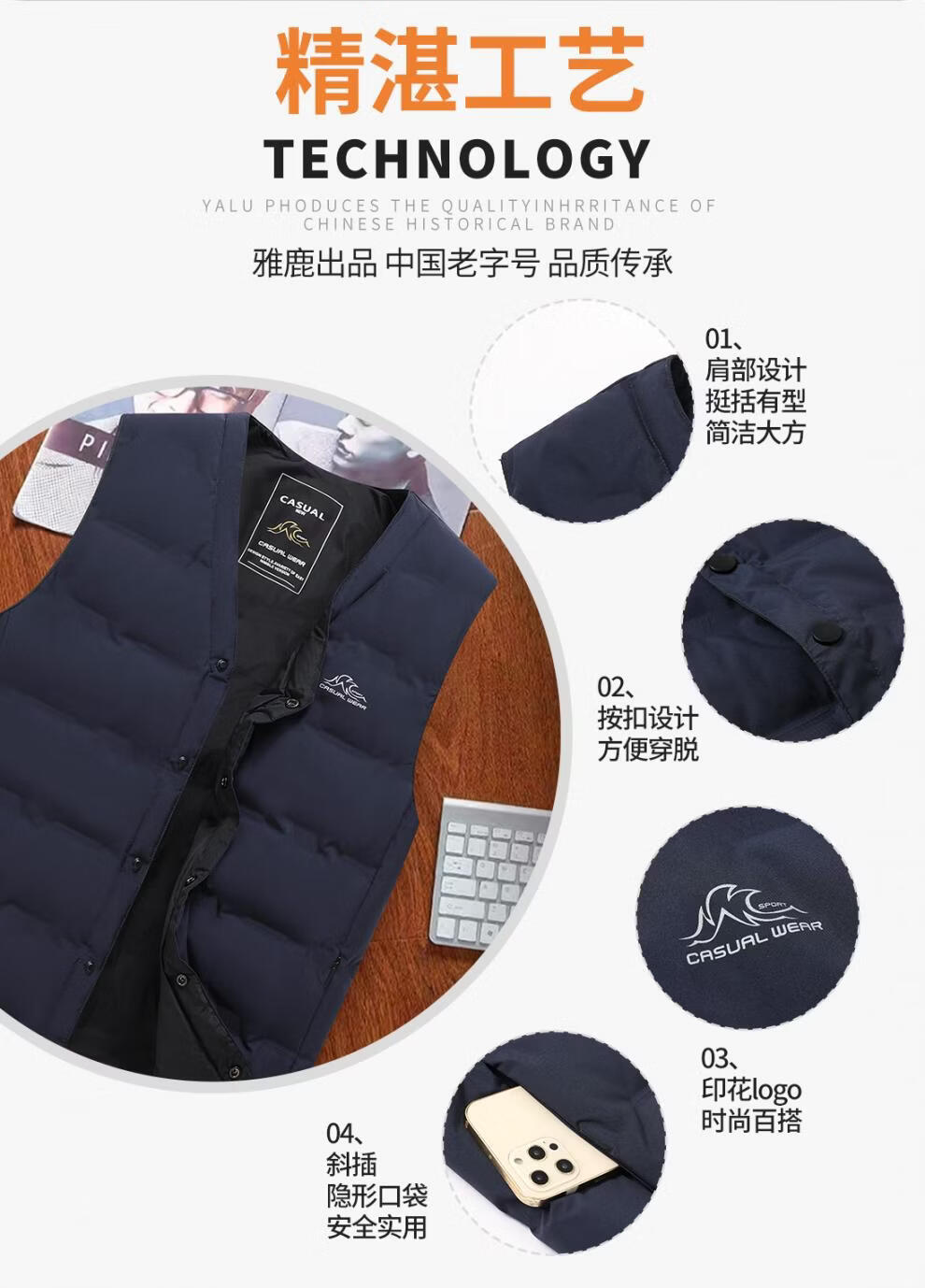 恒源祥2026年秋冬季新款男士羽绒马甲轻薄背心外穿爸爸休闲大码坎肩 藏青色 M 建议95-115斤