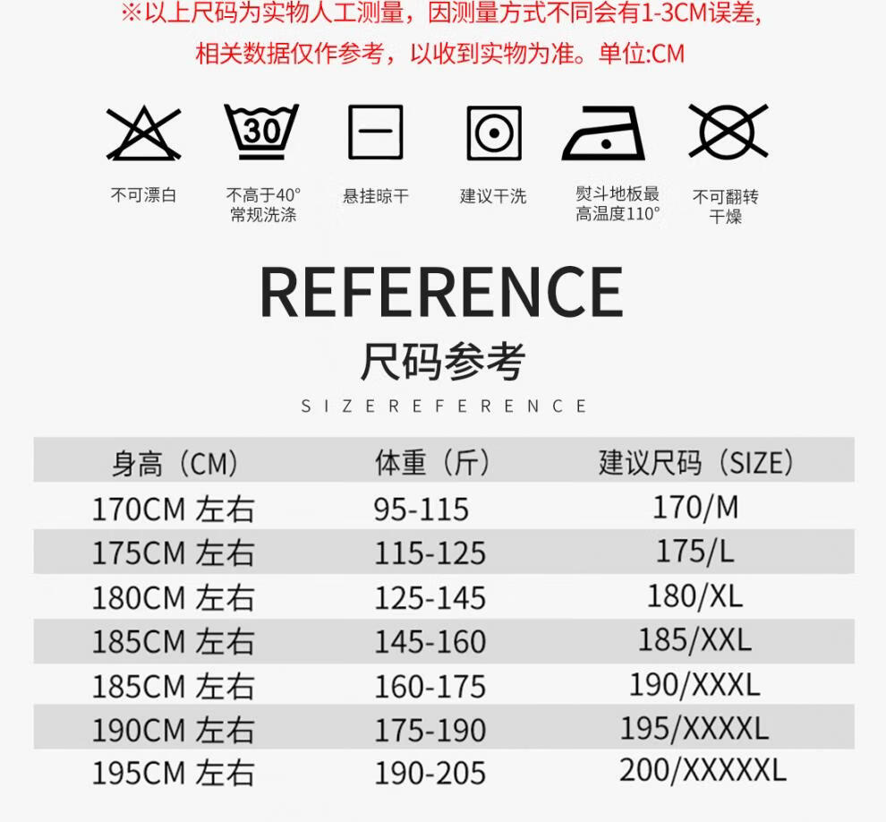 China (cm) 165 / 88-90 170 / 96-98 175 / 108-110 180 / 118-122 185 / 126-130