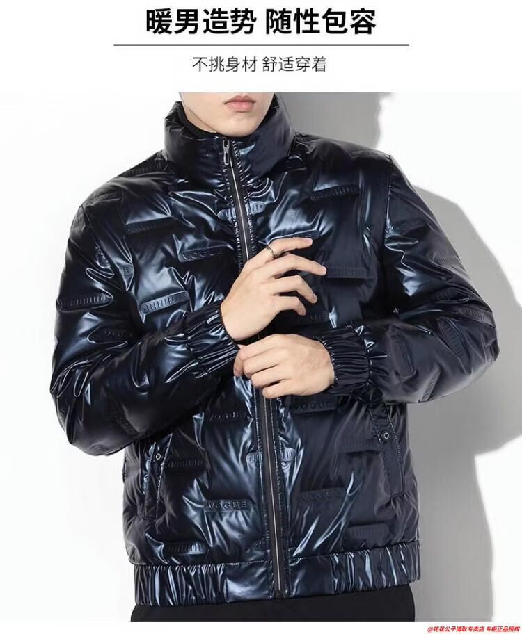 花花公子高档轻薄羽绒服男士亮面鸭绒上衣2025年冬季新款休闲保暖外套男装 2086蓝色 M 推荐90-110斤
