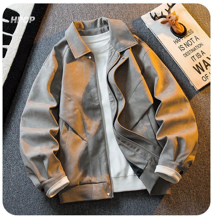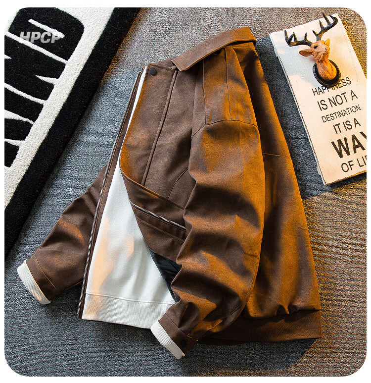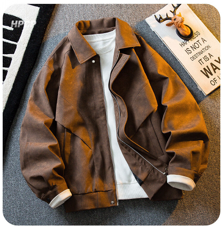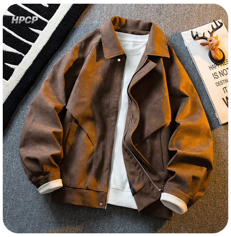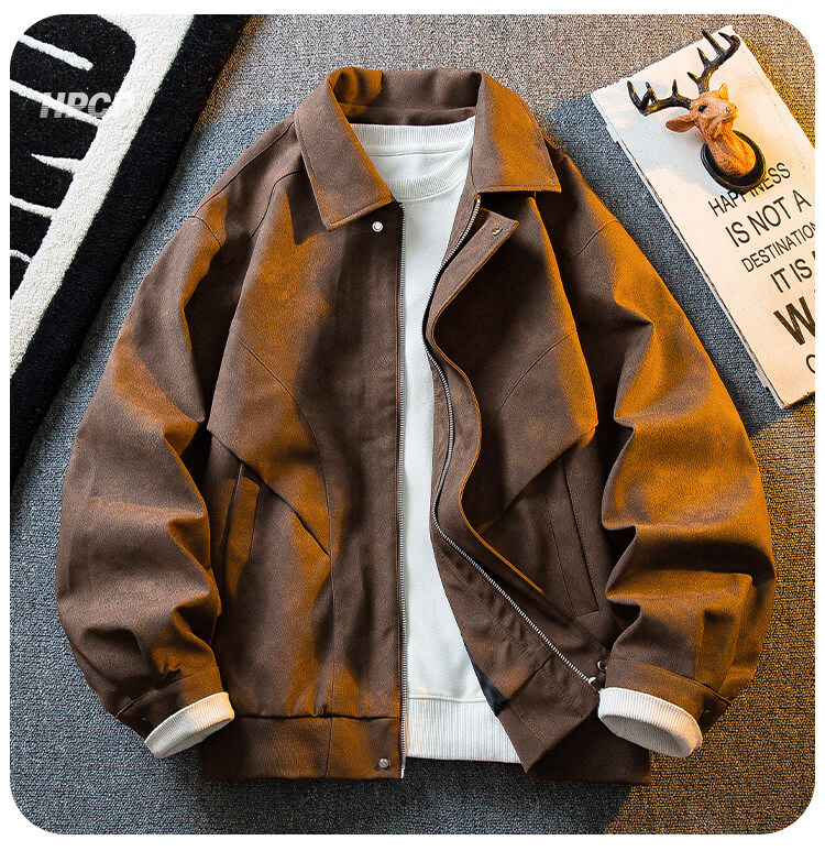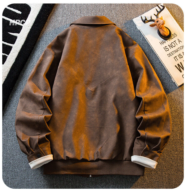 ROMON Американская ретро замшевая кожаная куртка с потертостями, мужская весенне-осенняя трендовая универсальная мотоциклетная куртка с лацканами, топ коричневого цвета XL