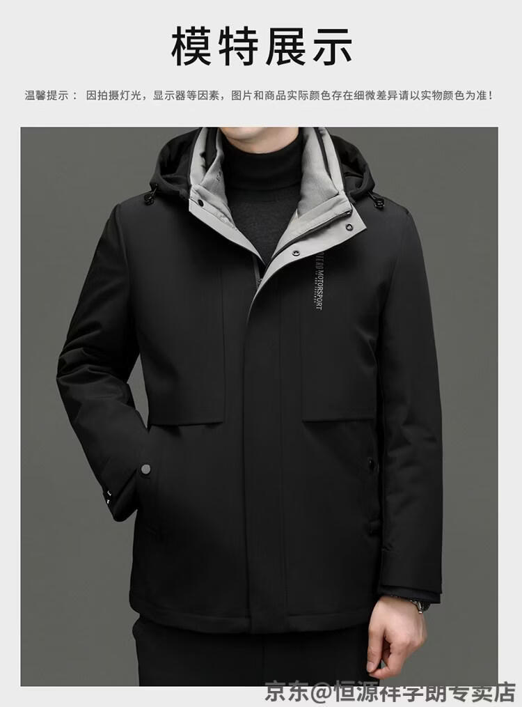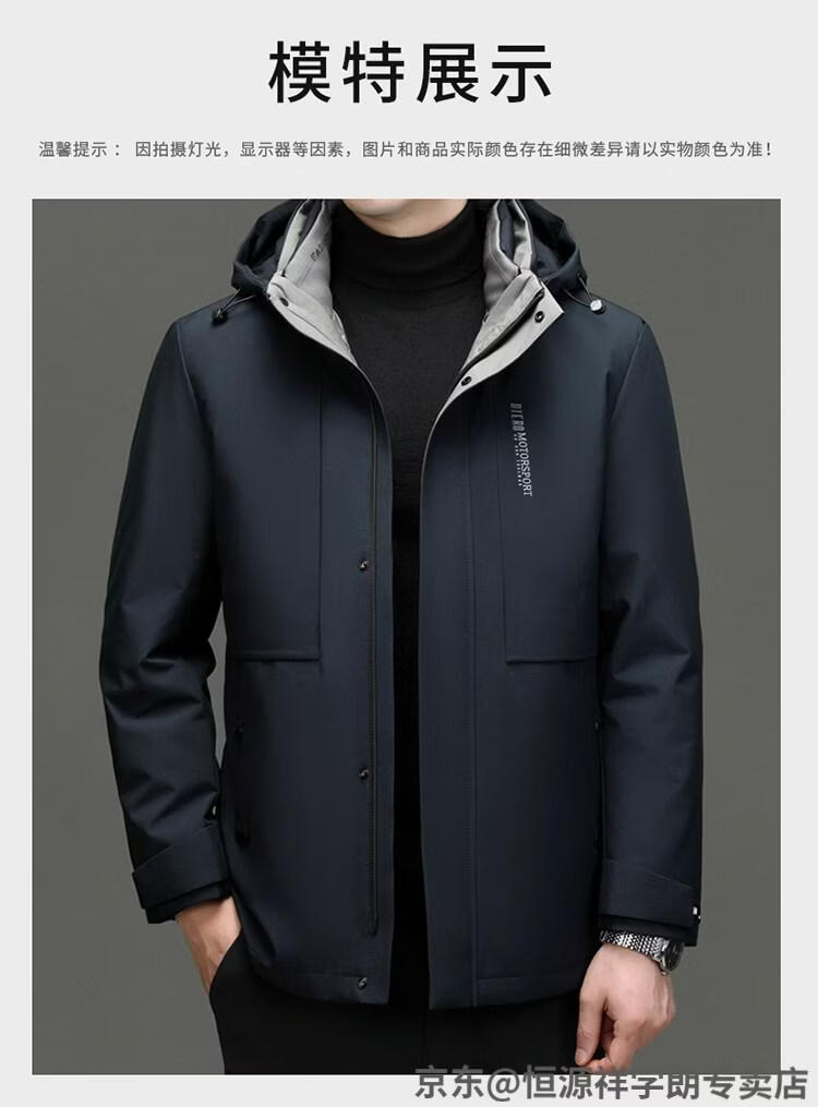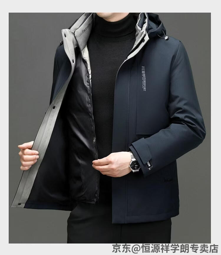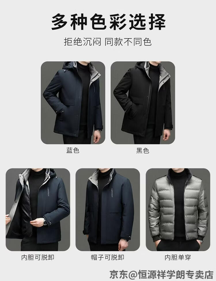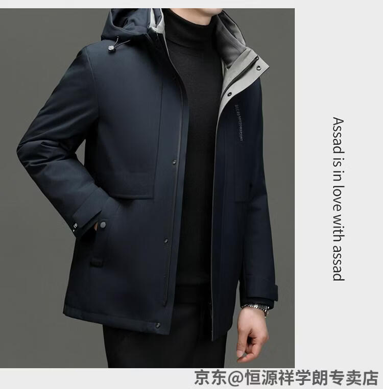 恒源祥90白鹅绒男士羽绒服冬季2025新款可脱内胆加厚保暖外套冬装 虾青色 L 175 (建议110-125斤)