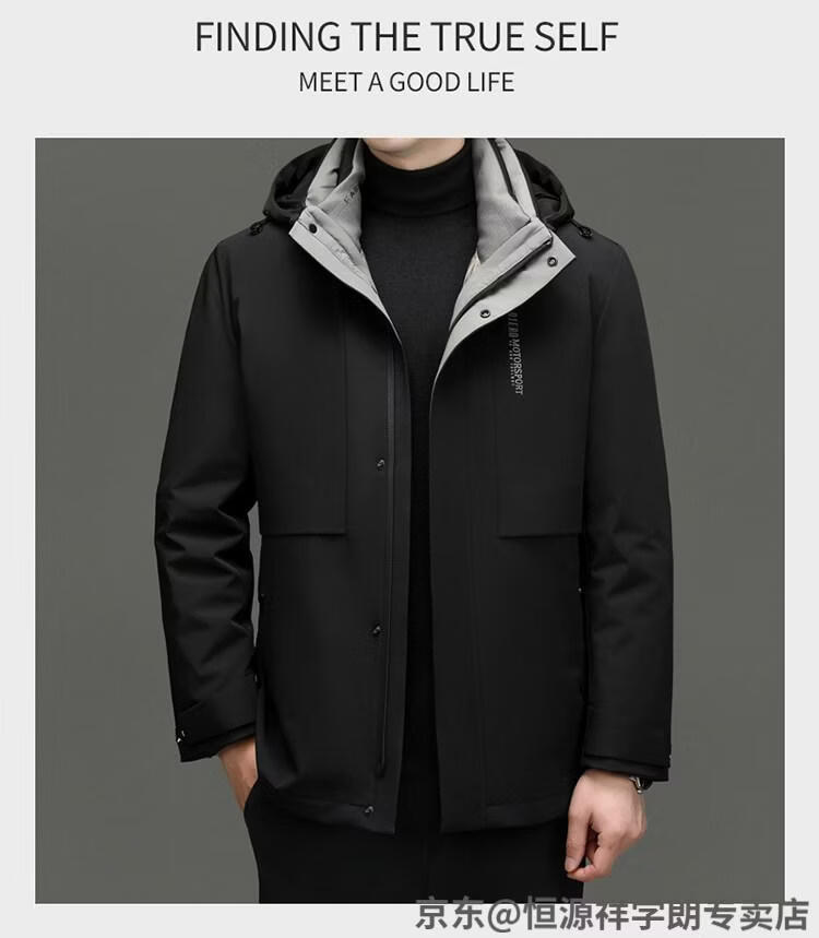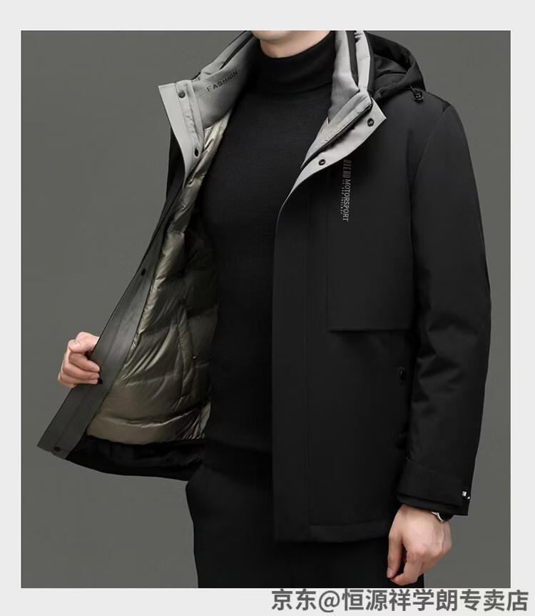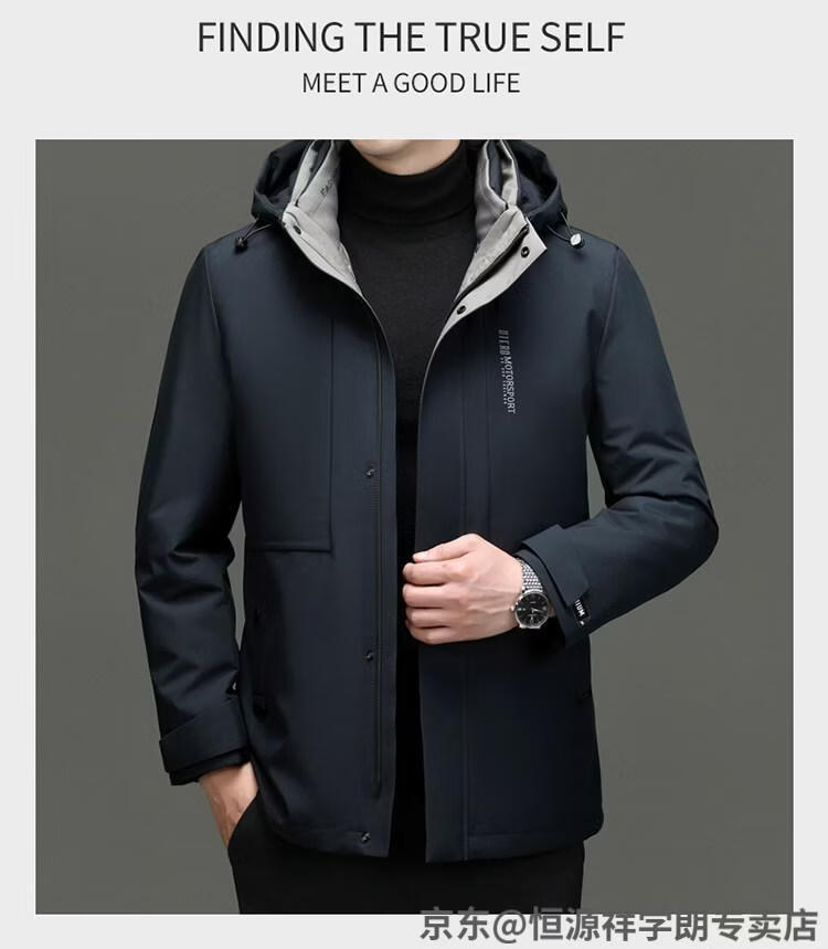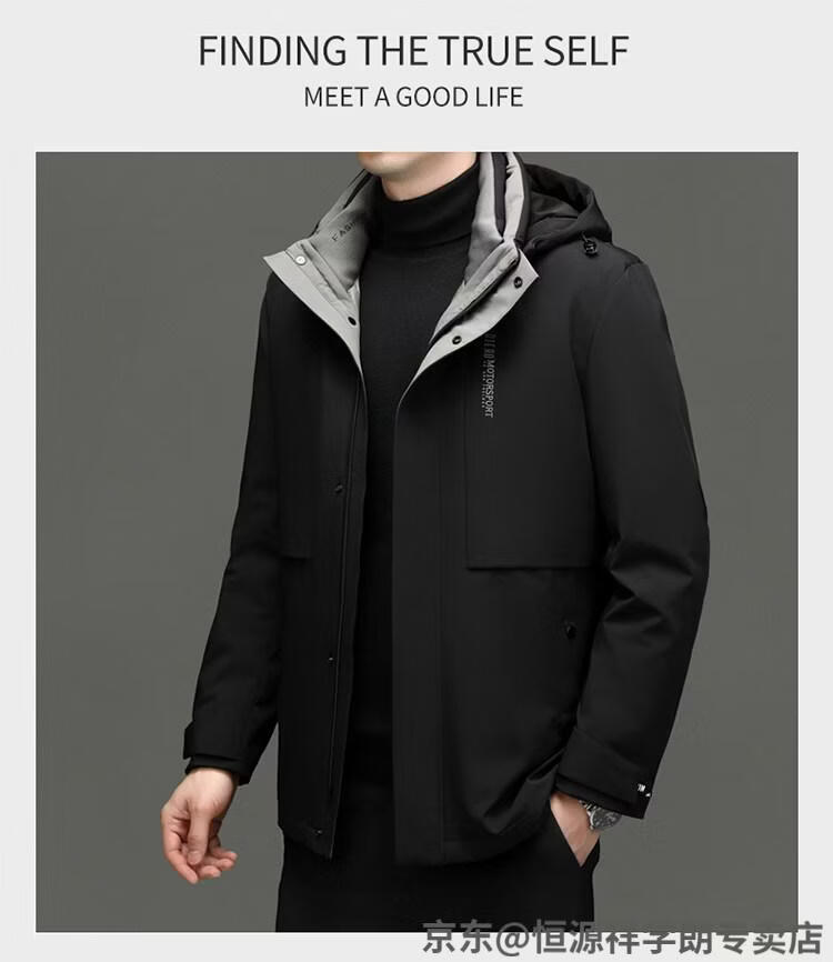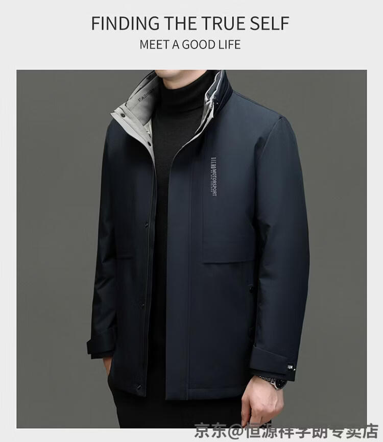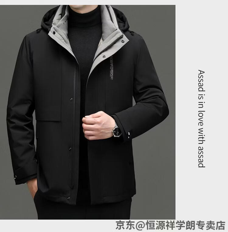 恒源祥90白鹅绒男士羽绒服冬季2025新款可脱内胆加厚保暖外套冬装 虾青色 L 175 (建议110-125斤)